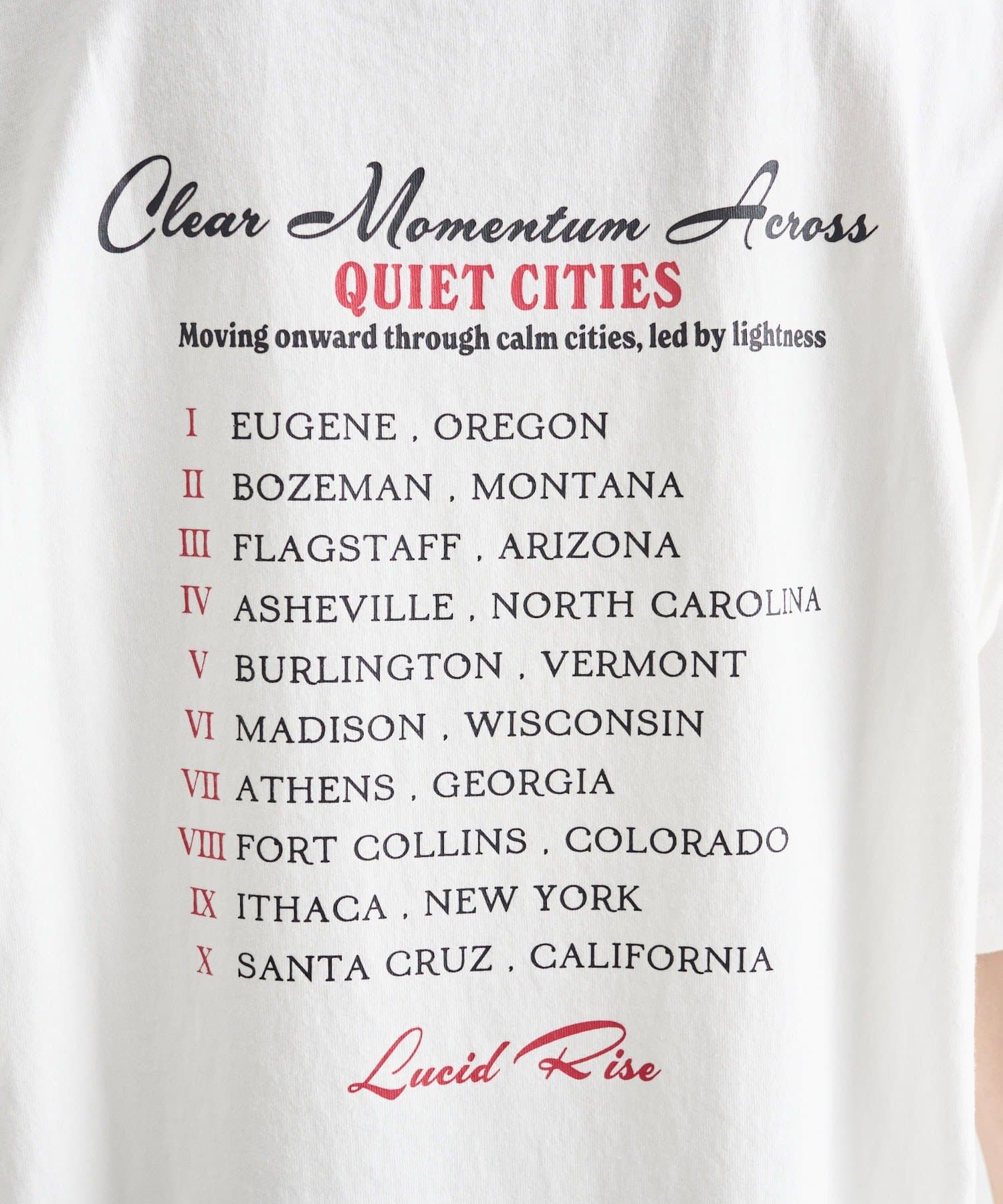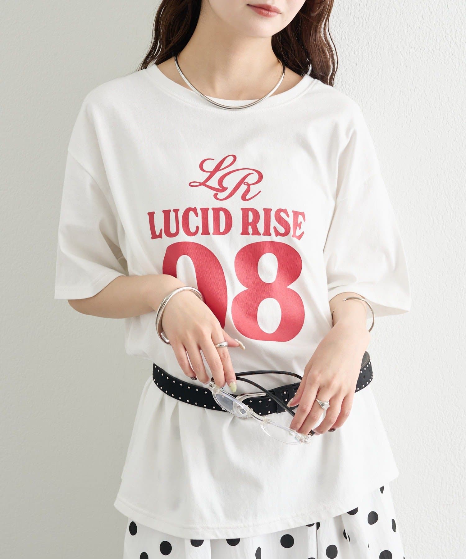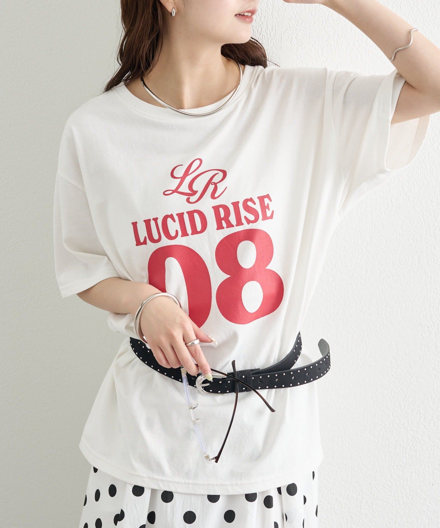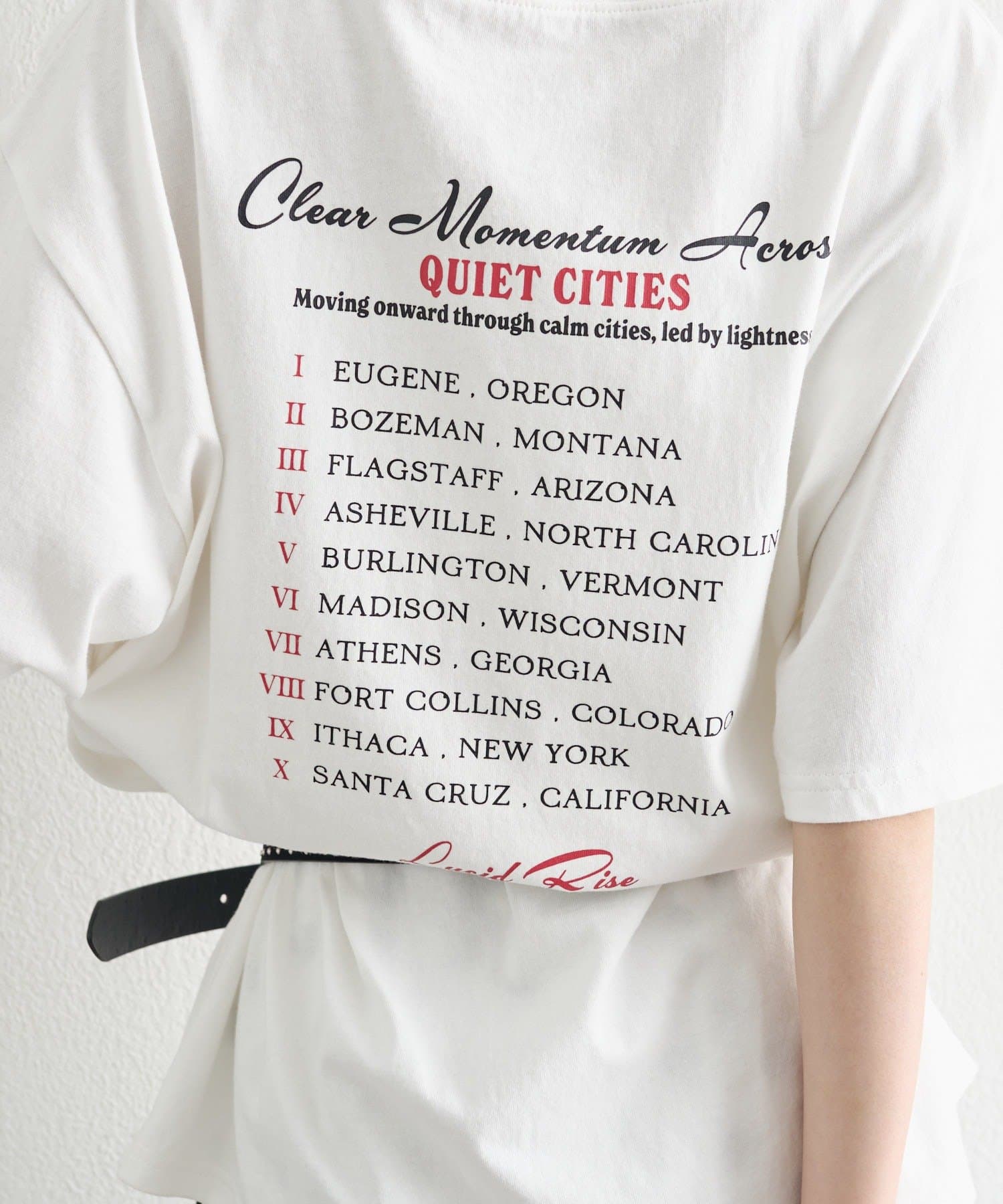 ・フロントのロック調プリントが、スタイリングの主役になる一枚。