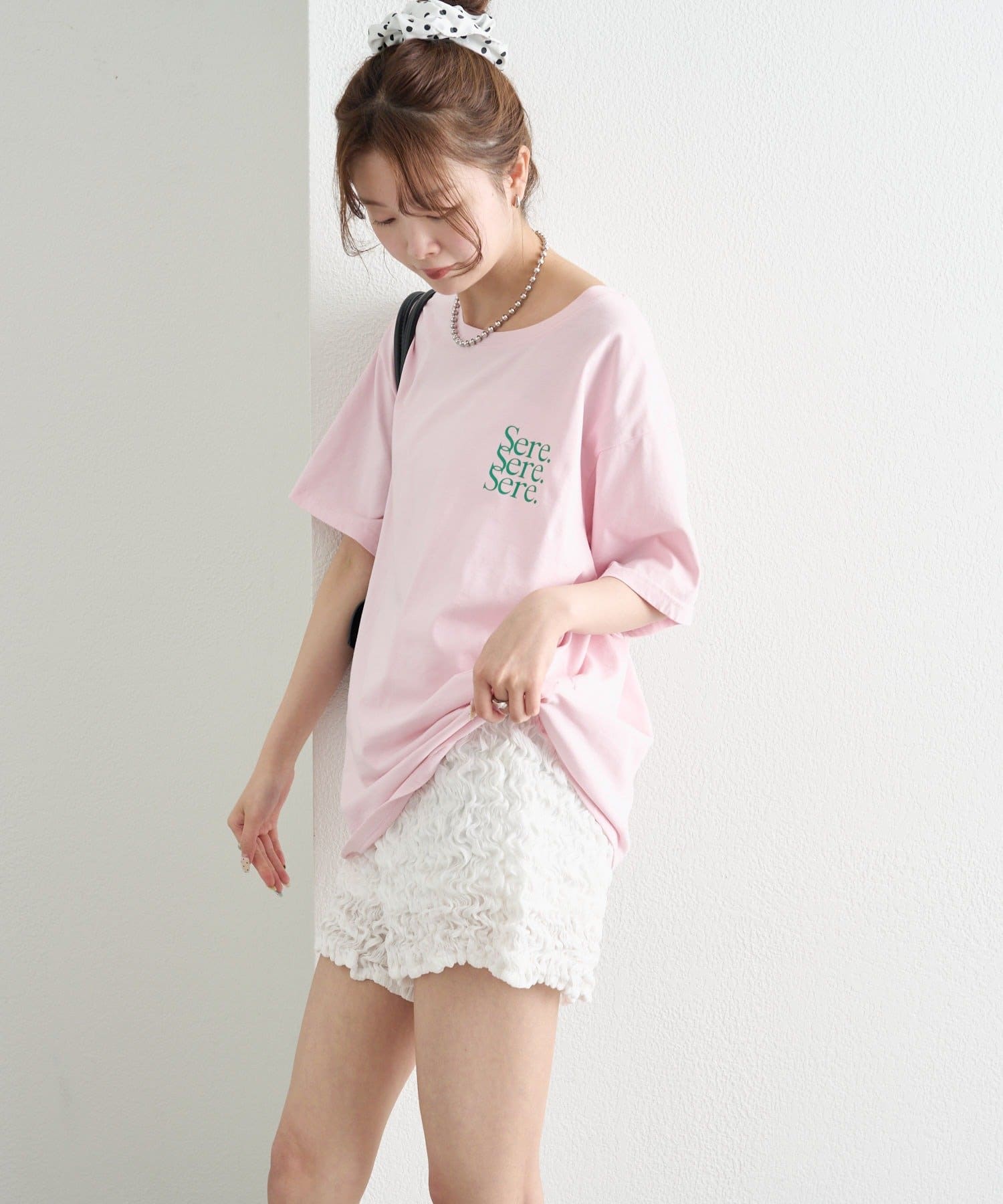 ・ミニボトムを合わせて、メリハリのあるトレンドコーデに。