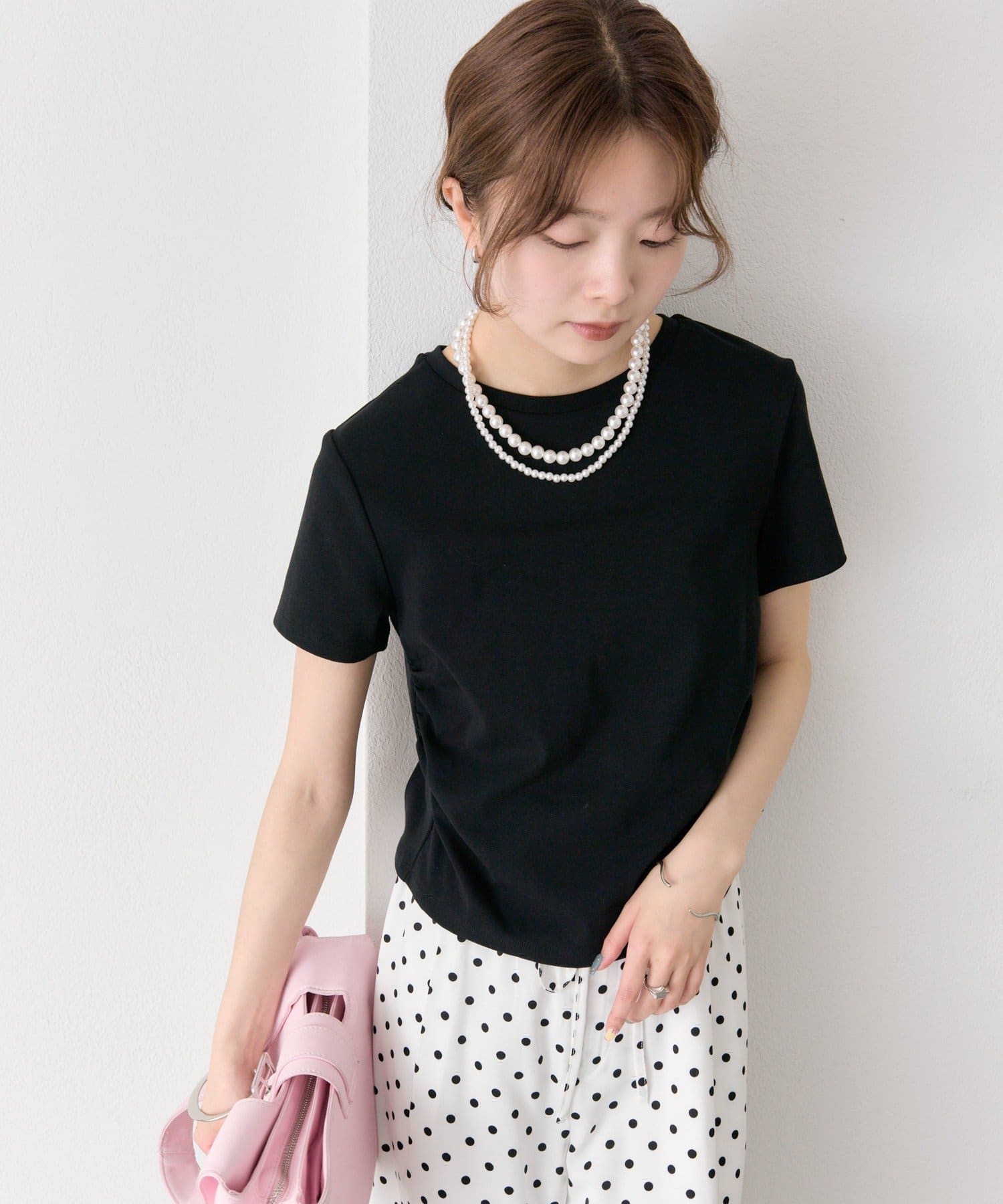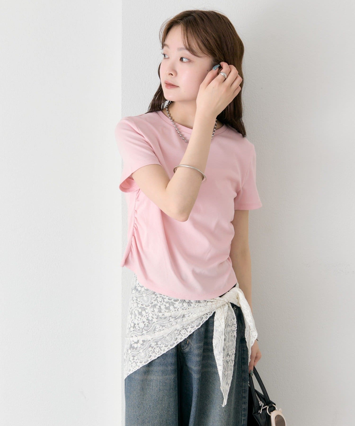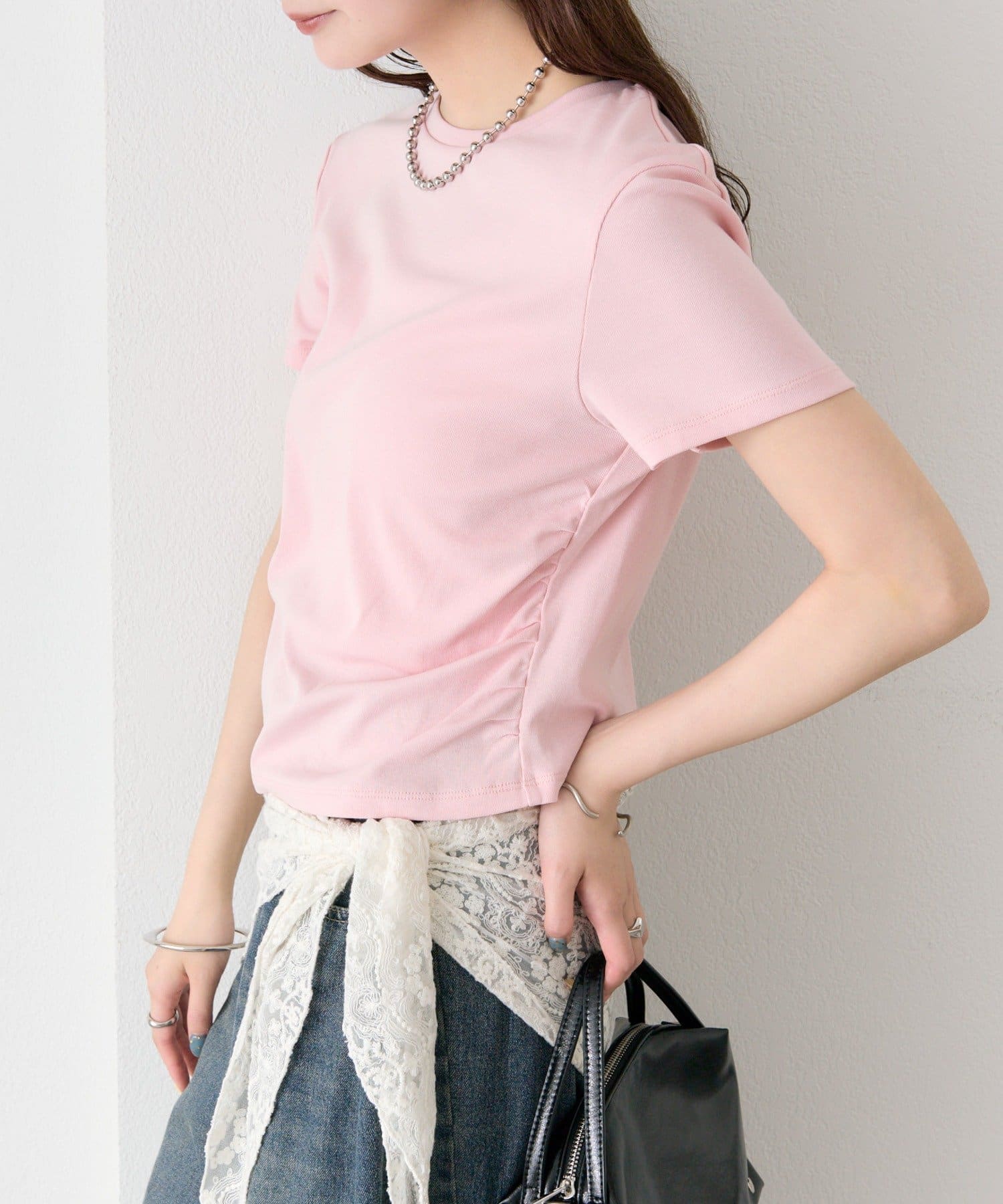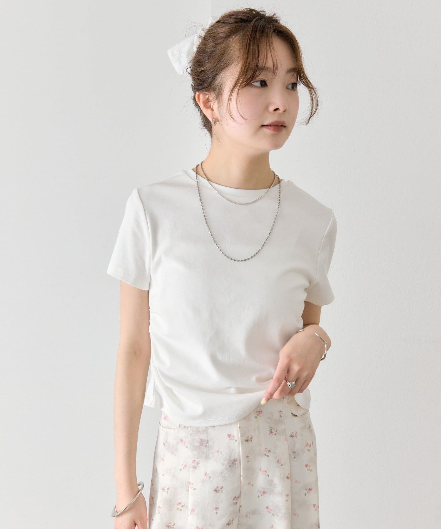 シルエットにメリハリをつけるサイドギャザーチビT