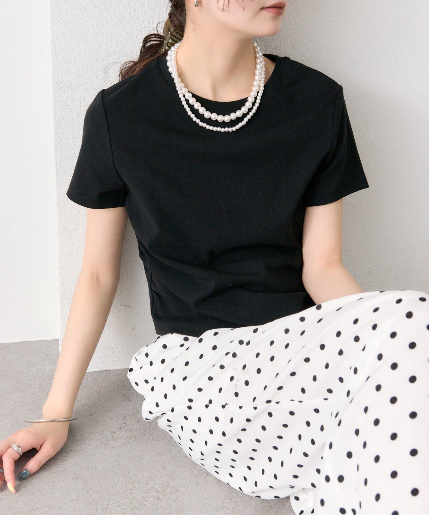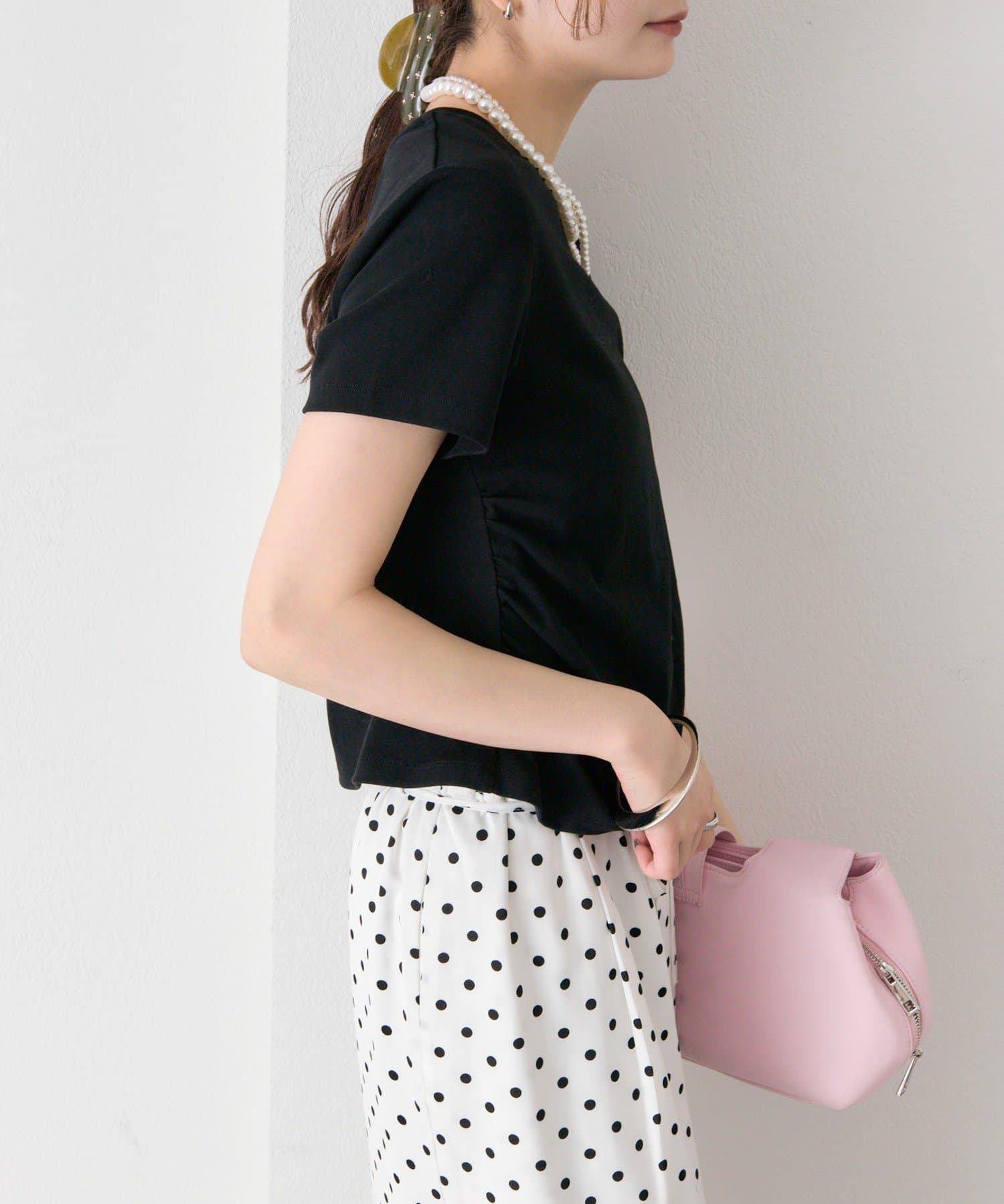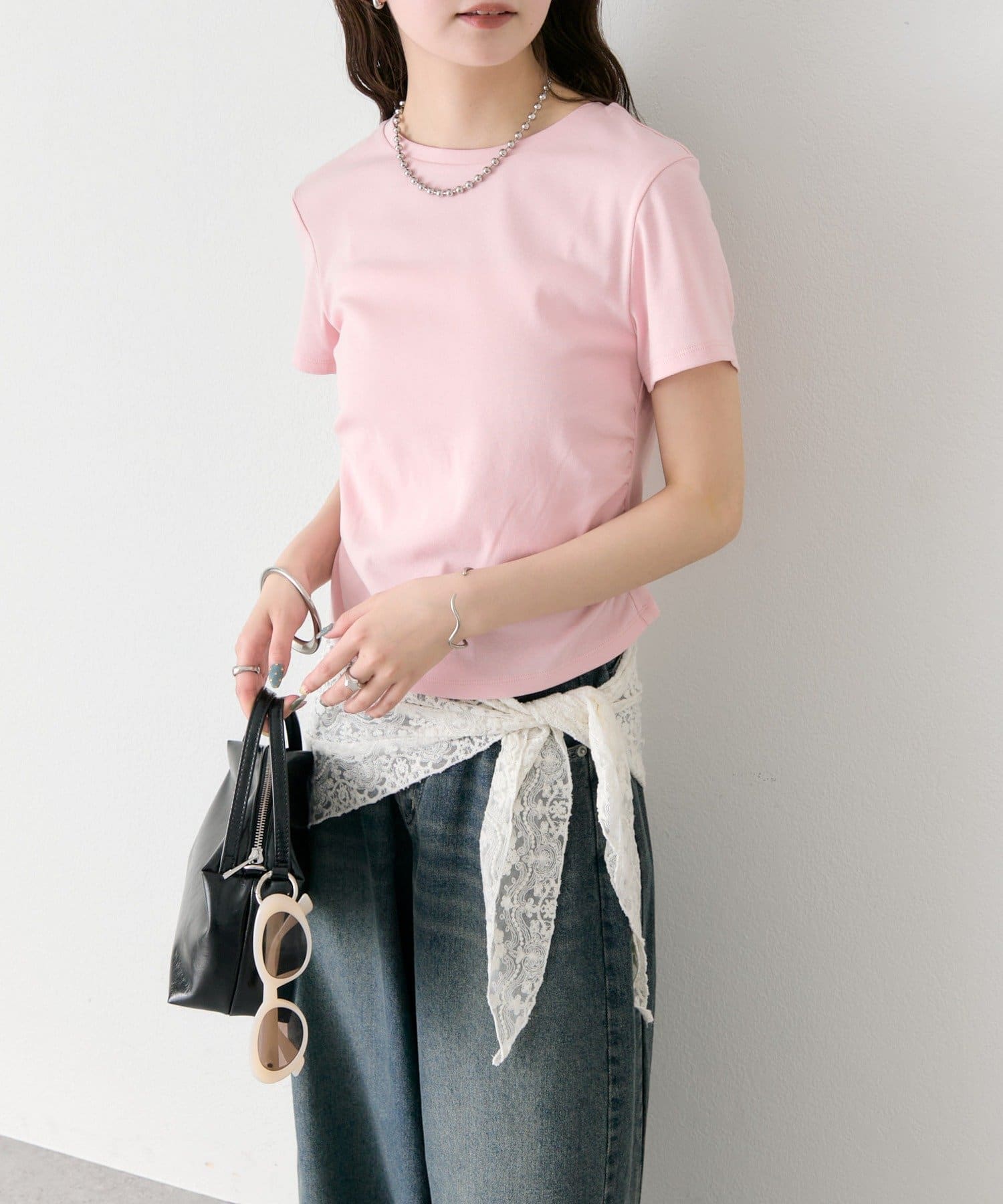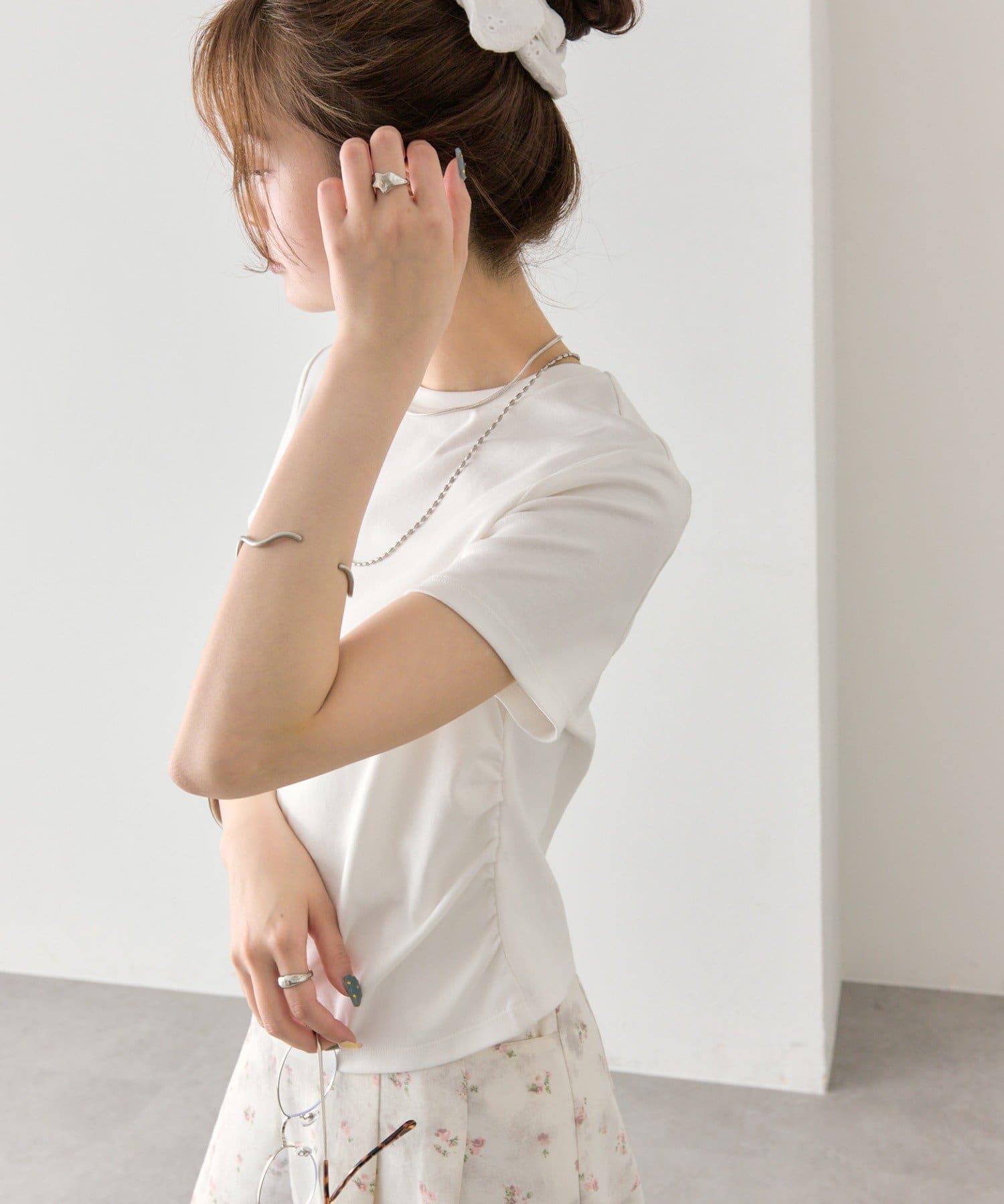 シルエットにメリハリをつけるサイドギャザーチビT