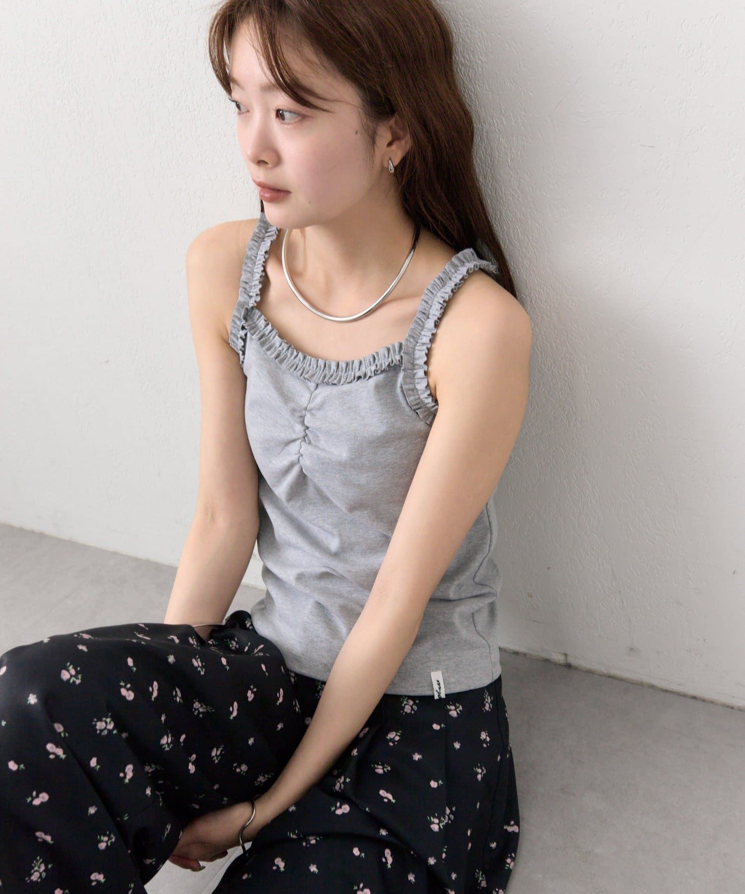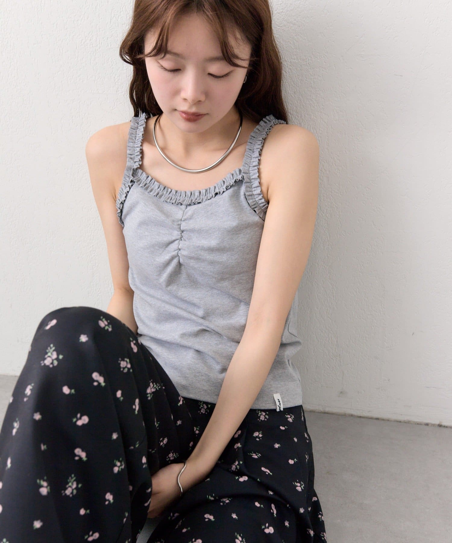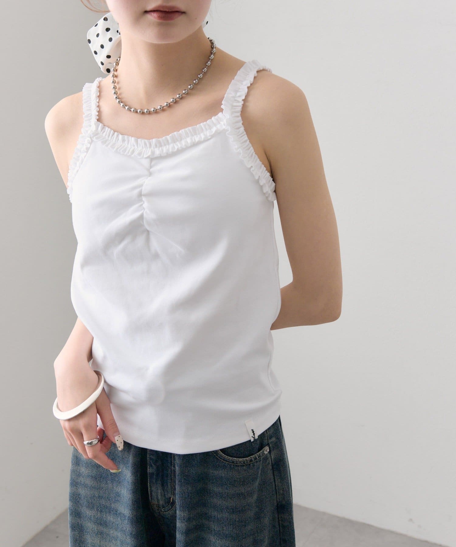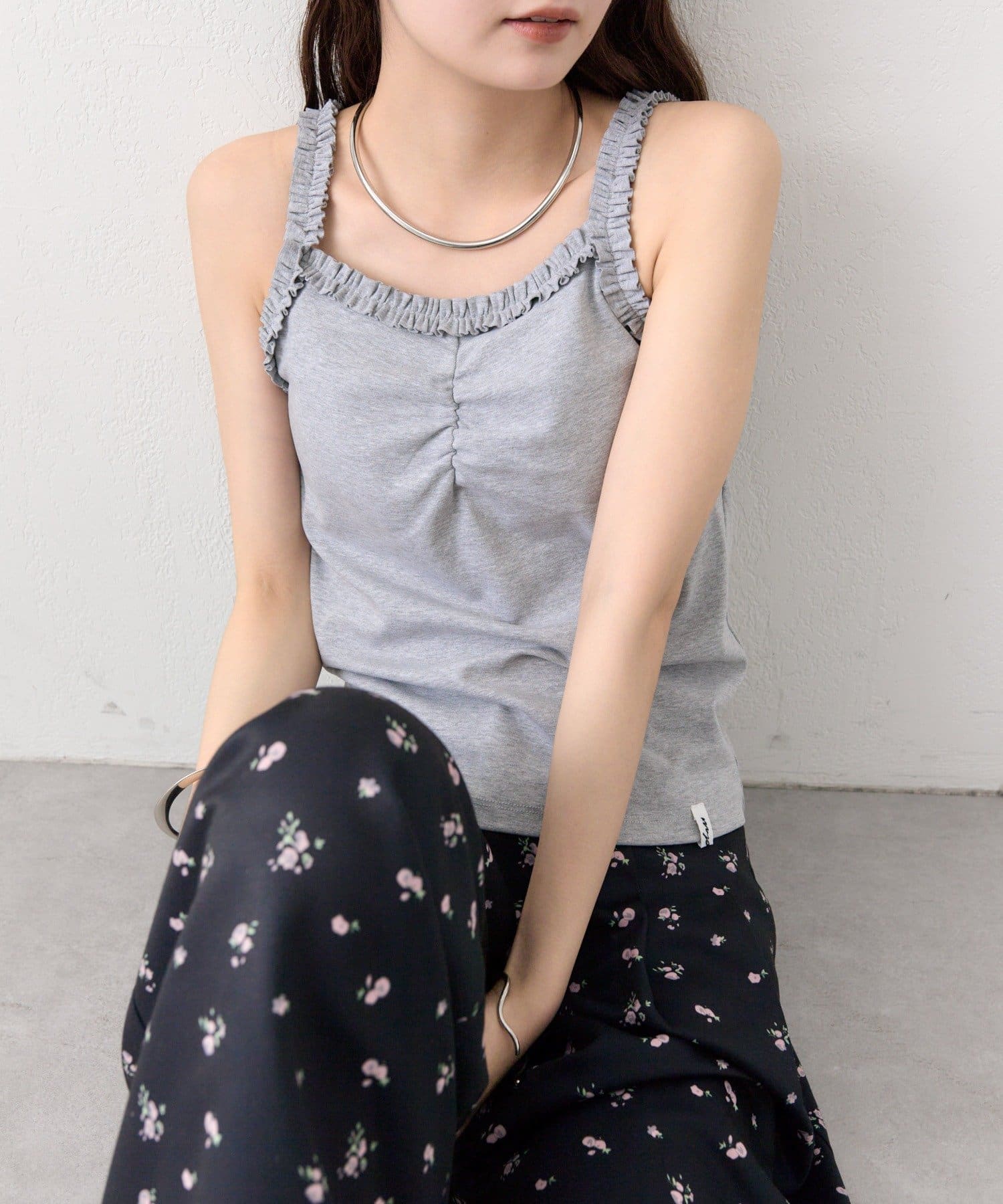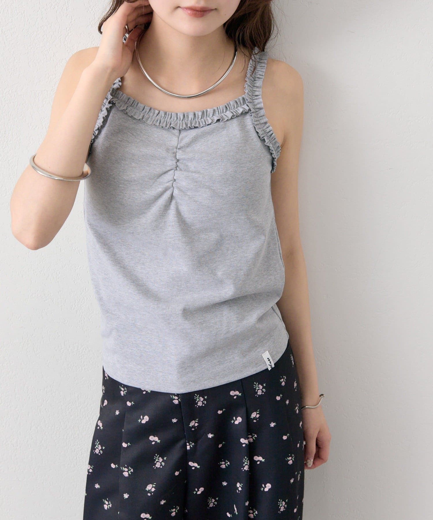 ギャザーフリルで華やかさをプラスするパット付きキャミソール