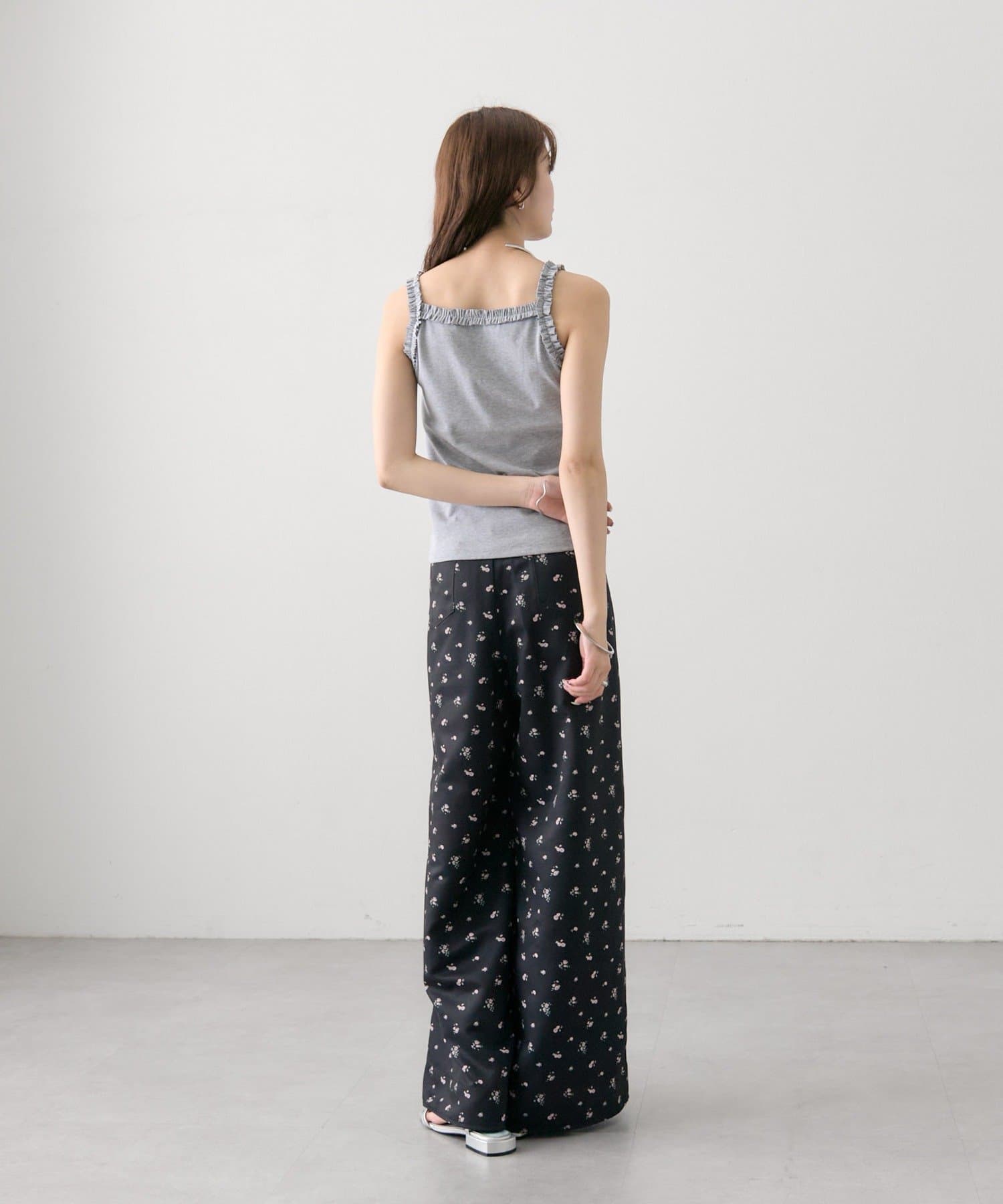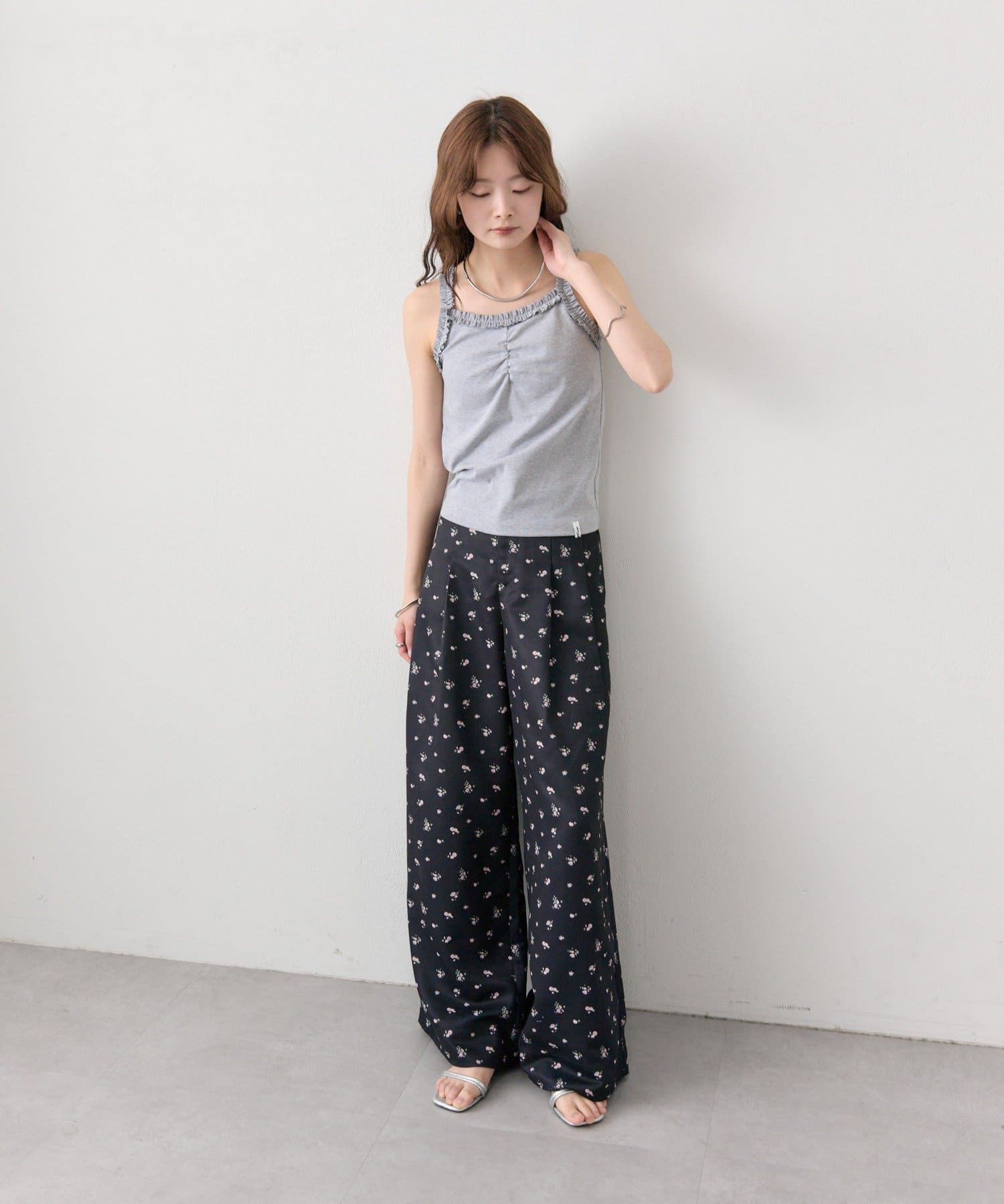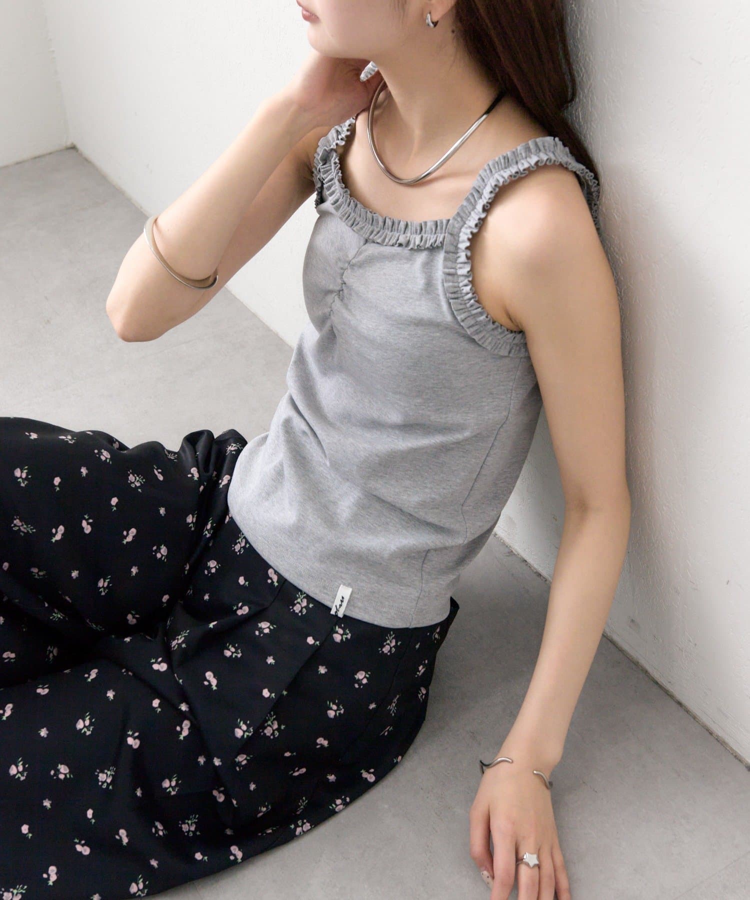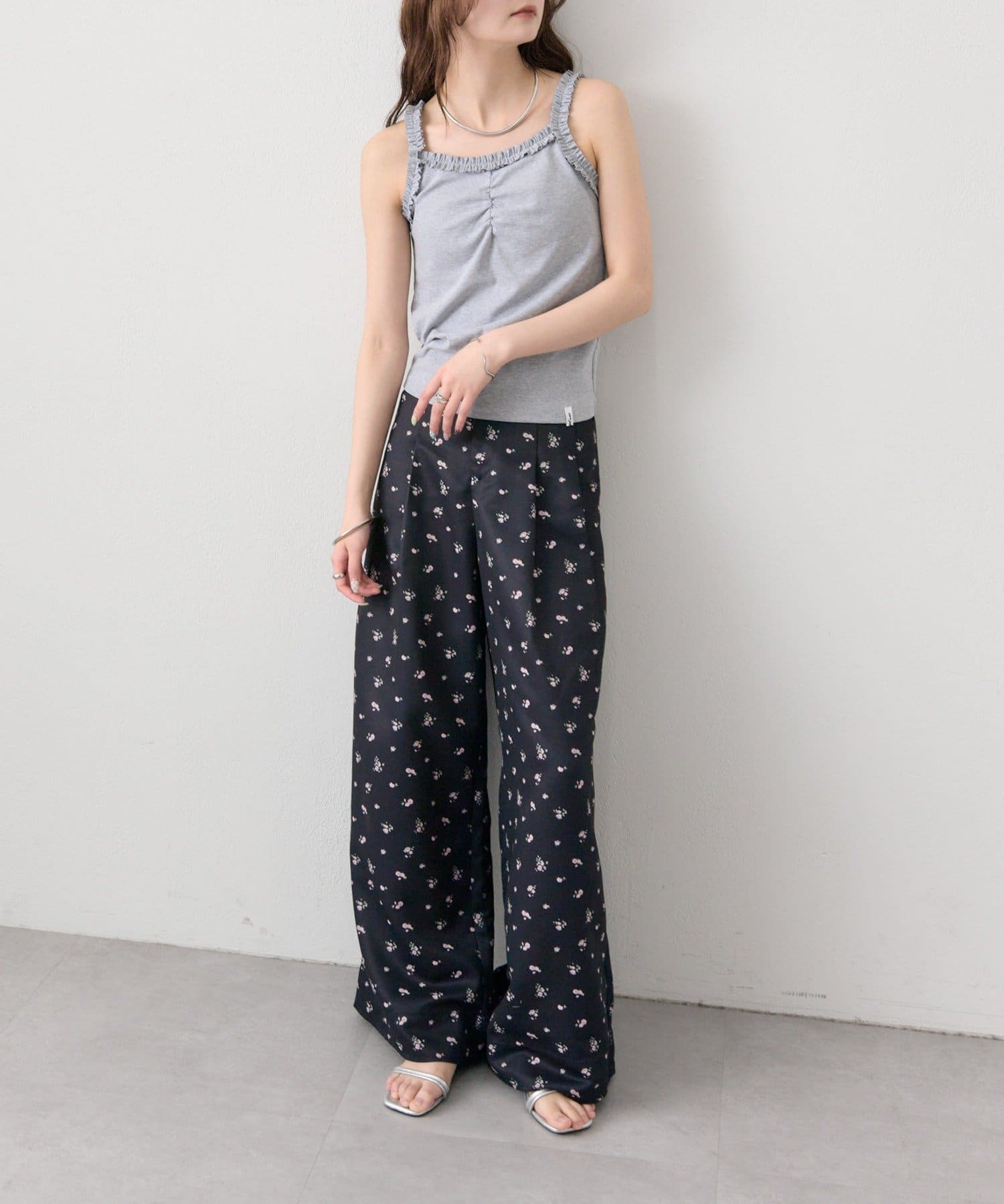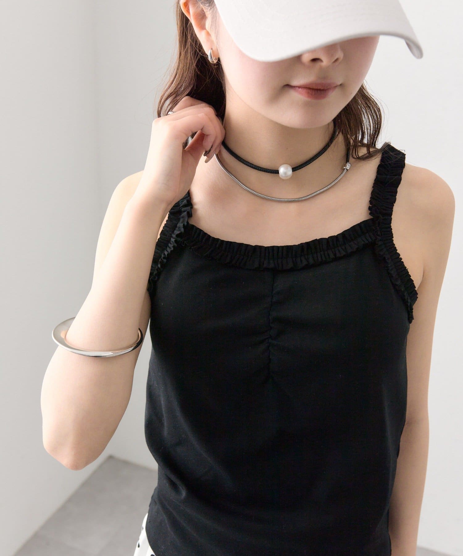 ギャザーフリルで華やかさをプラスするパット付きキャミソール