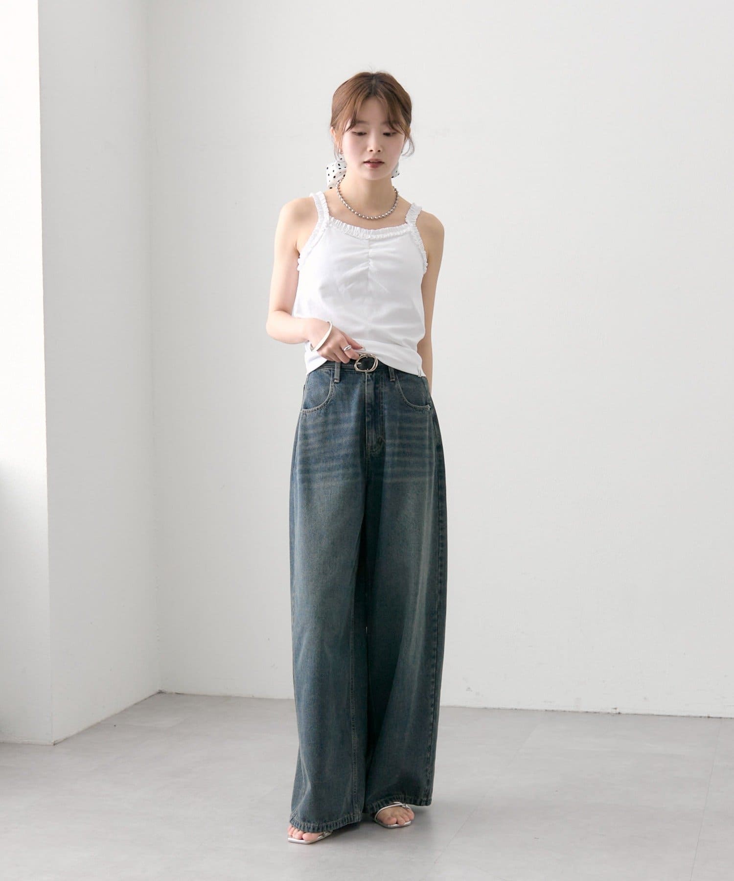 ベルト付きカーブワイドデニム
