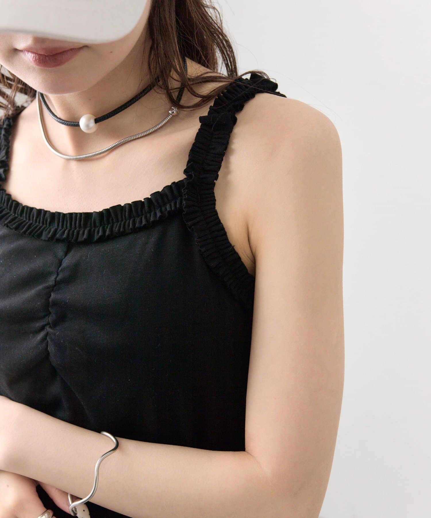 パット付きギャザーフリルキャミソール
