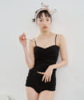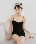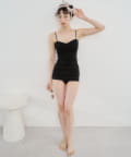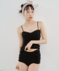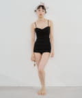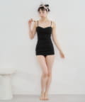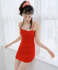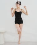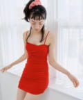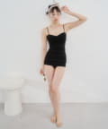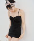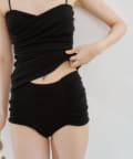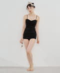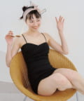 ・フロントのクロスギャザーがポイントのミニワンピ型スイムウェア。