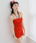 ・肌見せが苦手な方も着やすく、華奢なストラップがヘルシーな肌見せを演出します。