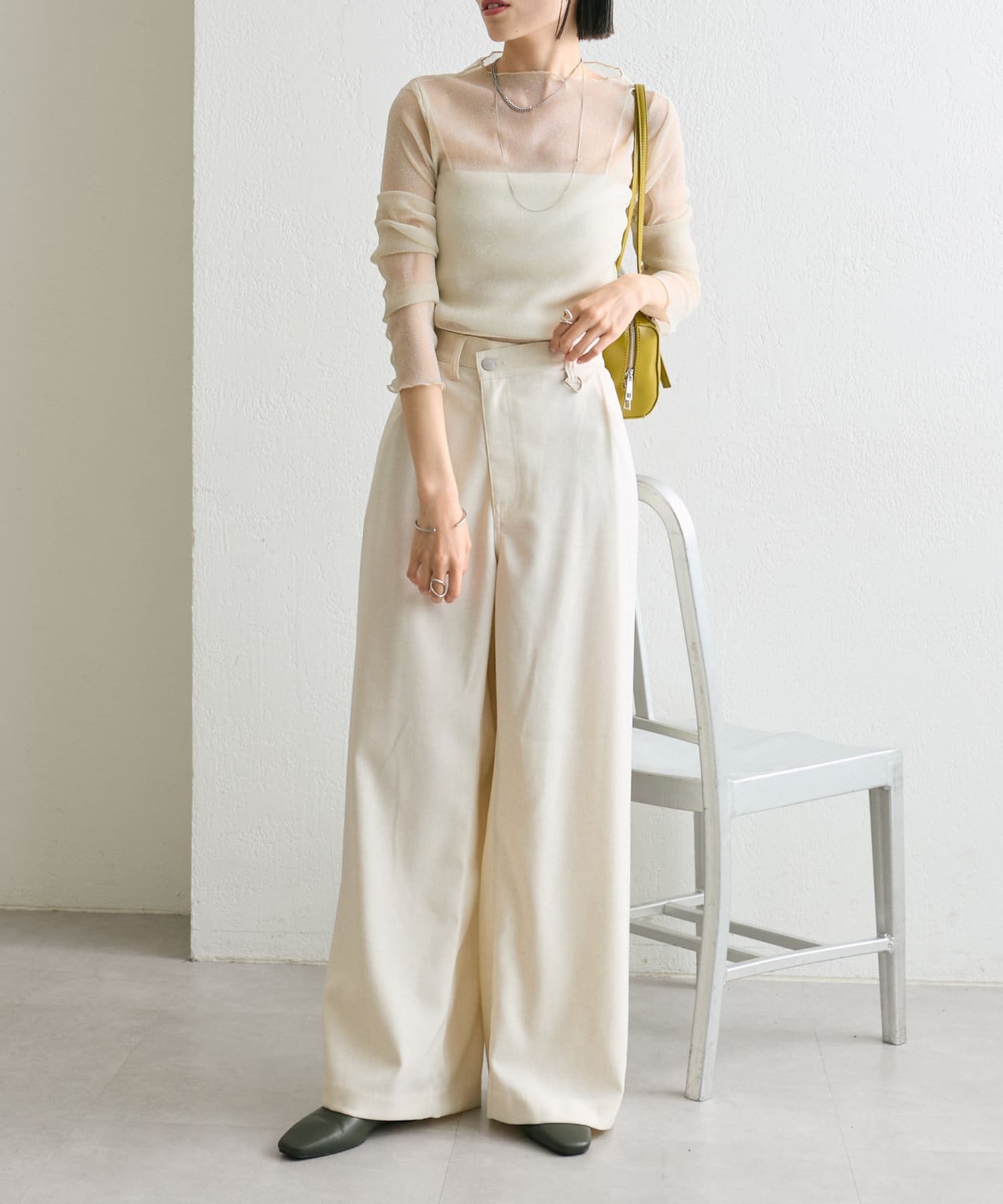 ・ハイウエストボトムなので短丈トップス合わせでよりスタイルアップが叶います◎