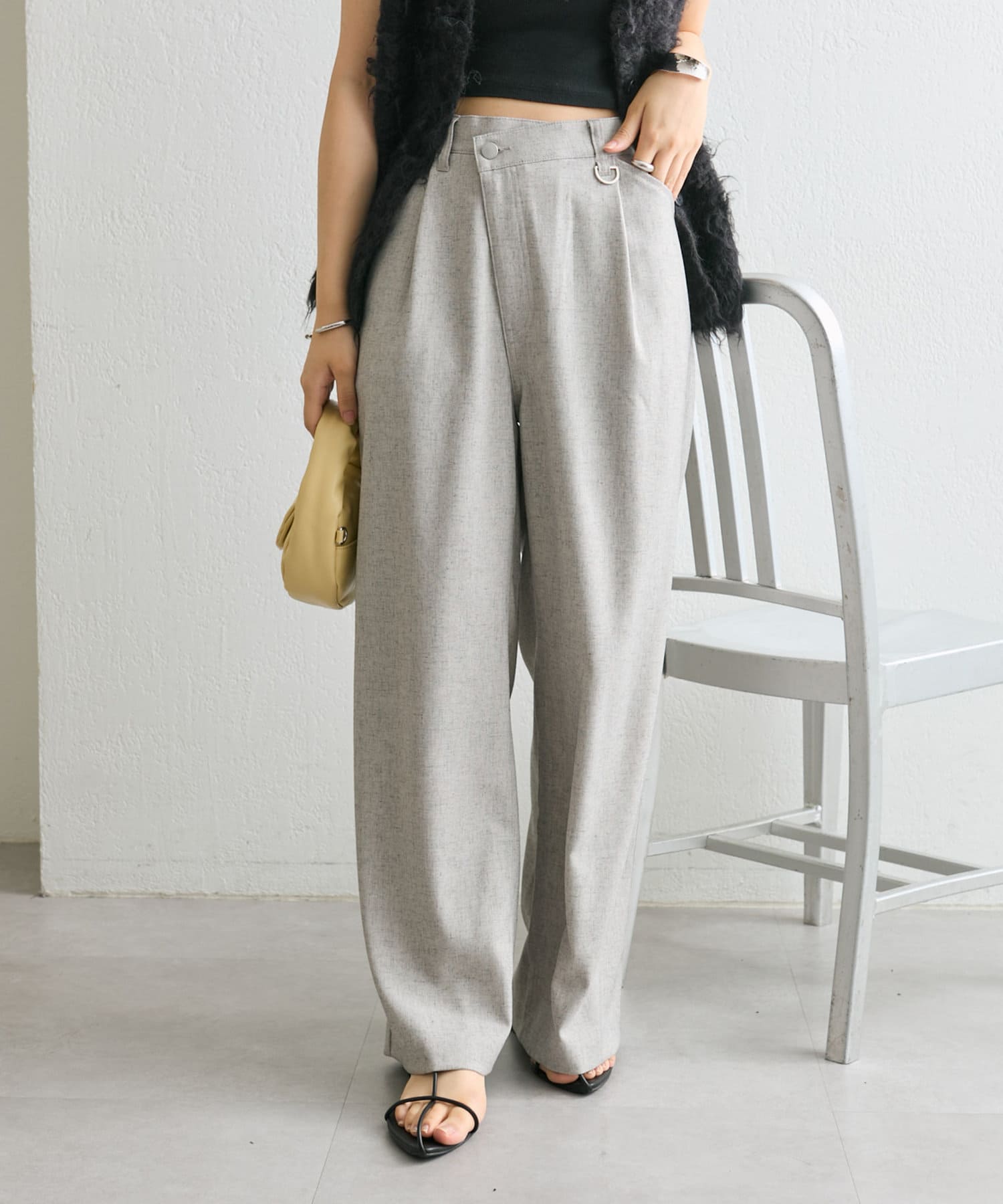 ベルトループに付いたリングがポイントのタックパンツが登場!