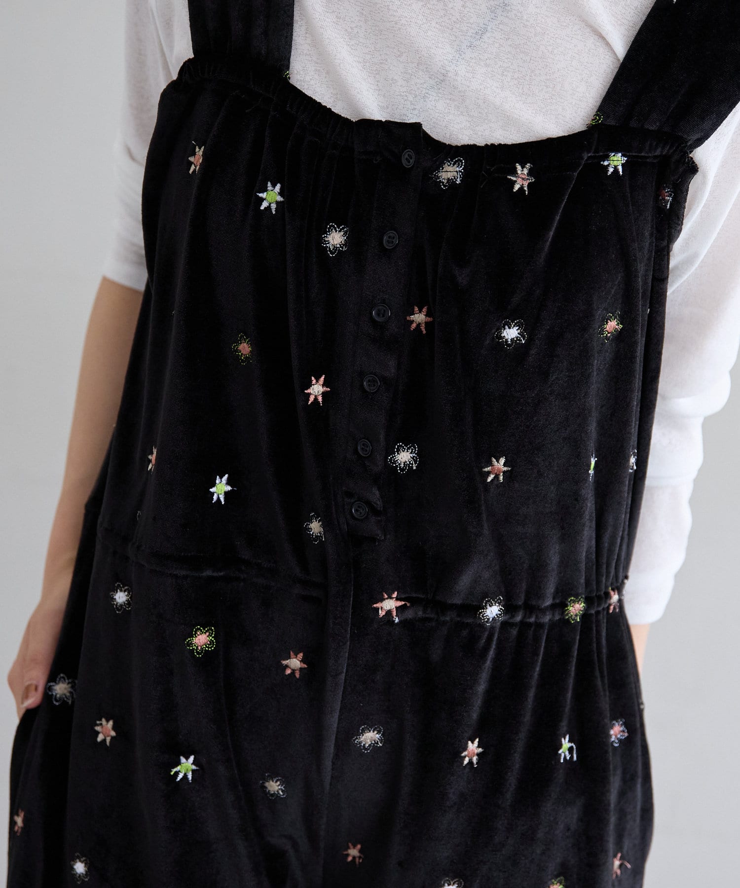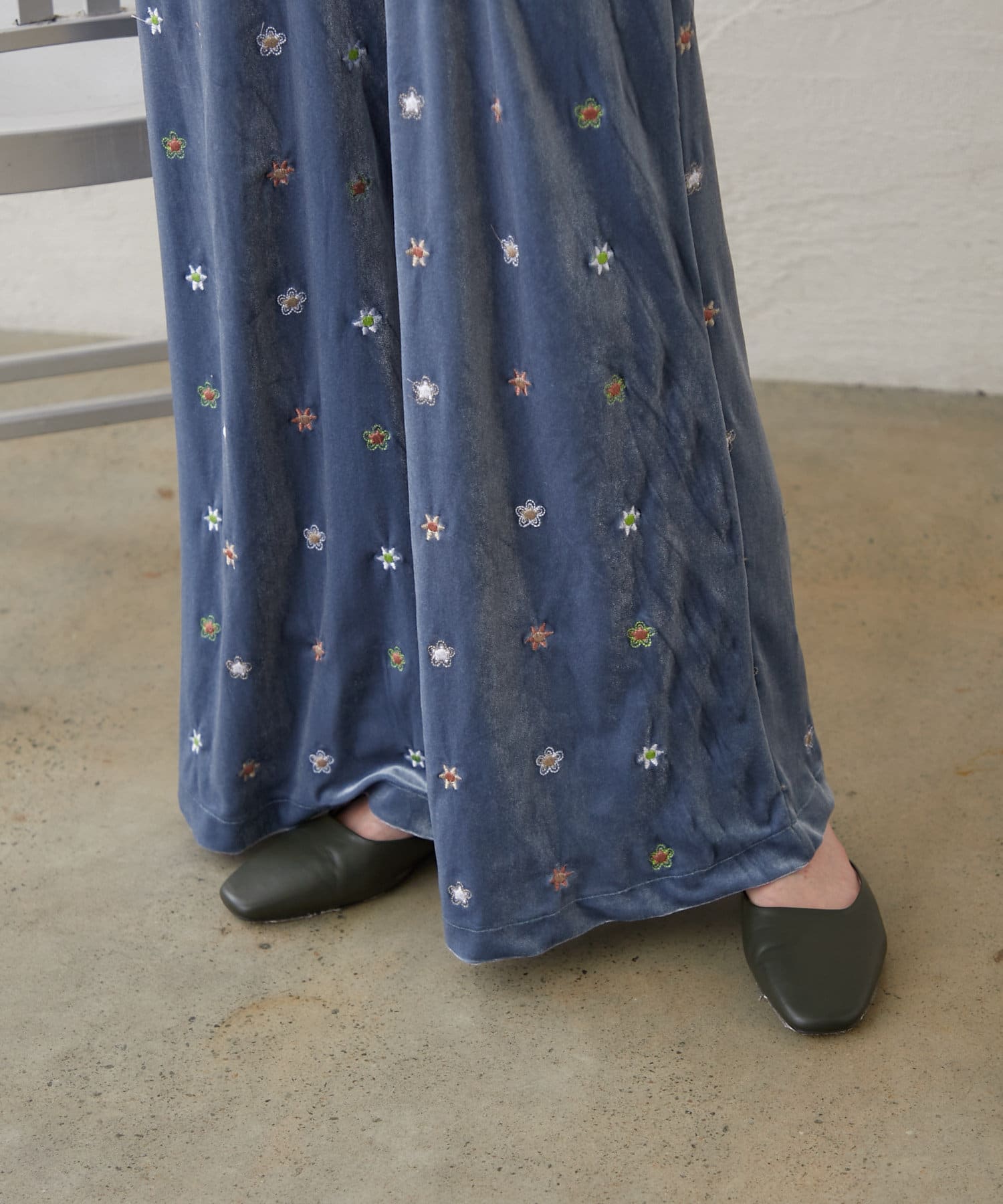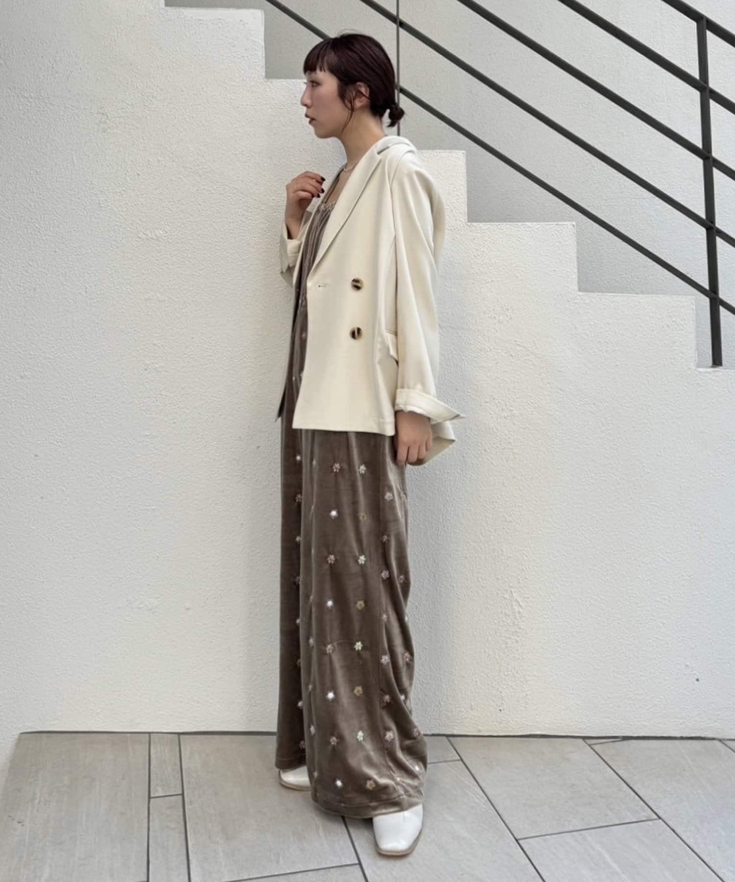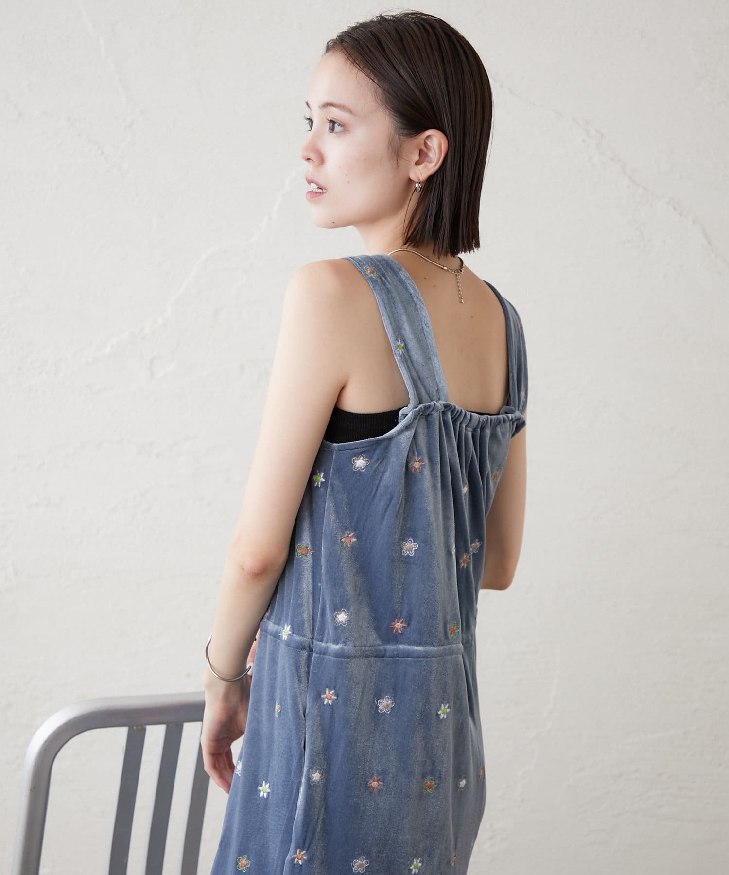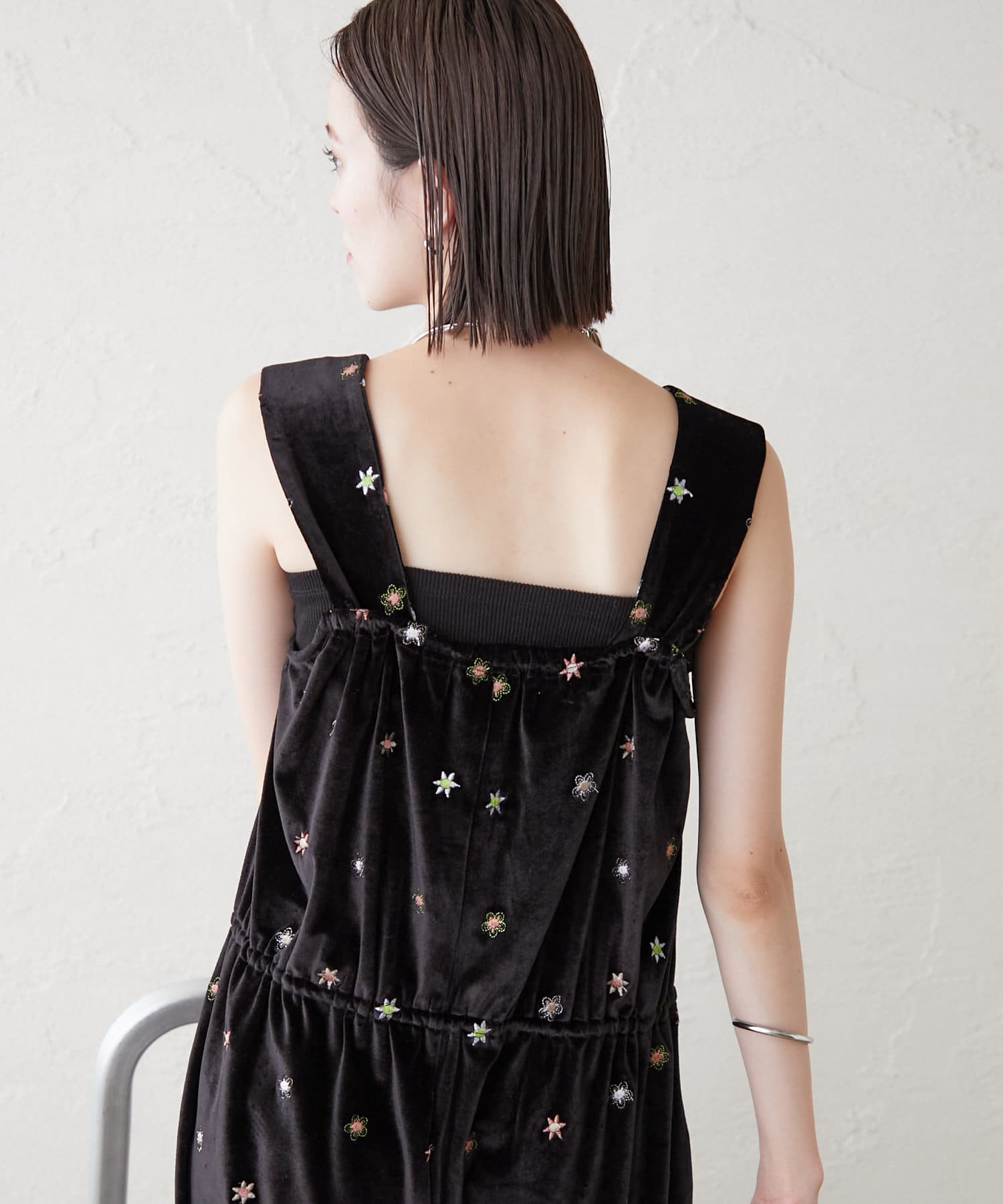 ツヤっとしたベロアとお花の刺繍がときめくオールインワンが登場!