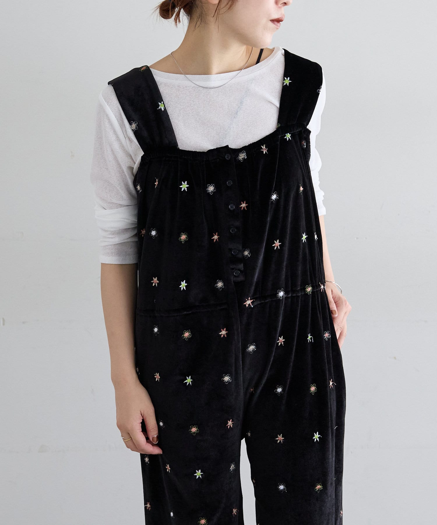 【スタッフ人気No.1】刺繍ベロアオールインワン