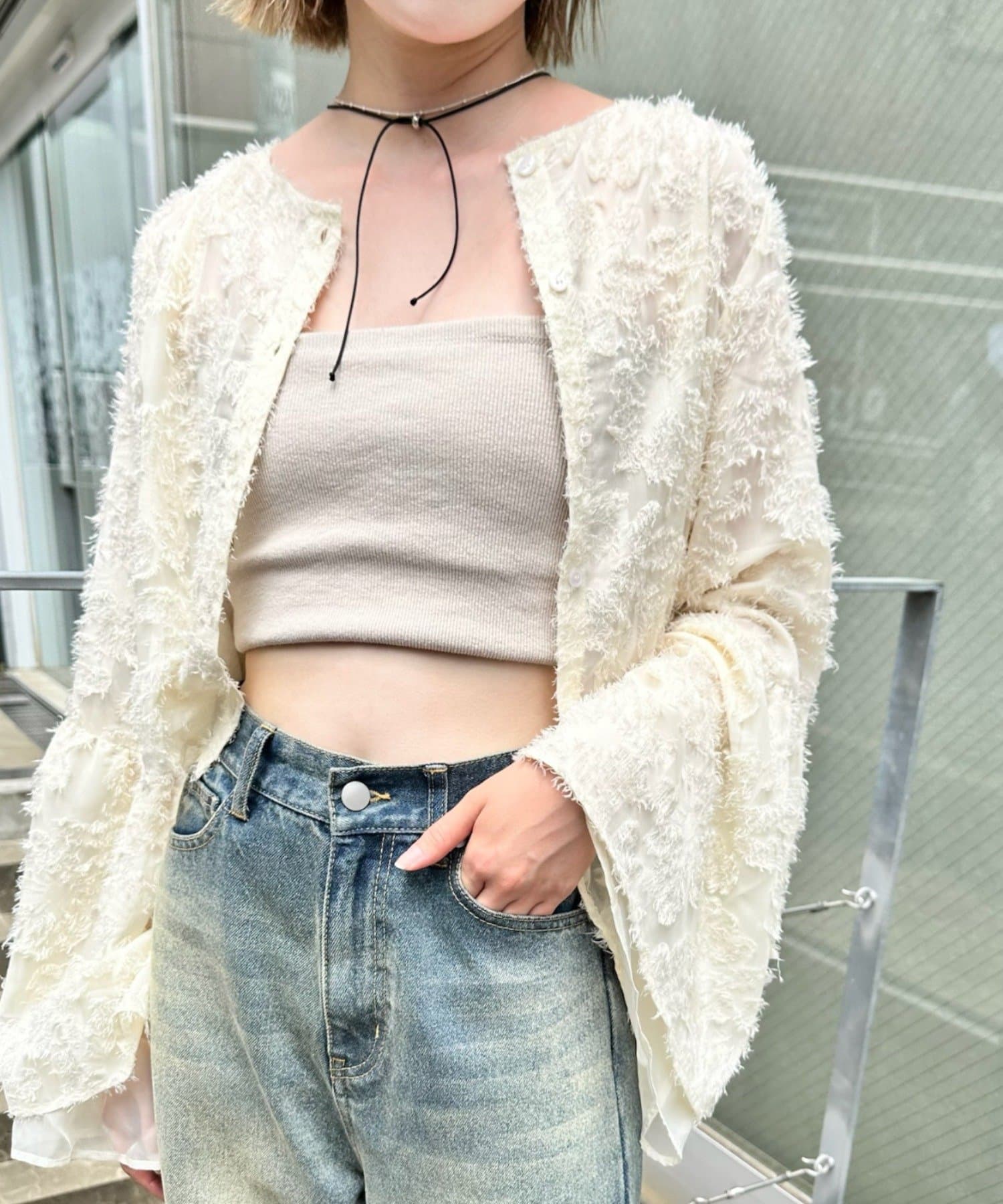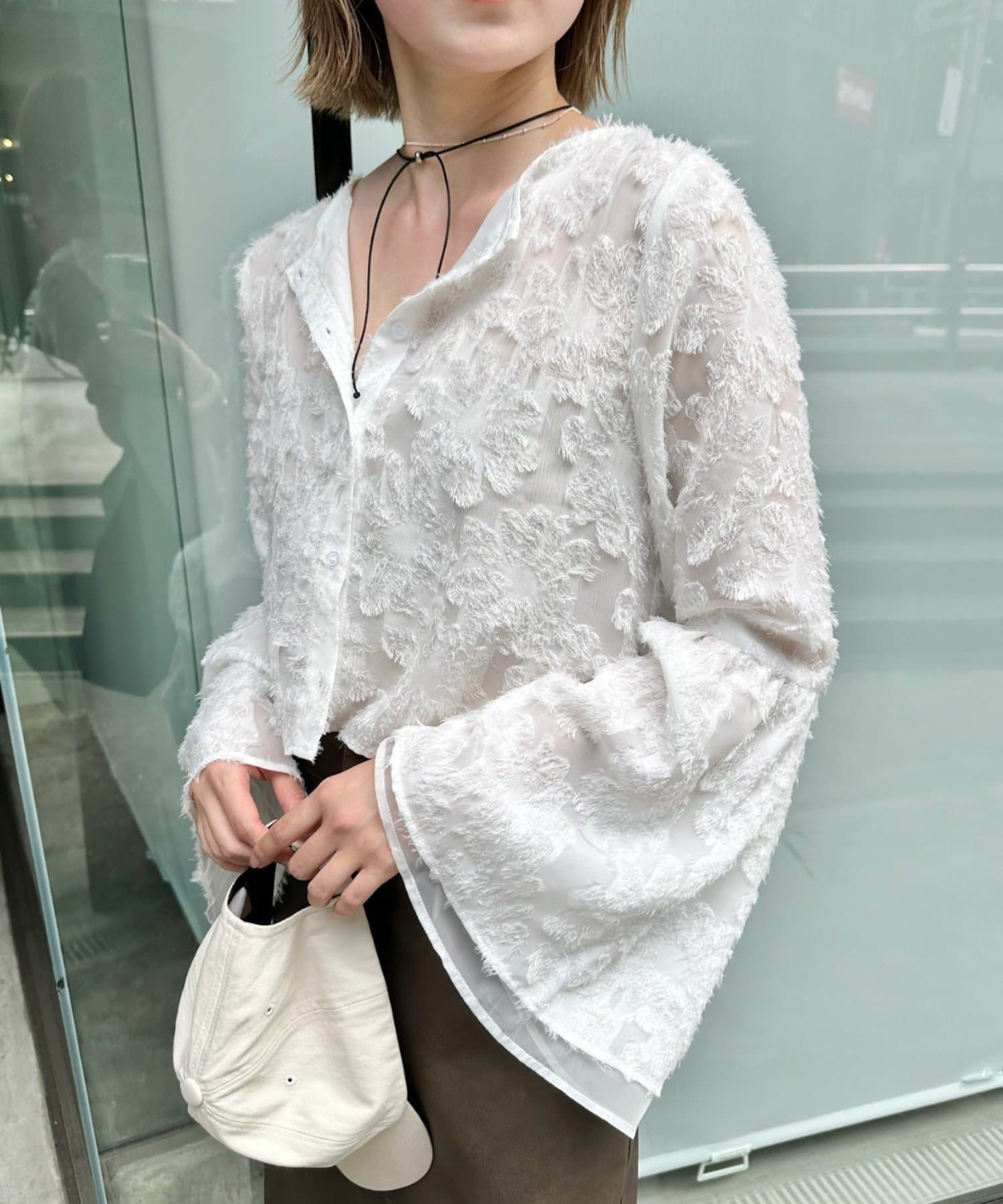 透け感とフラワーモチーフのジャガード素材のブラウスが今年の夏も登場!