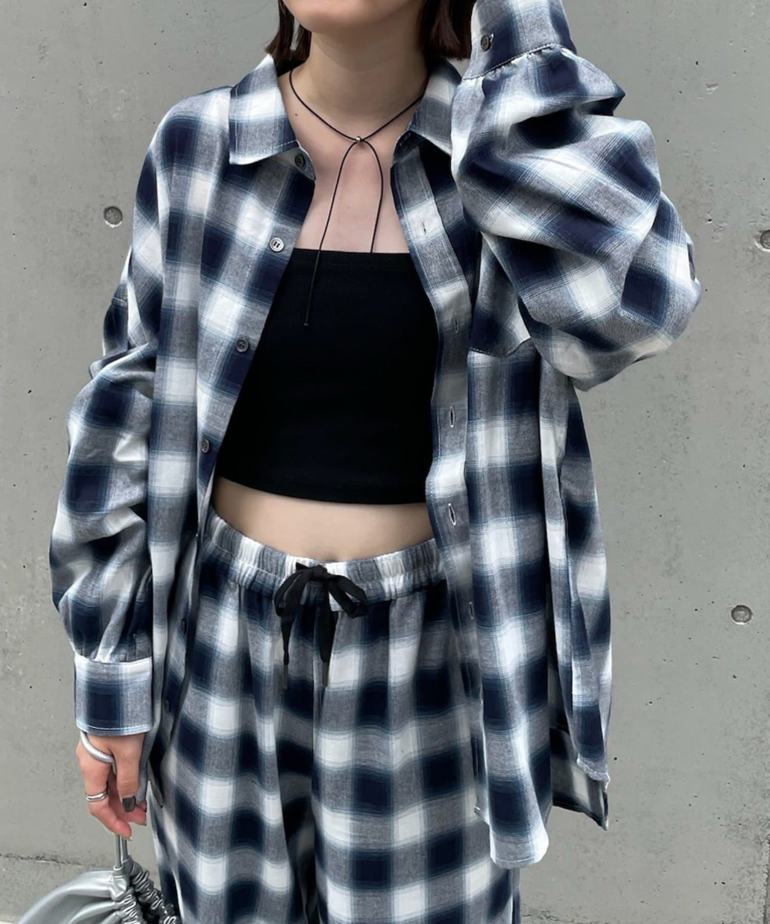 ・ゆるっとしたサイズ感とオンブレチェックがこなれ感を演出させてくれるアイテム。