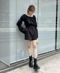 ・短丈トップスなので、ハイウエストボトム合わせでスタイルアップが叶います◎