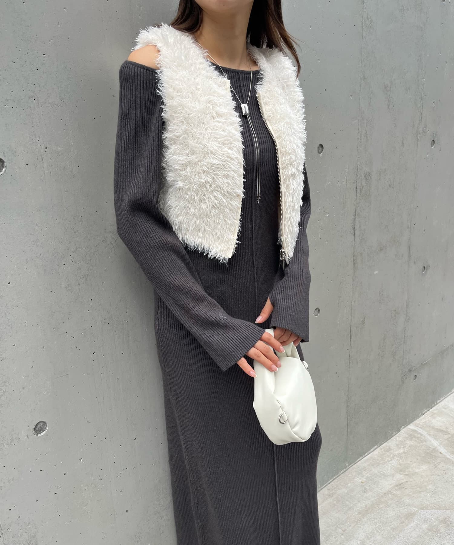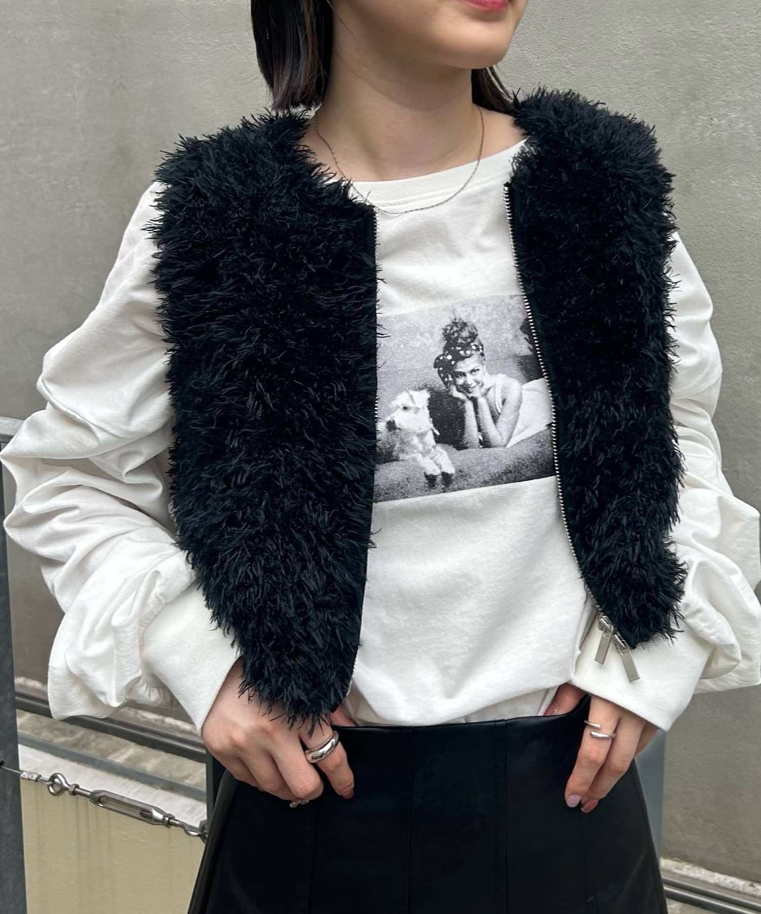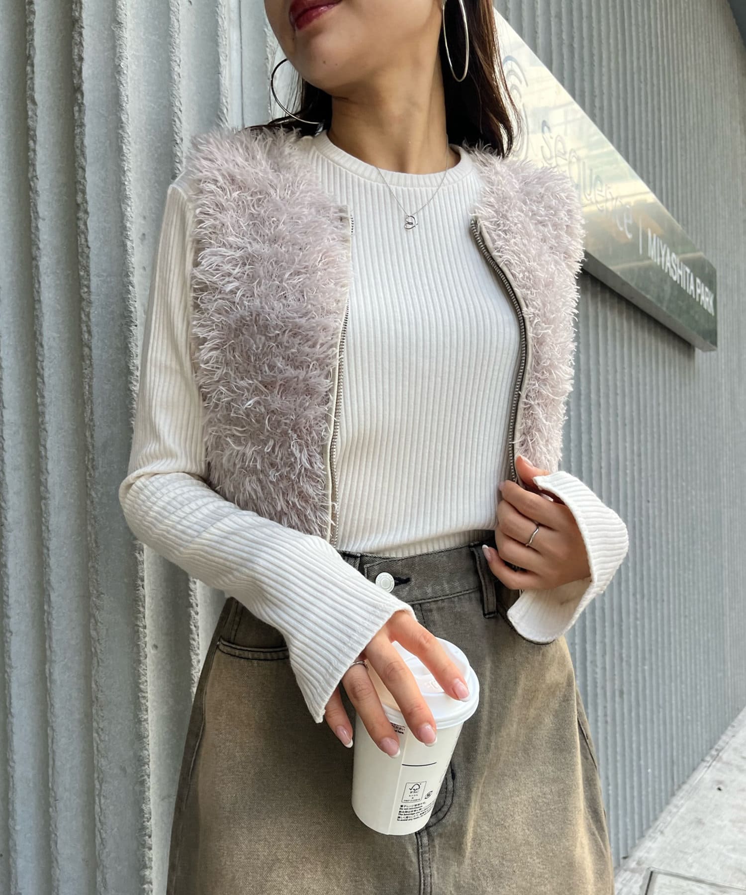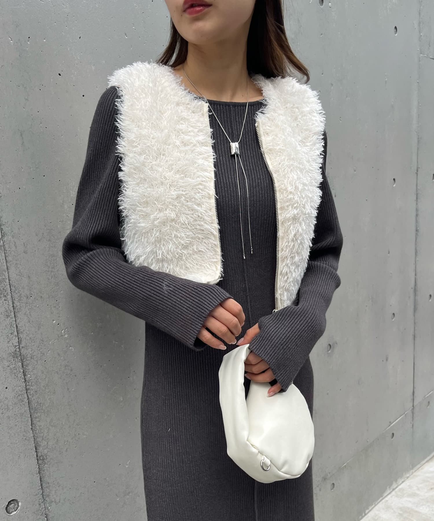 ・トレンドのふわふわシャギーが魅力的なショート丈のベスト。