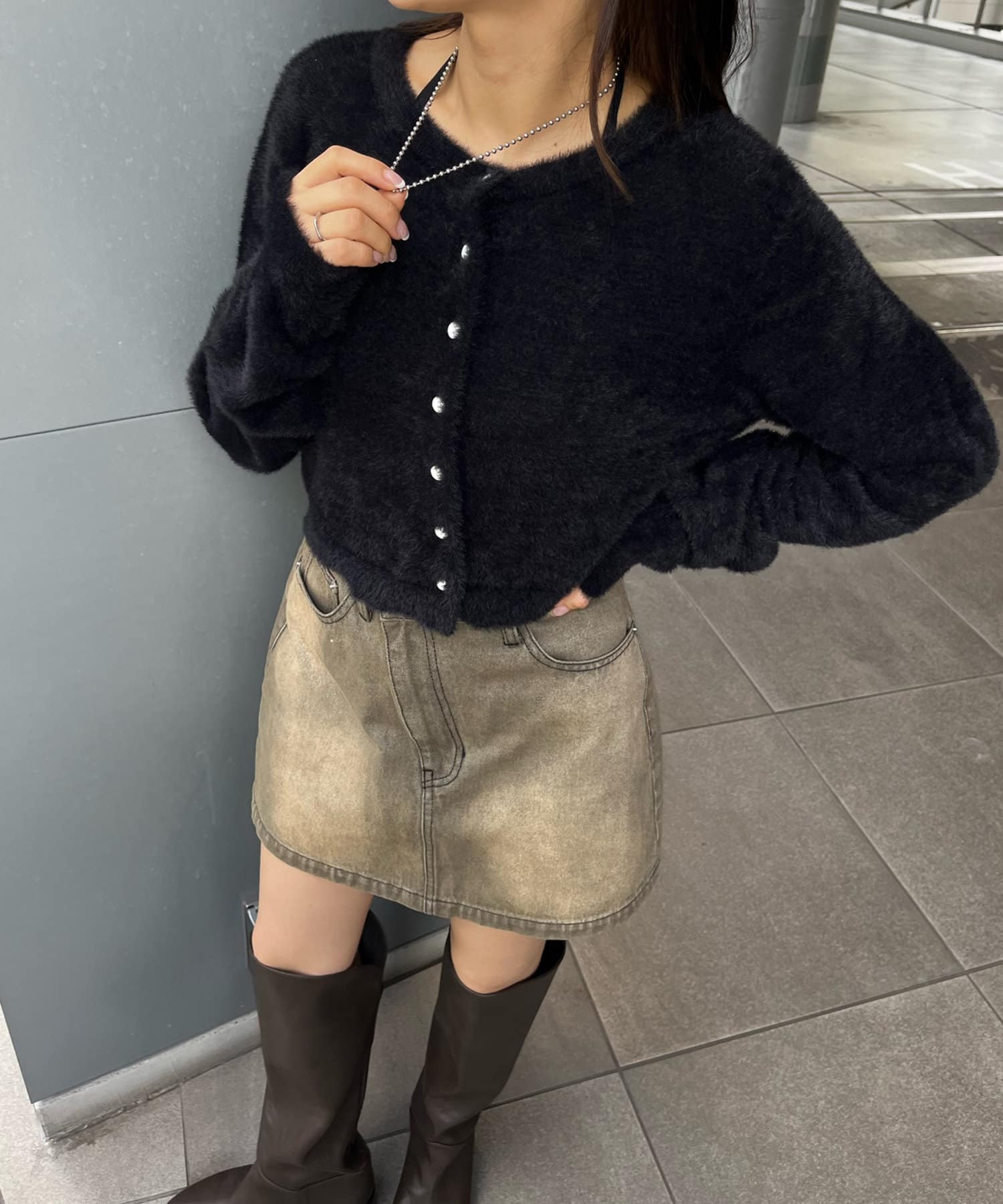 [mline]シャギーコンパクトカーデ