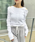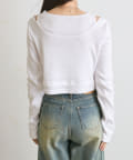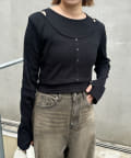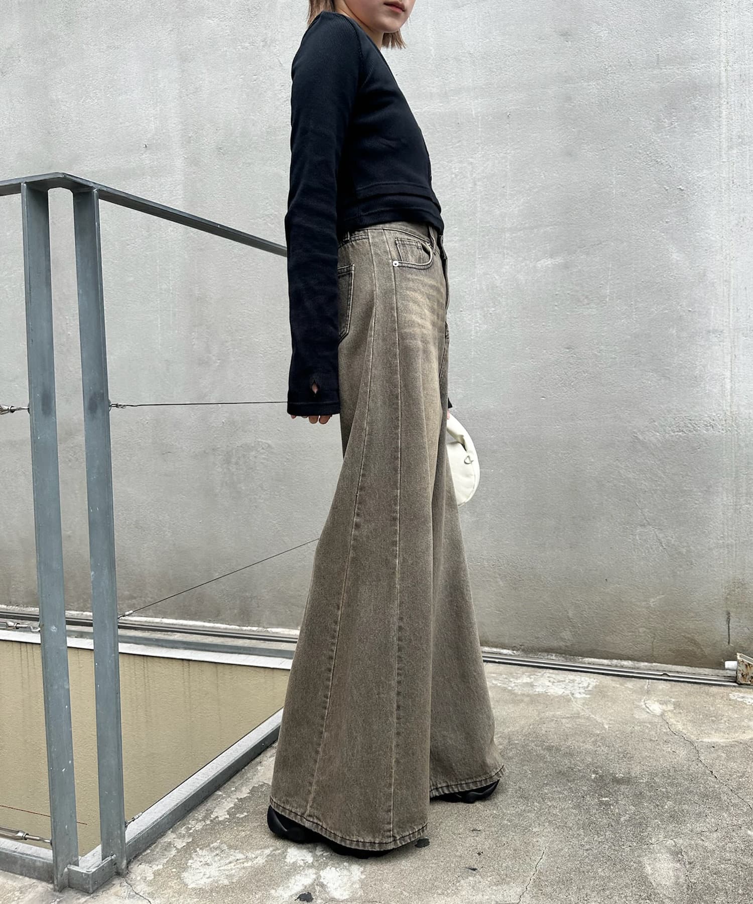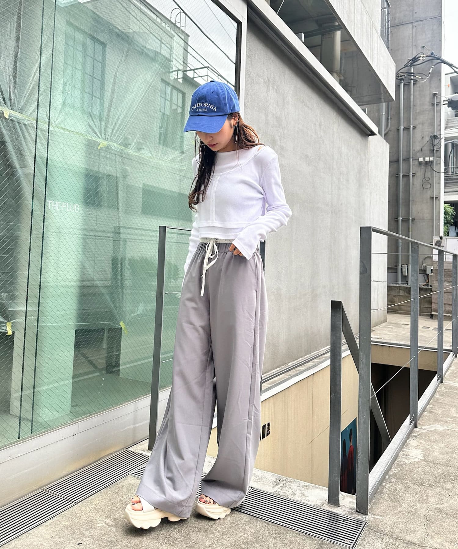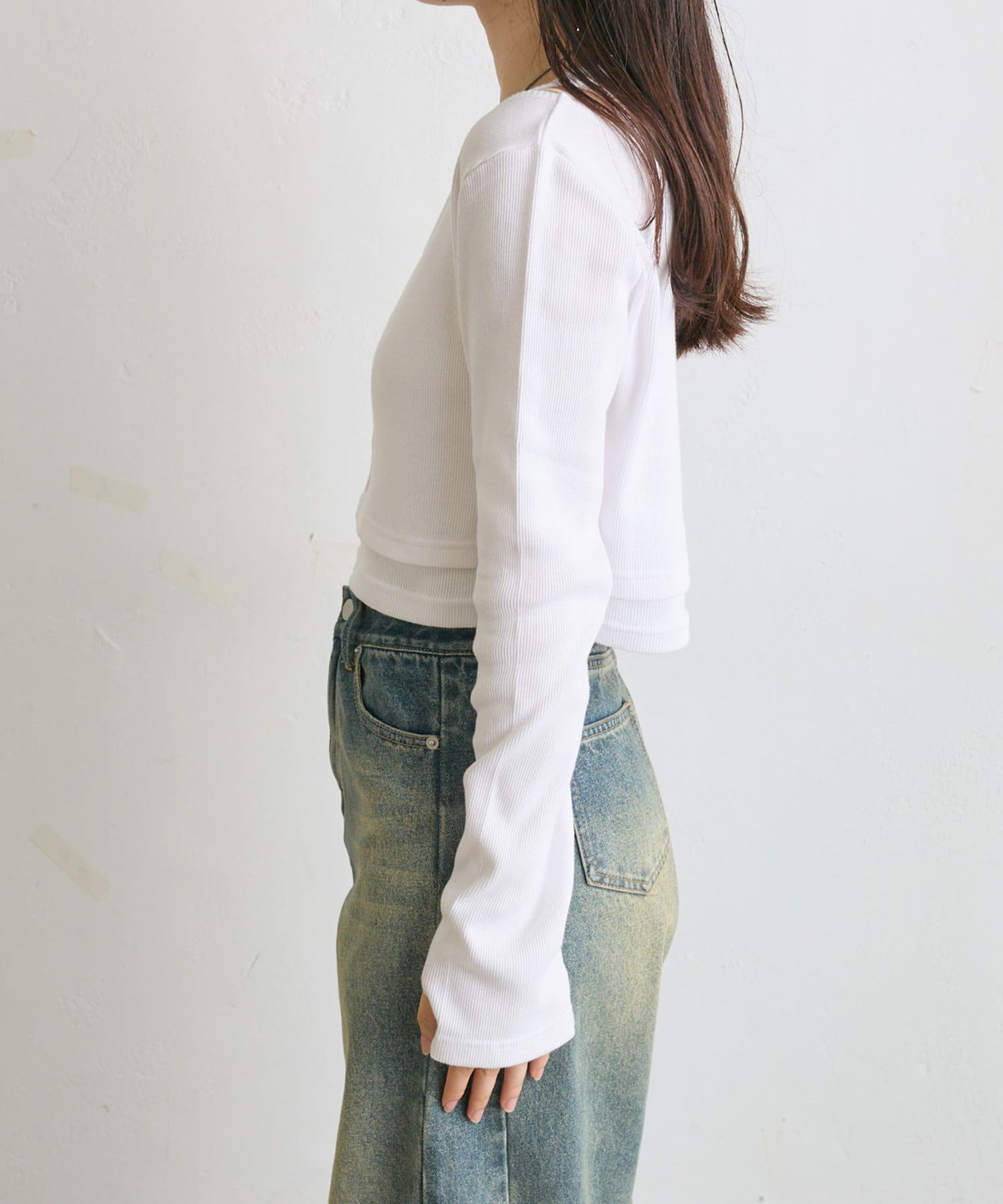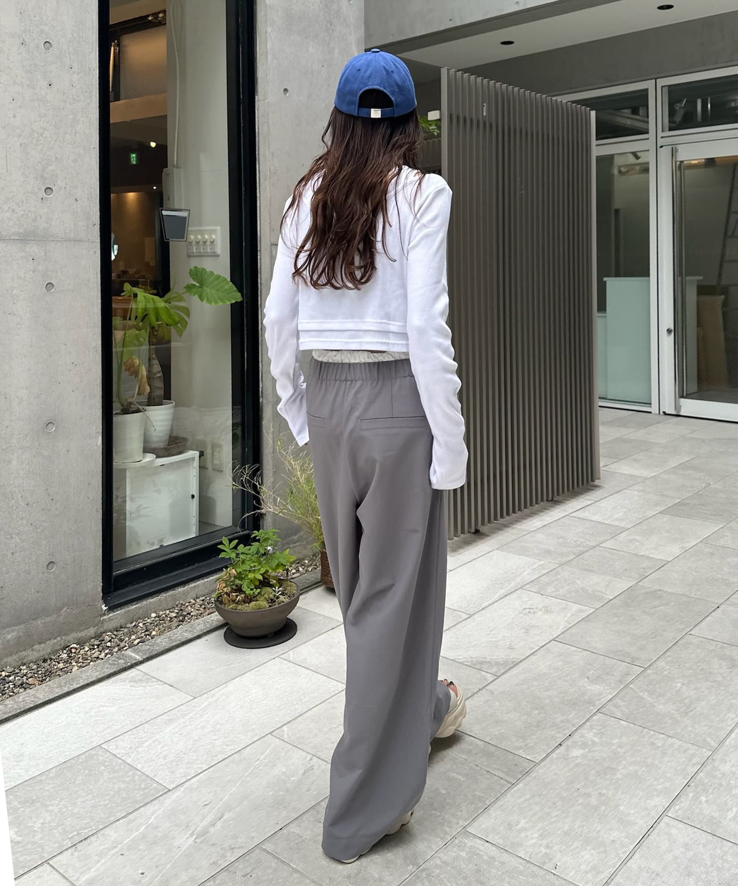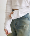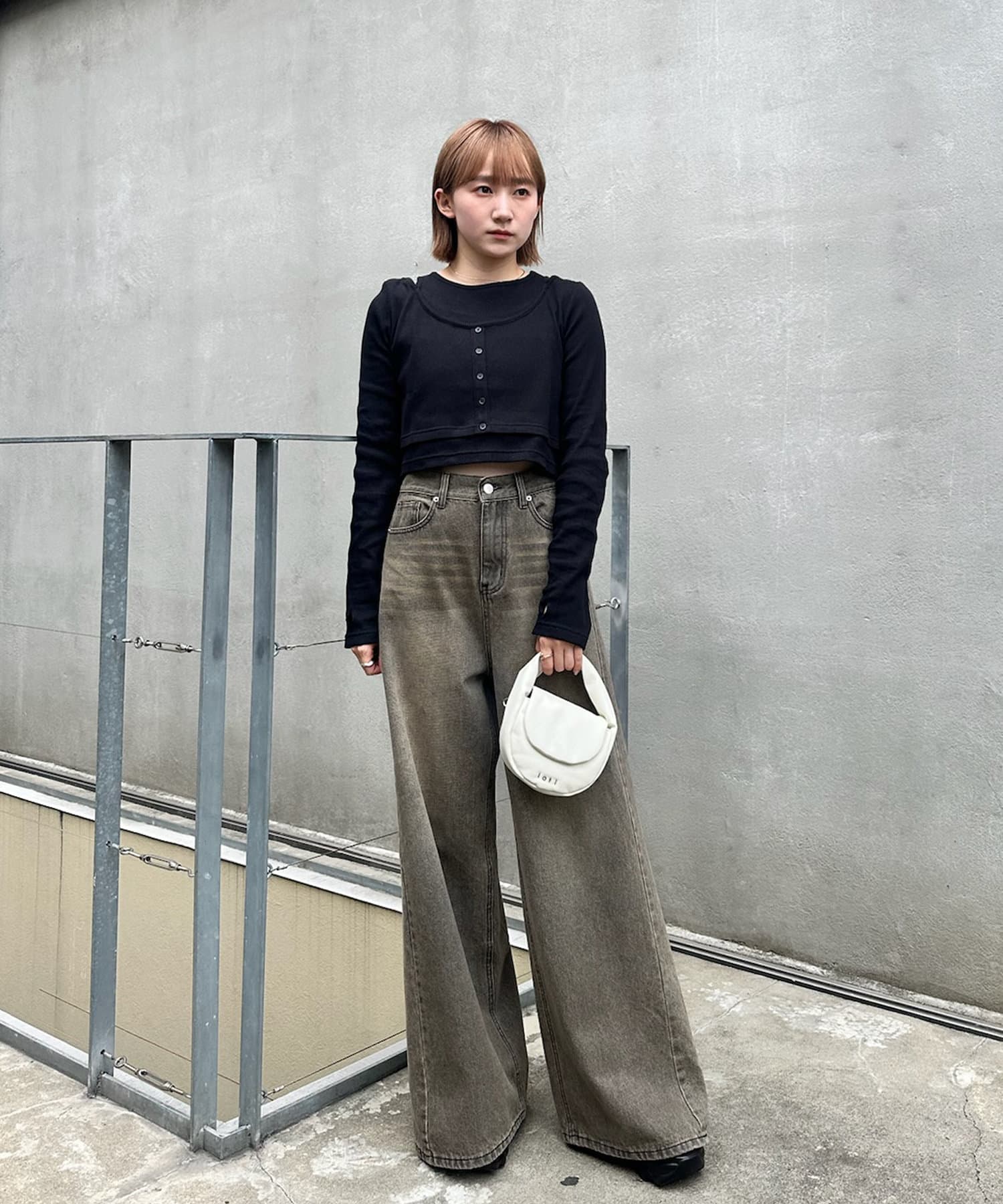 ・クロップド丈なので、デニムやスラックスなどのロングボトムを合わせるとスタイルアップ効果が◎