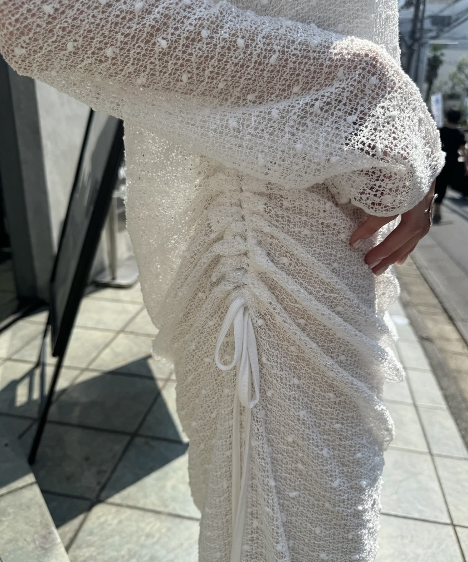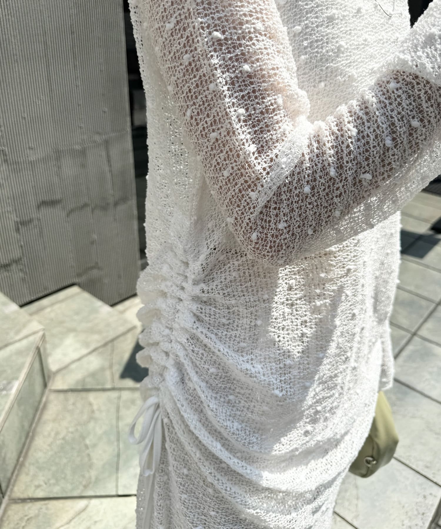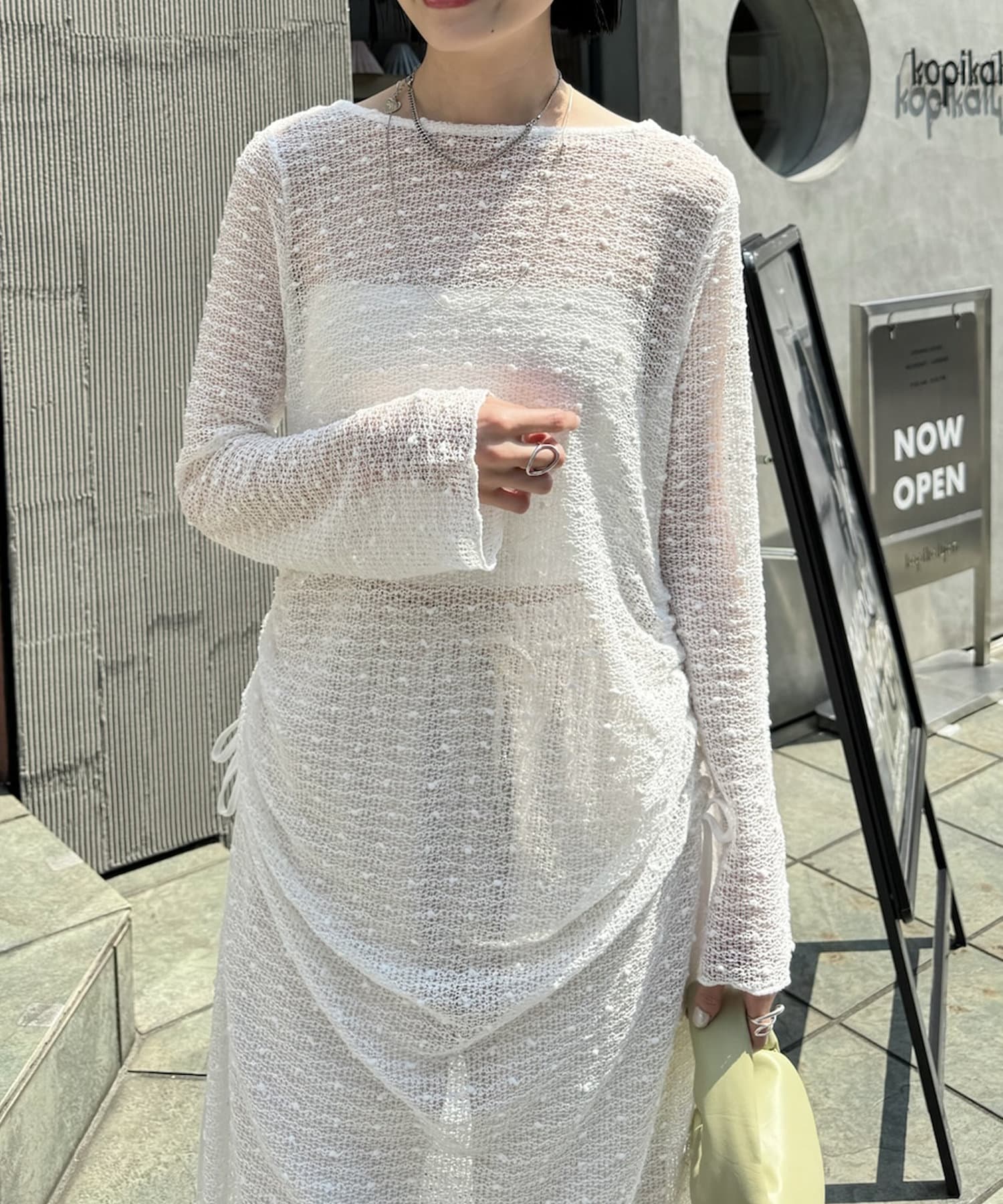 ・サイドのドロスト部分がワンピースに動きを出してくれる1枚。