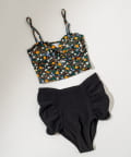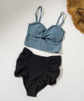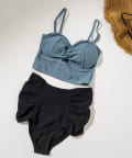 ・クロスのリボンデザインのトップスとハイウエストのパンツがセットになったスイムウェア。