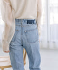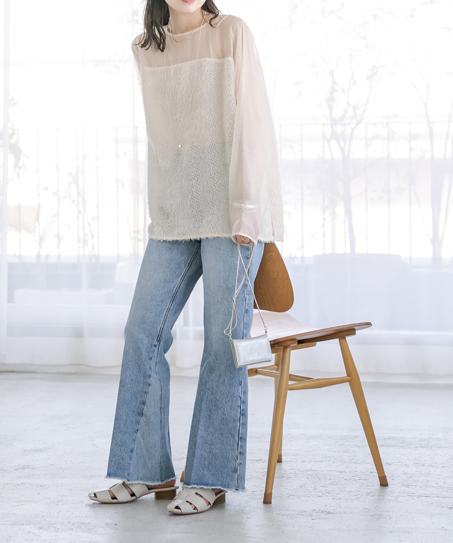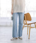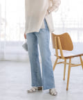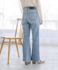 足元にワンポイントの切替を施したフレアシルエットのアイテムで、ヒップから裾に向かってのシルエットは非常に綺麗なラインで穿いて頂けます。