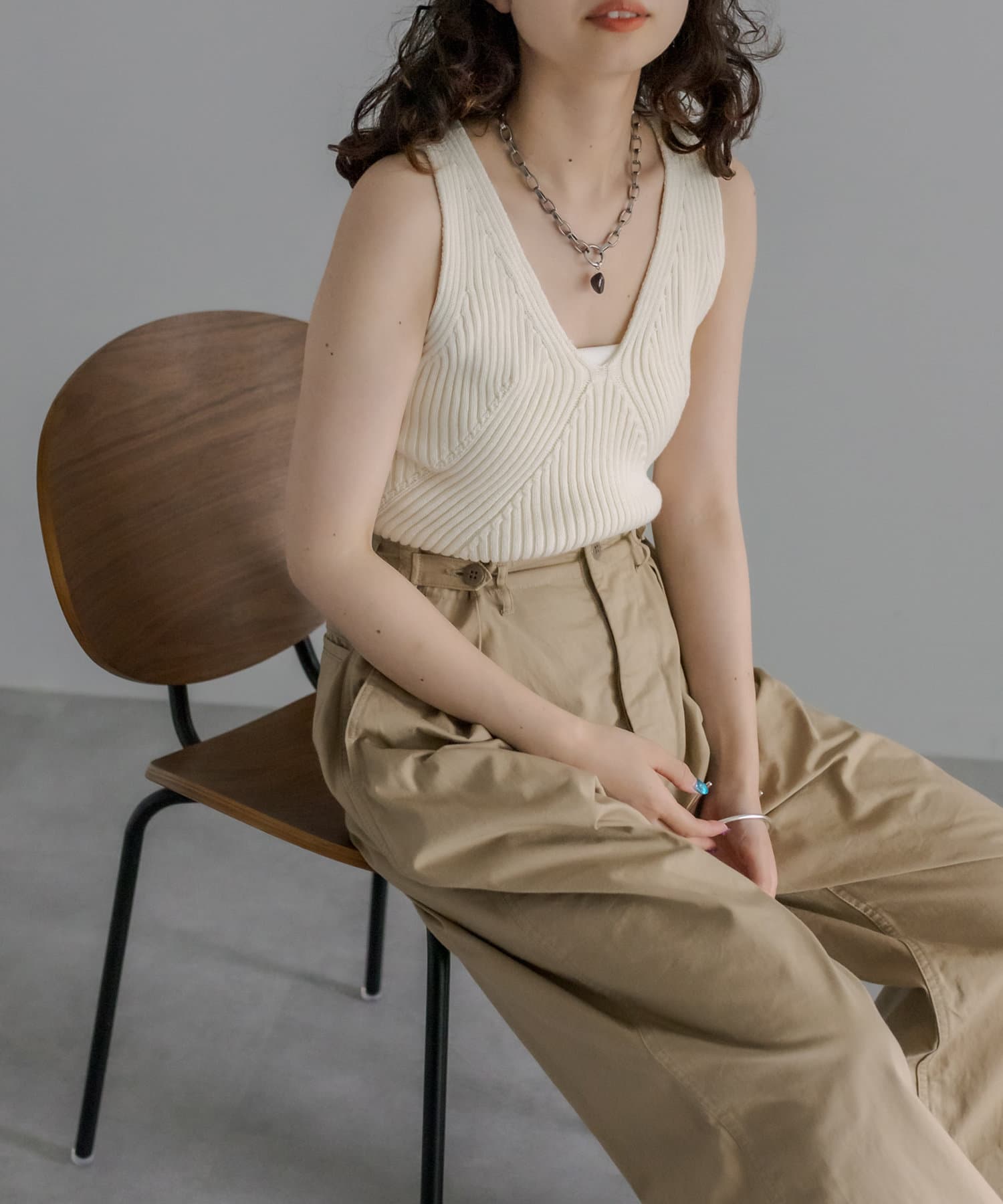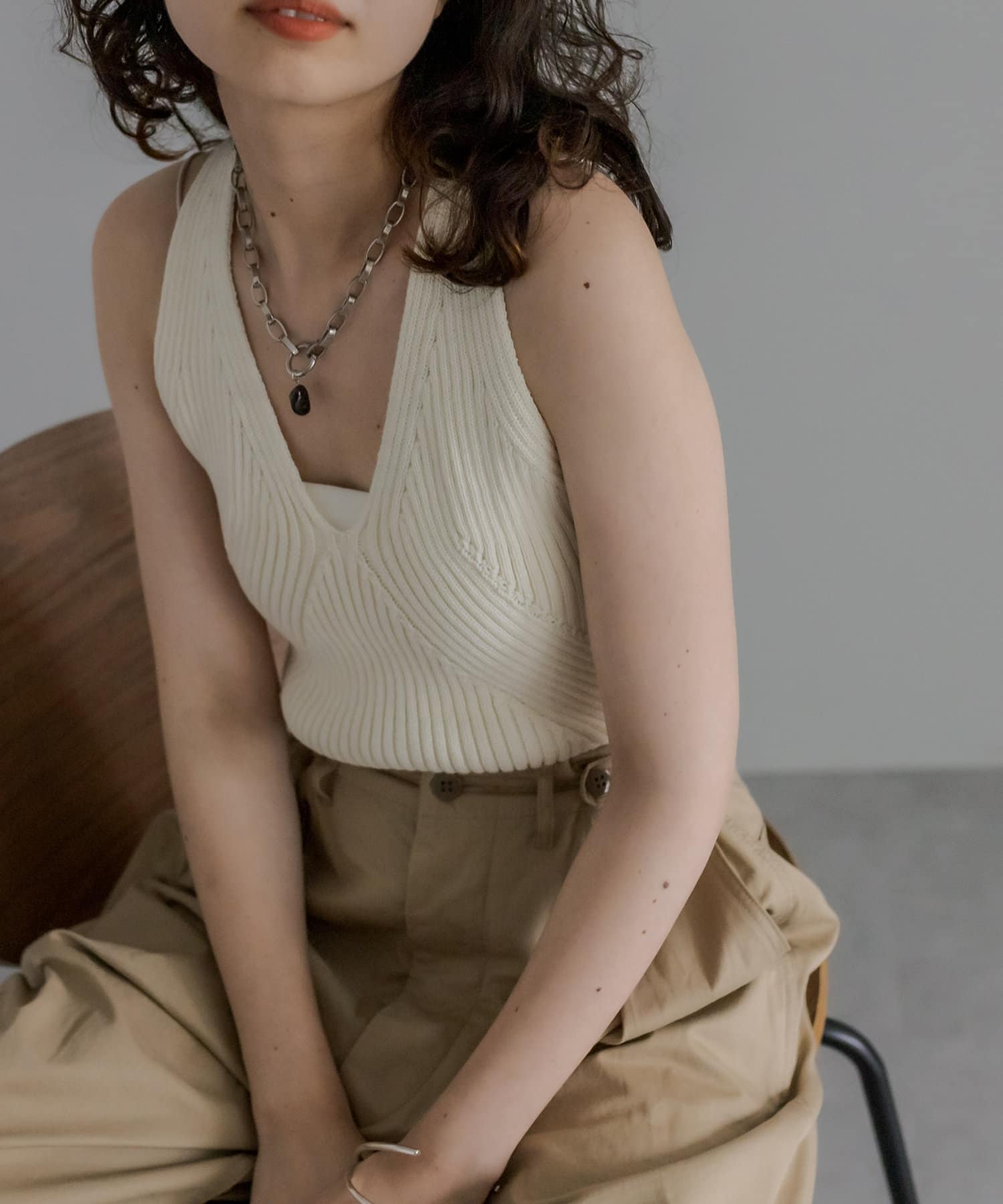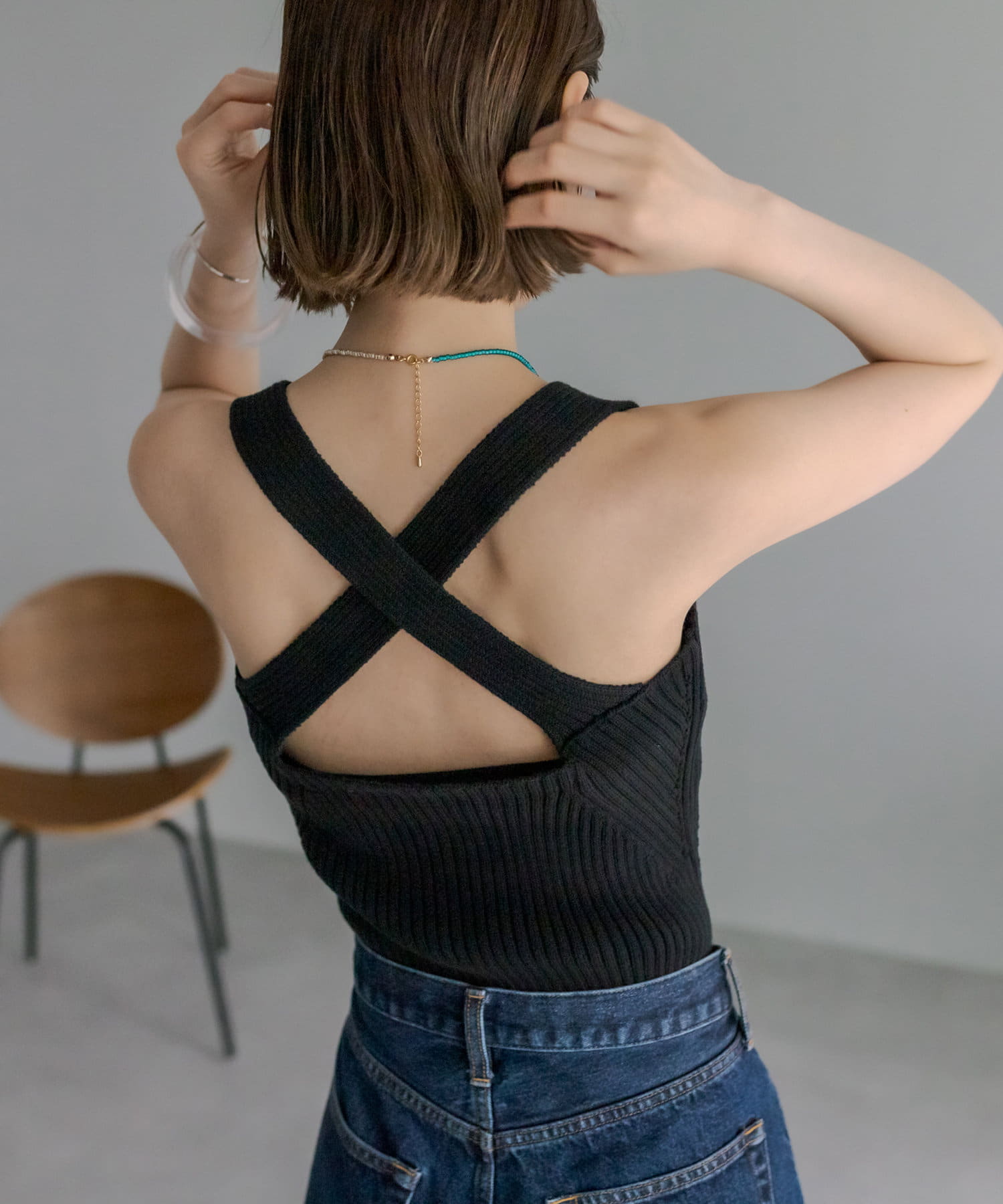 ・バッククロスデザインがポイントのニットタンクトップが登場。