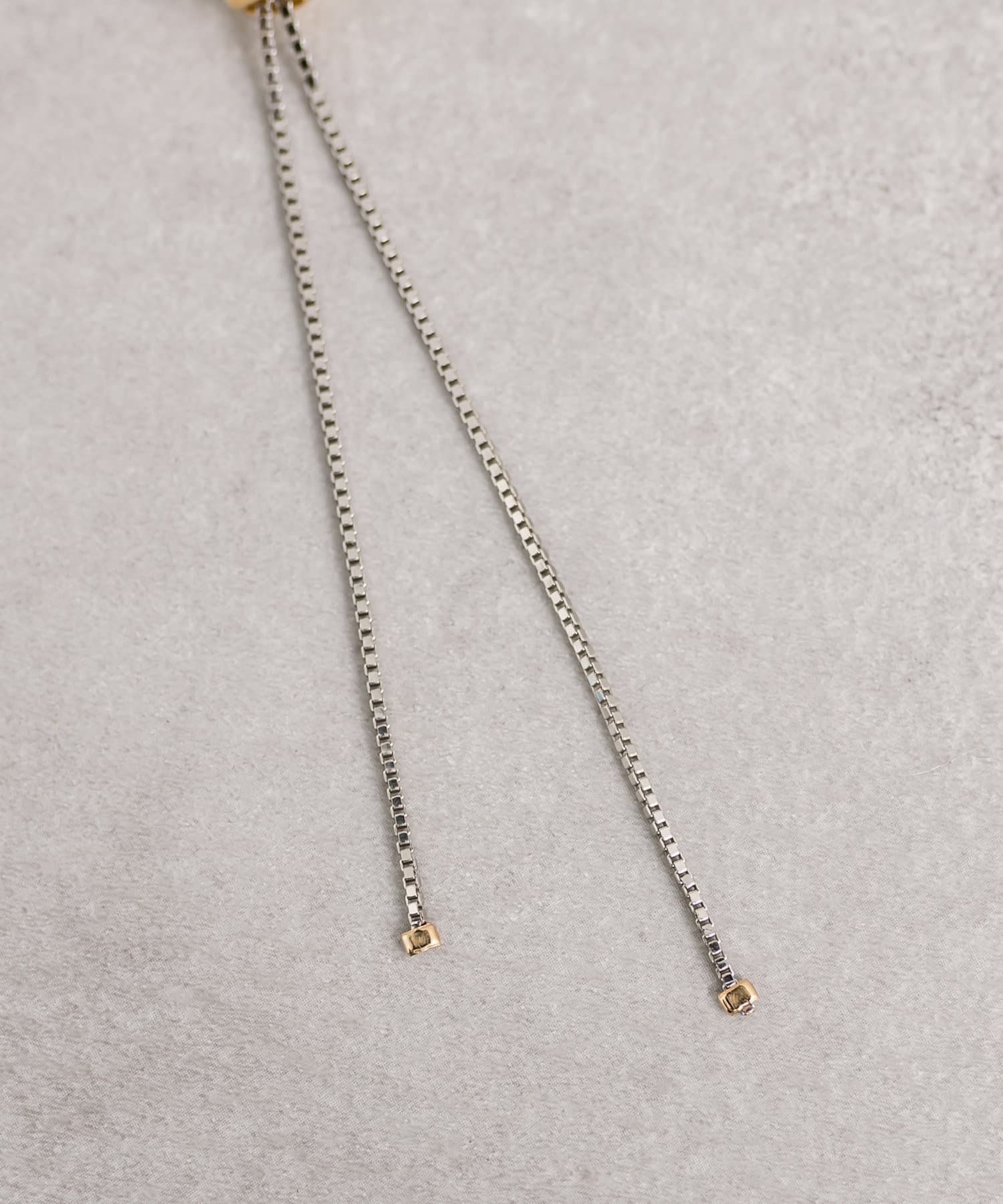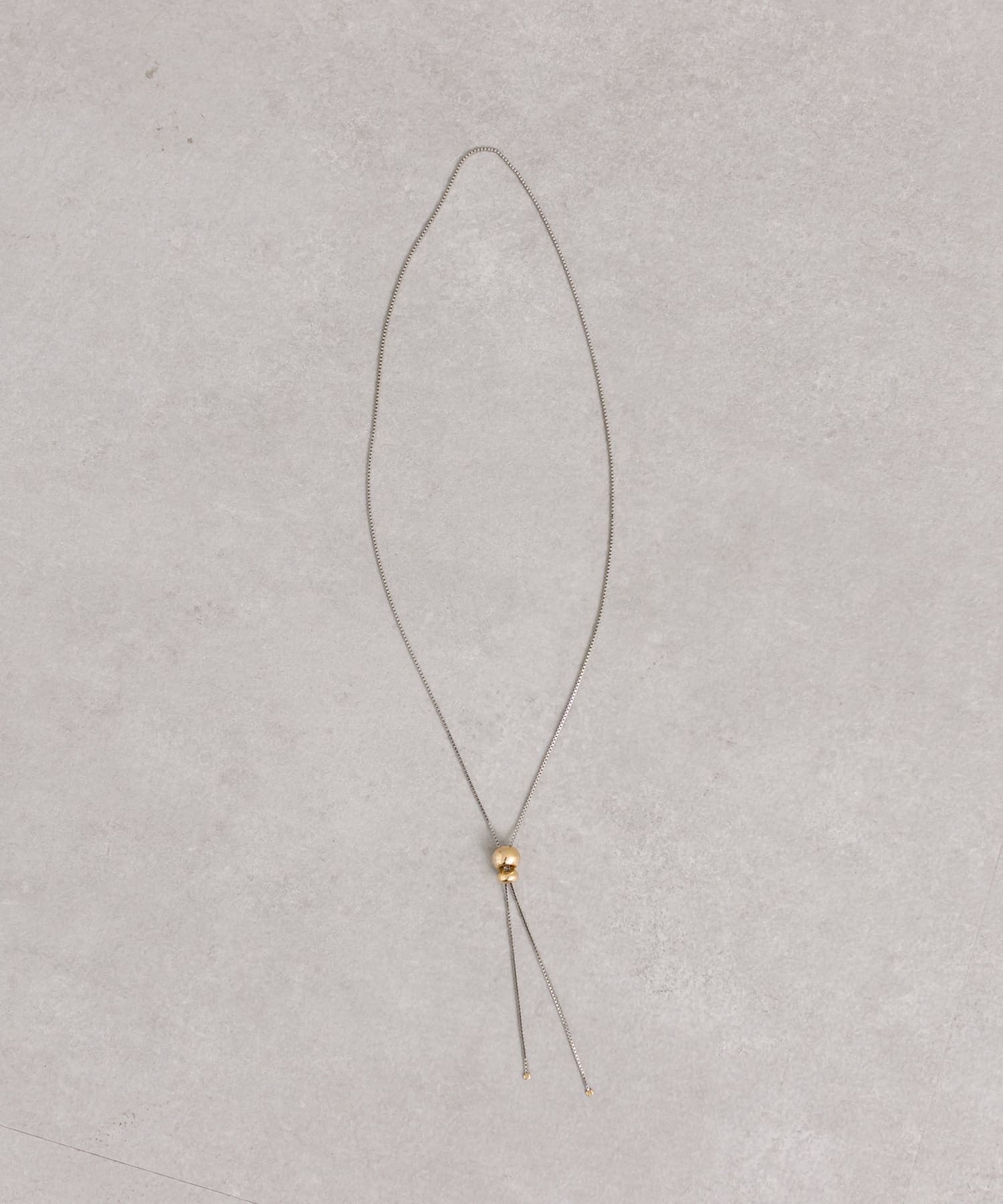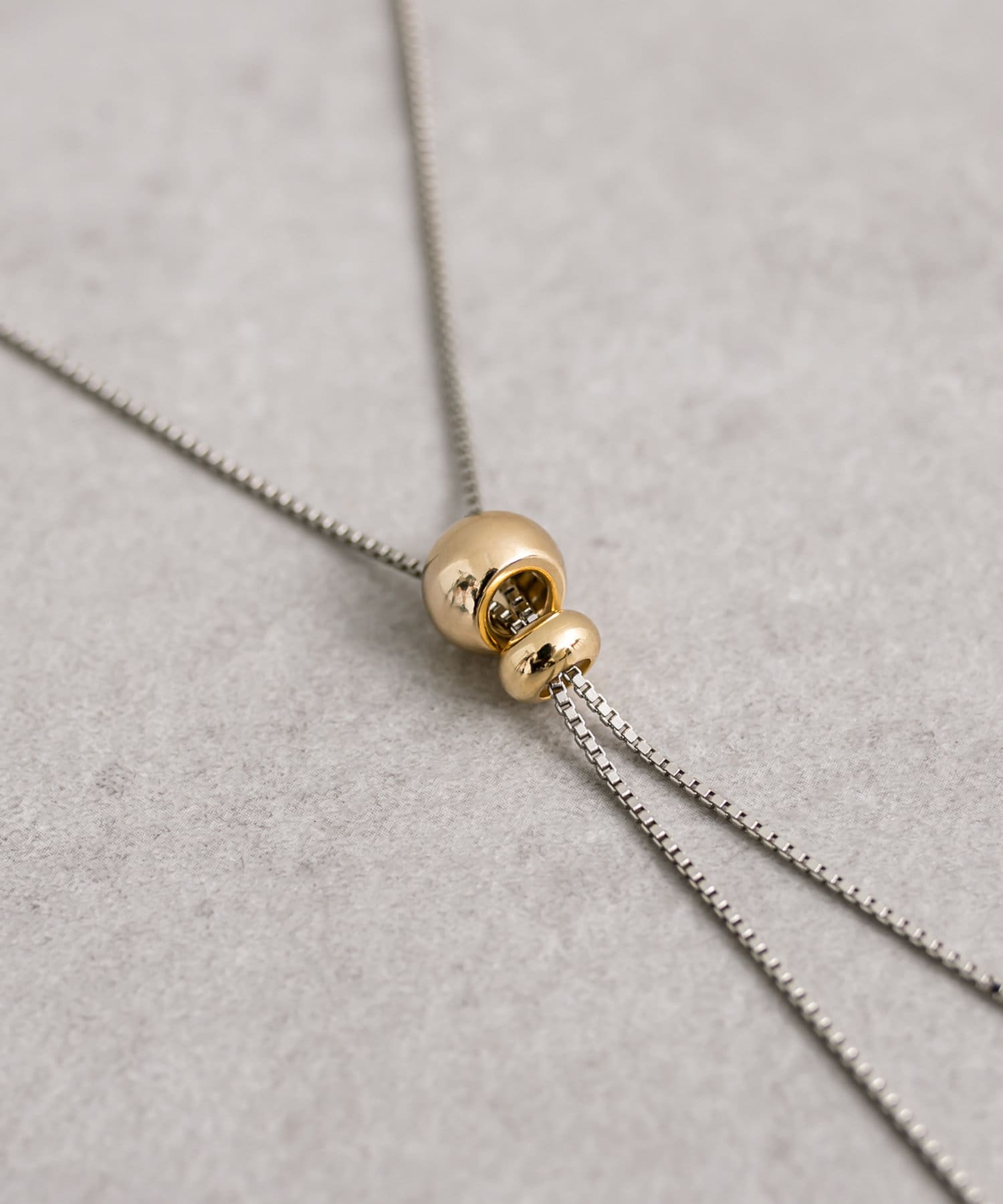 ・細身のシルバーチェーンにゴールドのパーツが目を惹くデザイン。