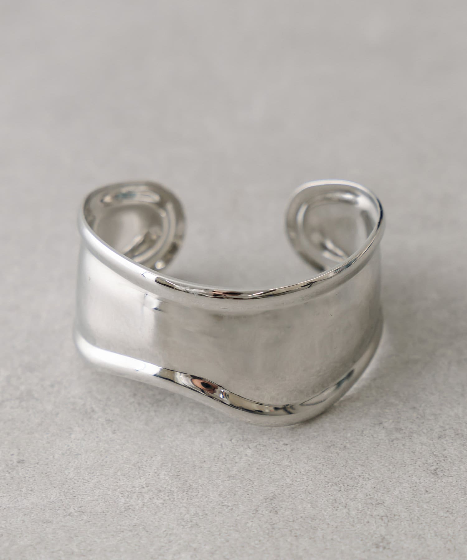 ・ワイドな形とフチにカーブがほどこされたバングル。