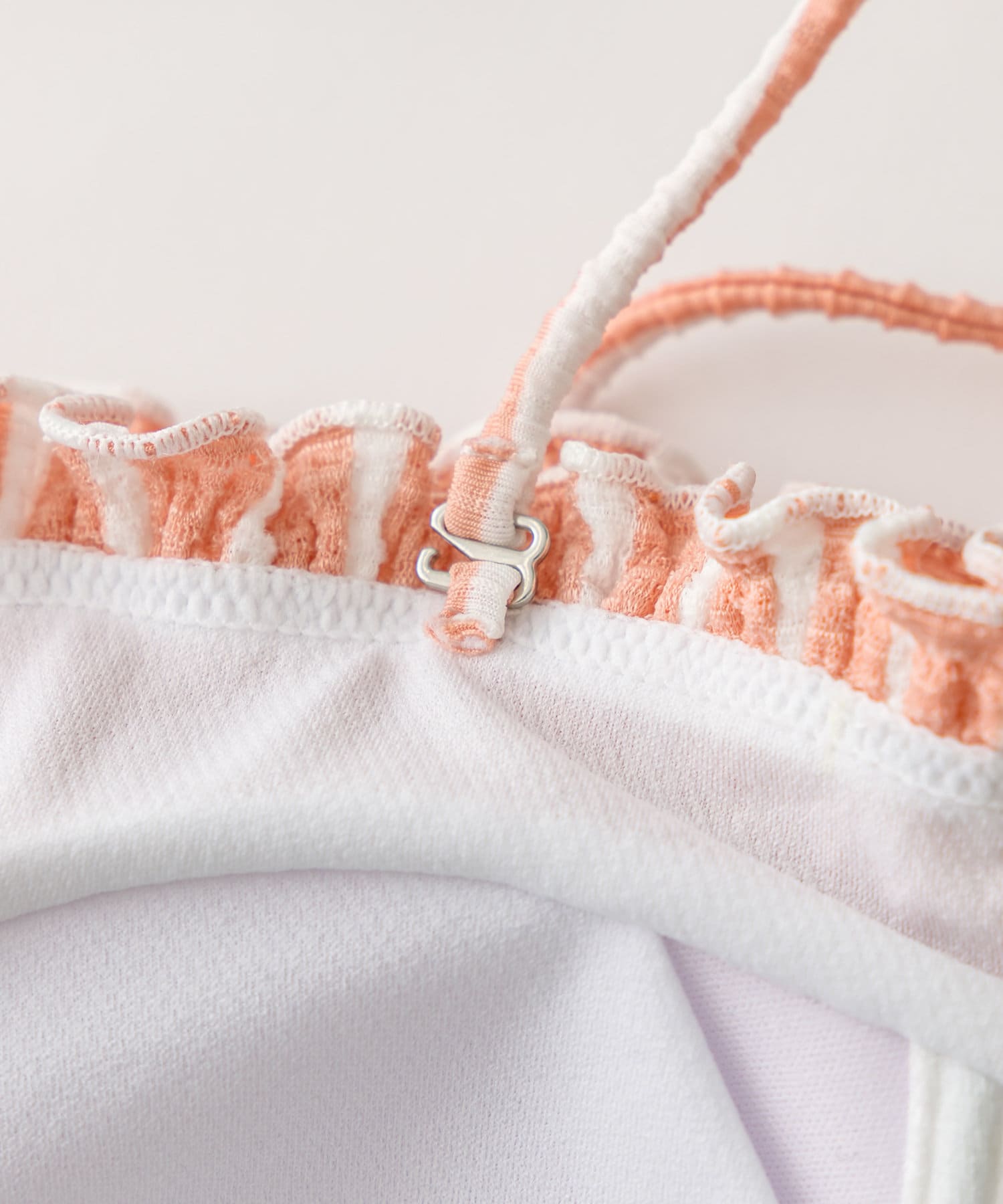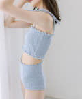ファッション水着は競泳用の水着とは違い、繊細な素材で出来ています。使用後は持ち帰る前になるべく早く簡単に水洗いをするか、シャワーなどでしっかり塩素や海水を落とし、軽く絞って水気をとったら、乾いたタオルにくるんで持ち帰りください。