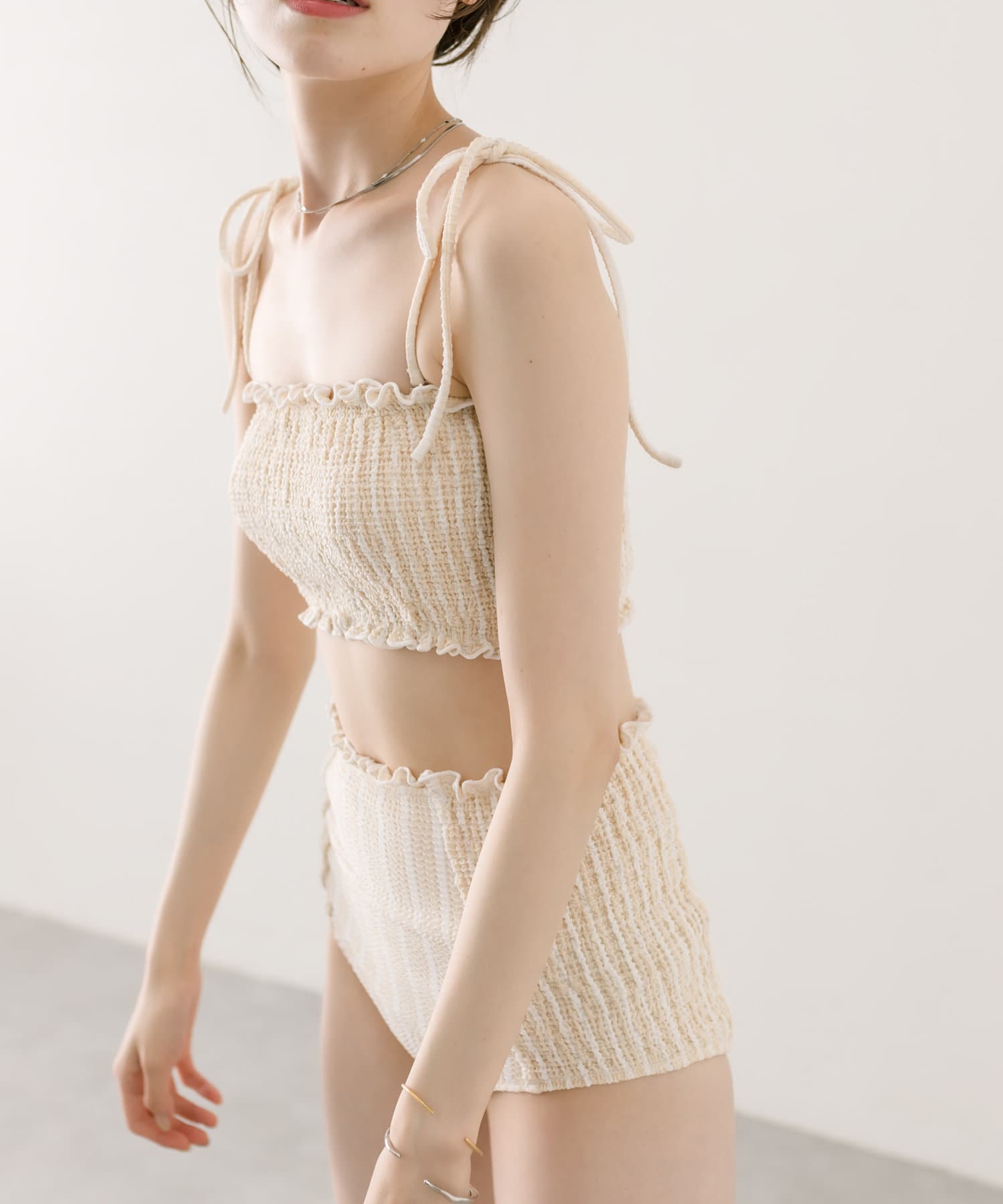 ・肩ひもの結び目が女性らしいワンポイントに◎