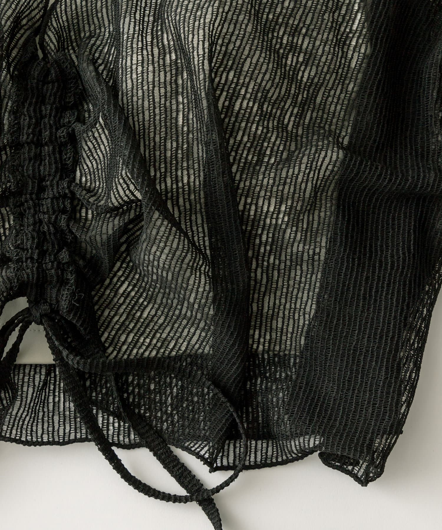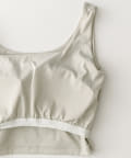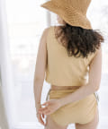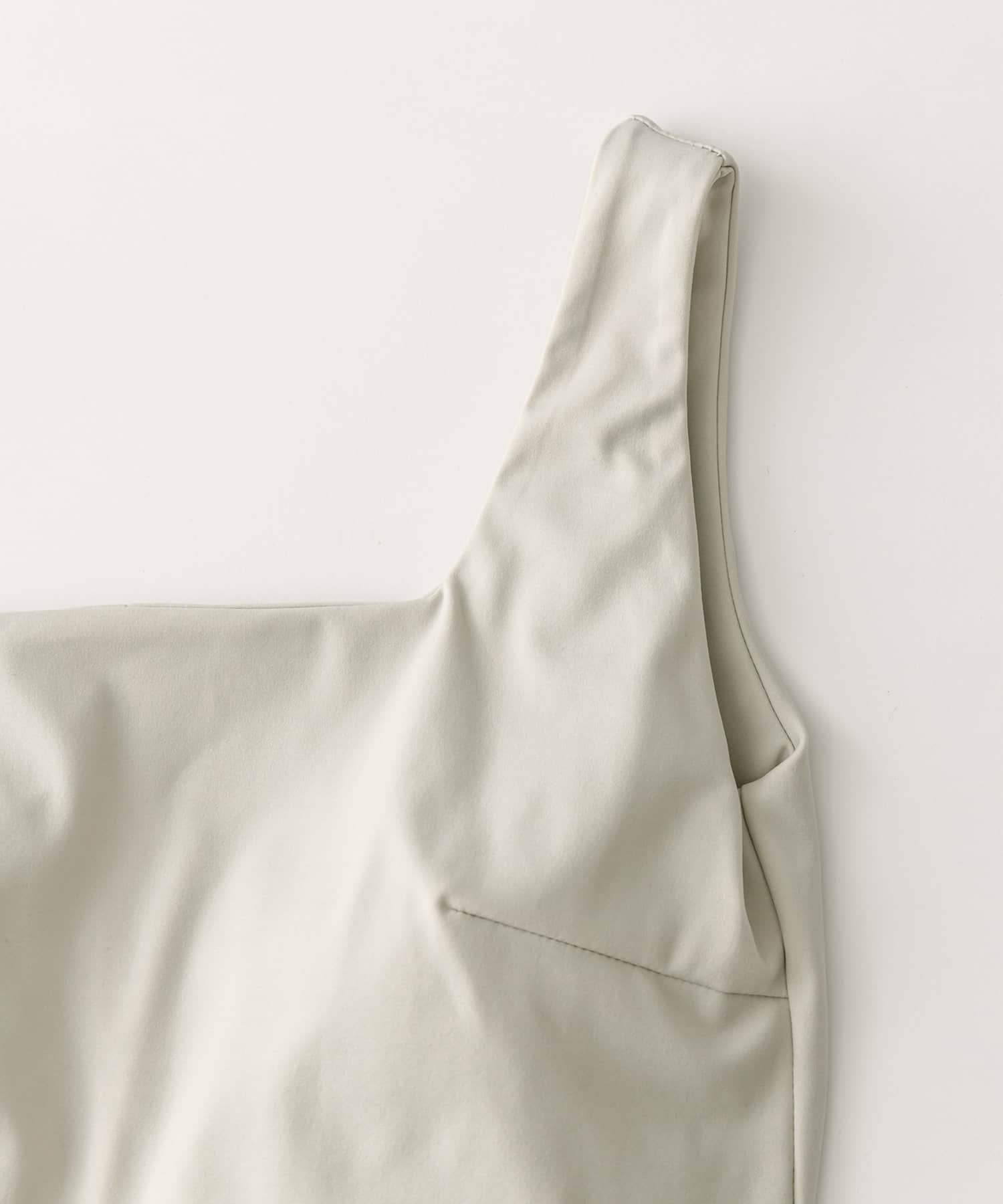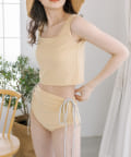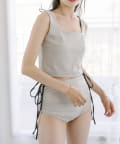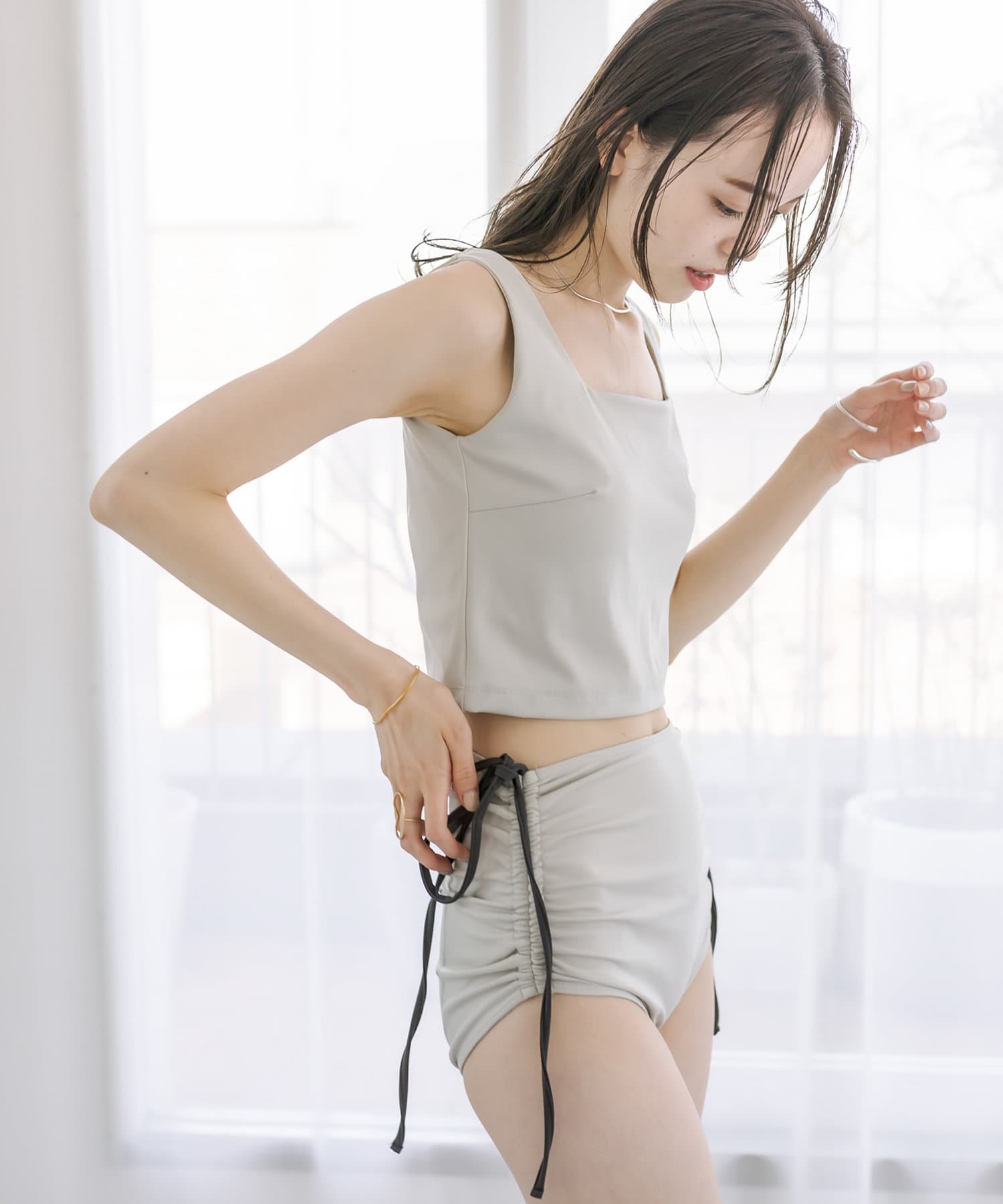 ・タンク型のトップスとサイドのギャザーデザインが目を惹くハイウエストパンツ。
