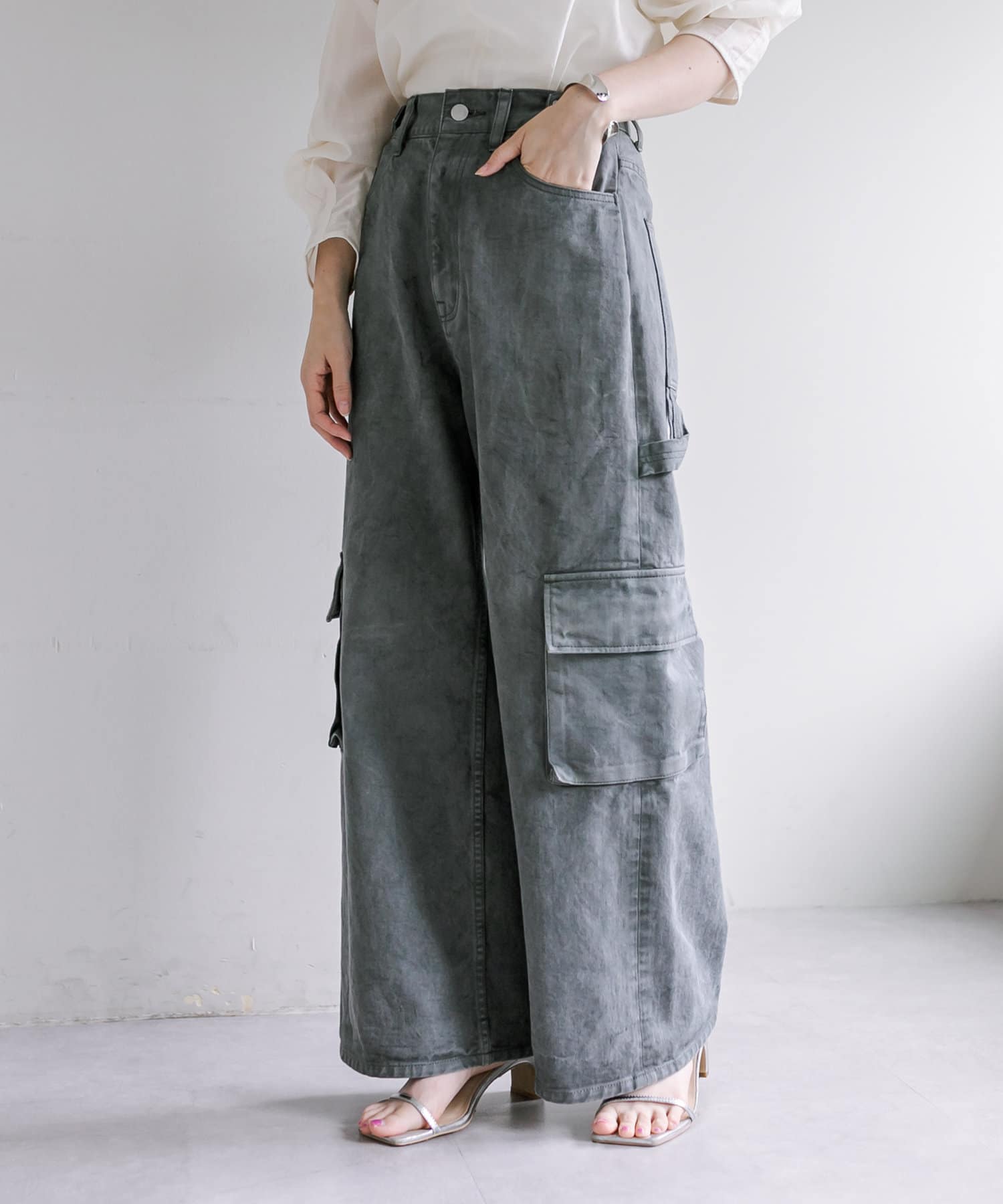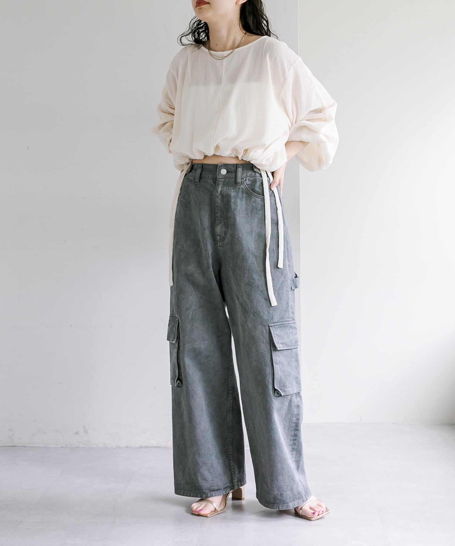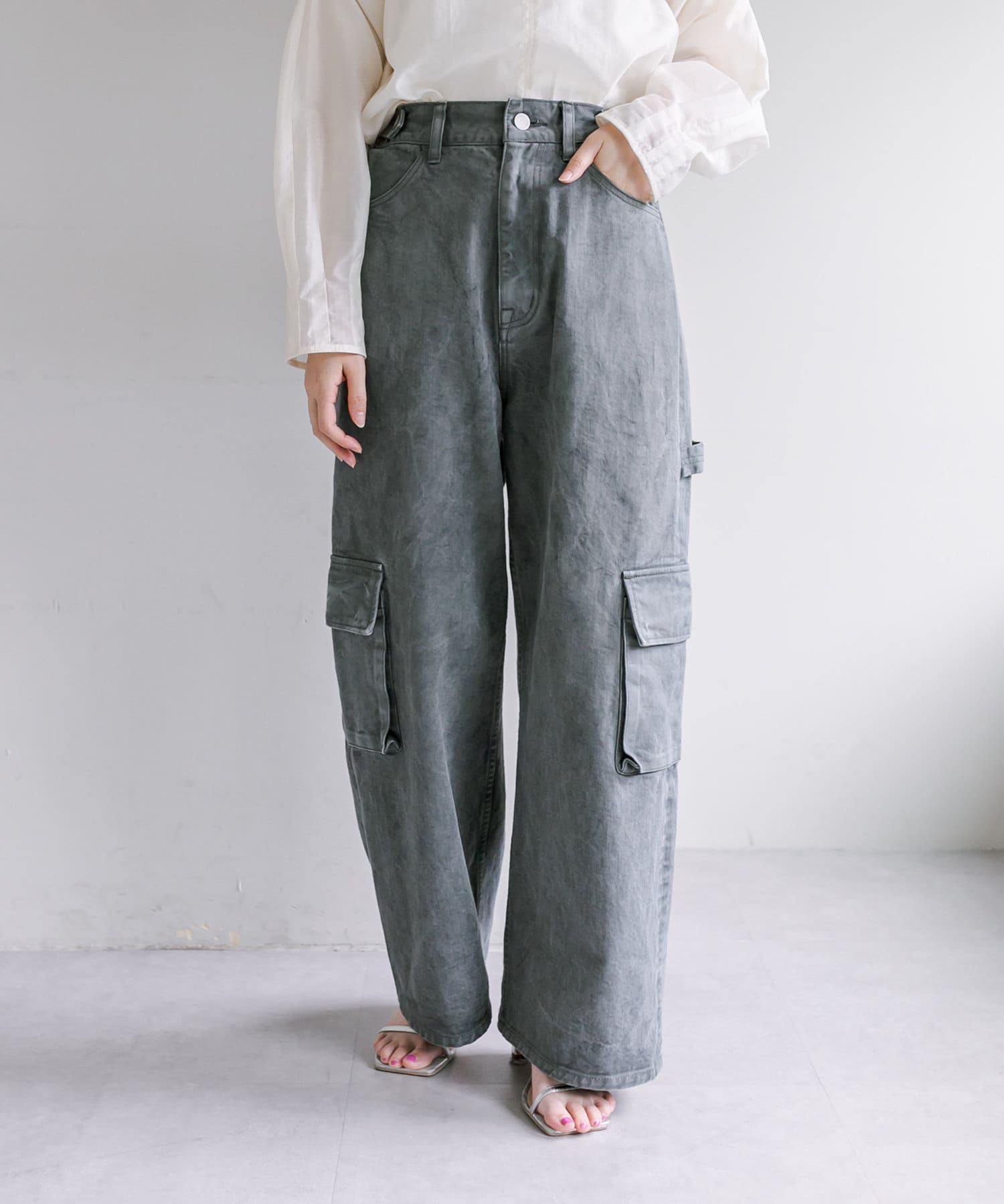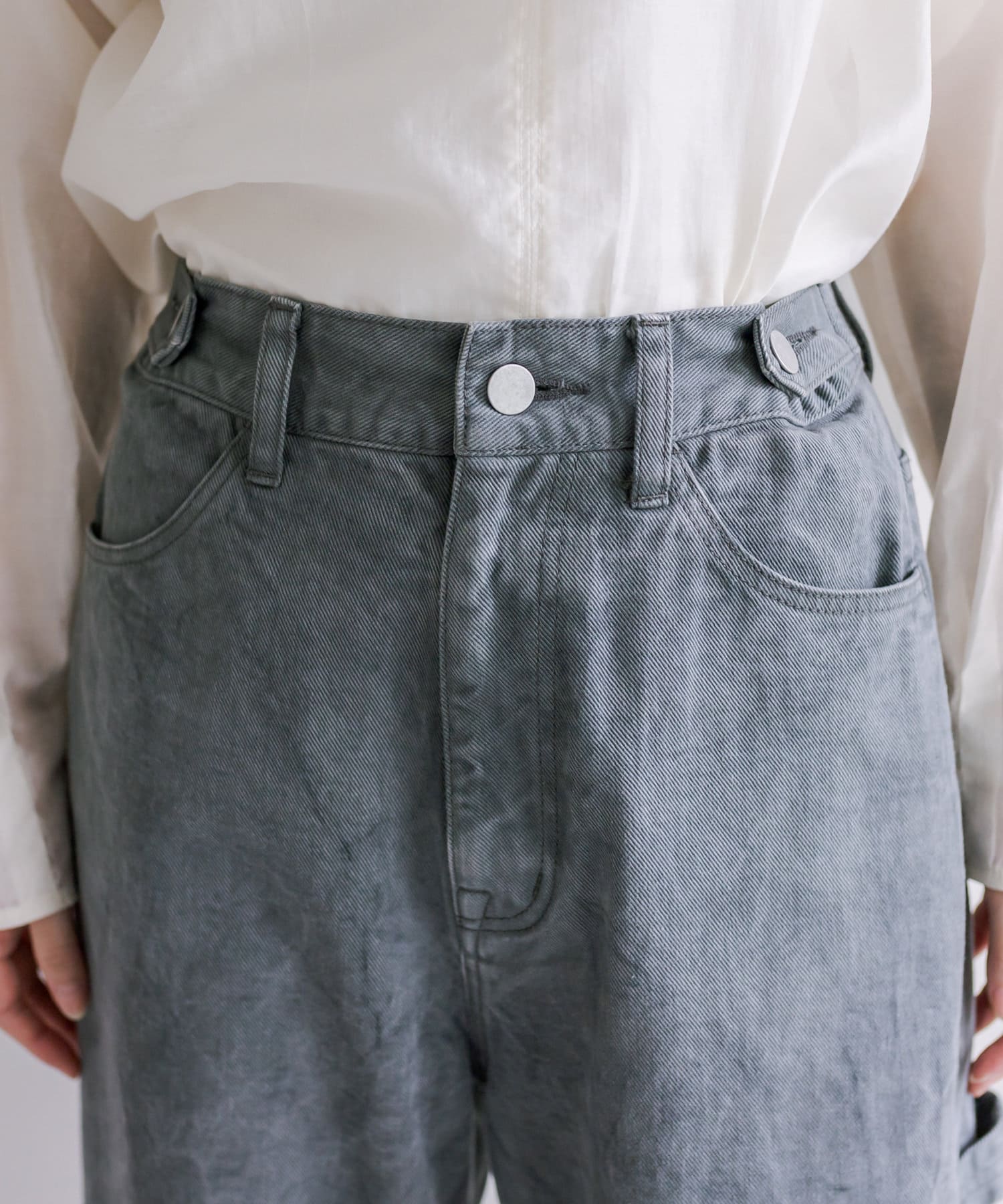 ペインターパンツ特有のカジュアル感が出すぎないように、ハイウエスト、ワイドシルエットで綺麗見えするシルエットに仕上げています。