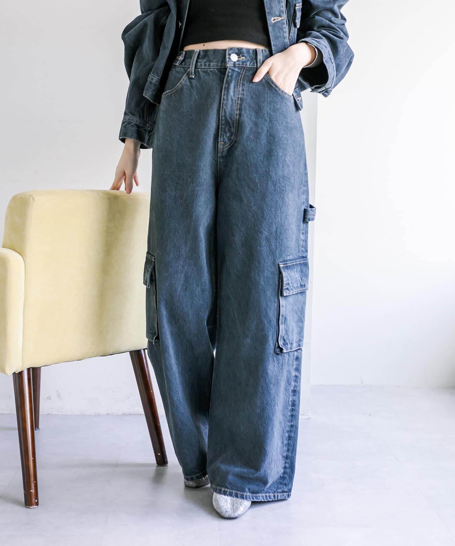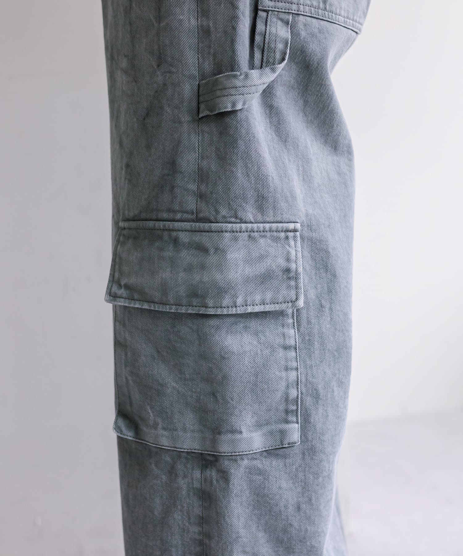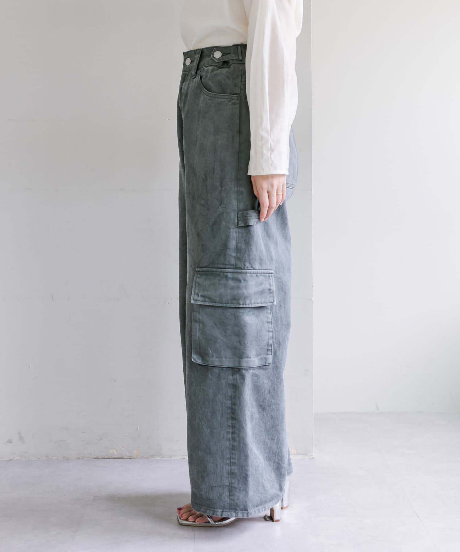 ペインターパンツ特有のカジュアル感が出すぎないように、ハイウエスト、ワイドシルエットで綺麗見えするシルエットに仕上げています。