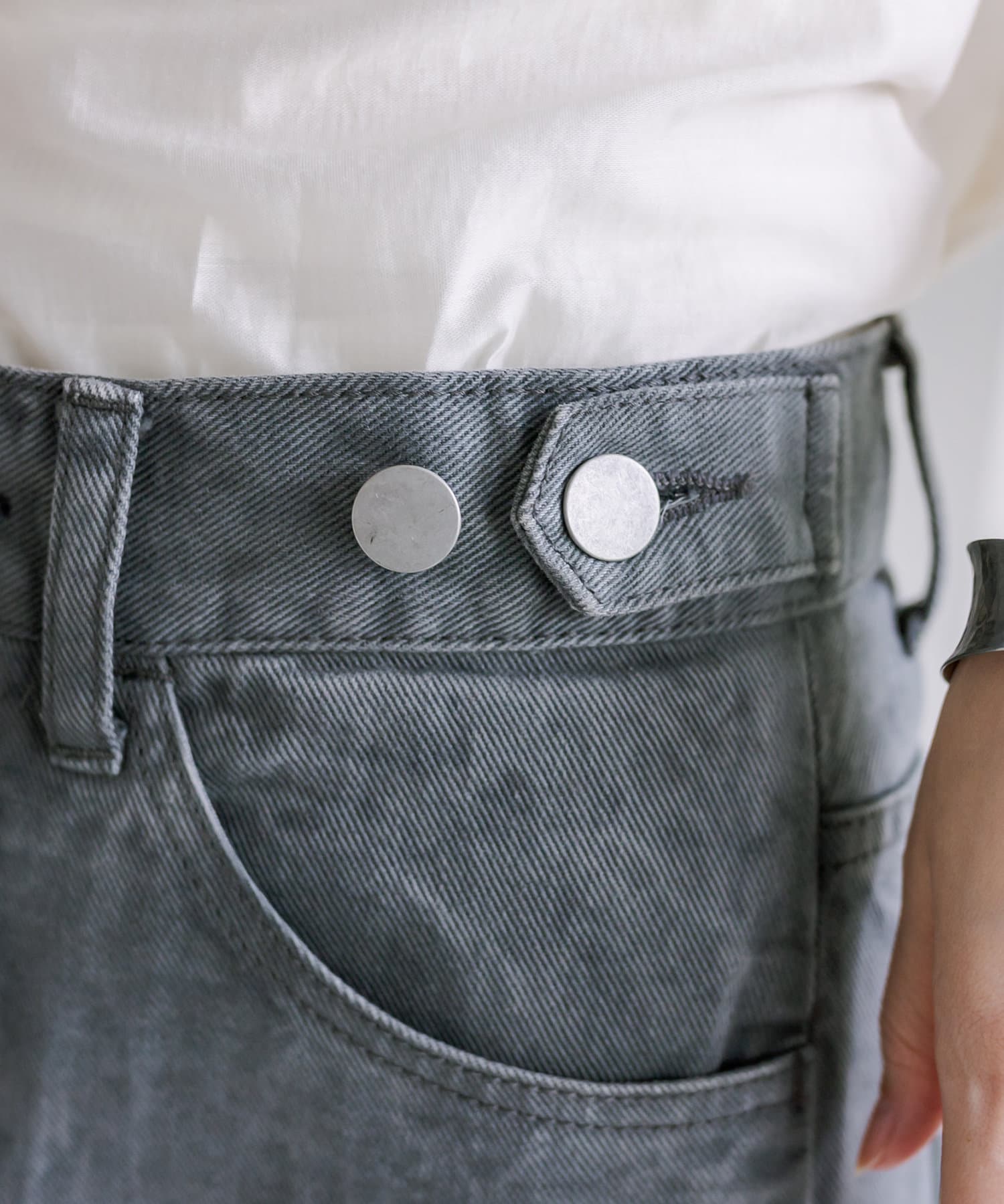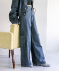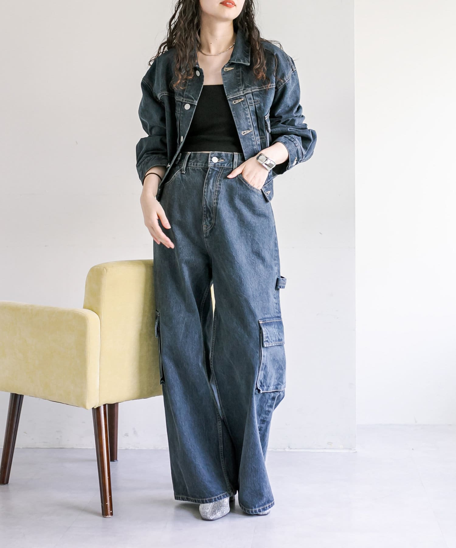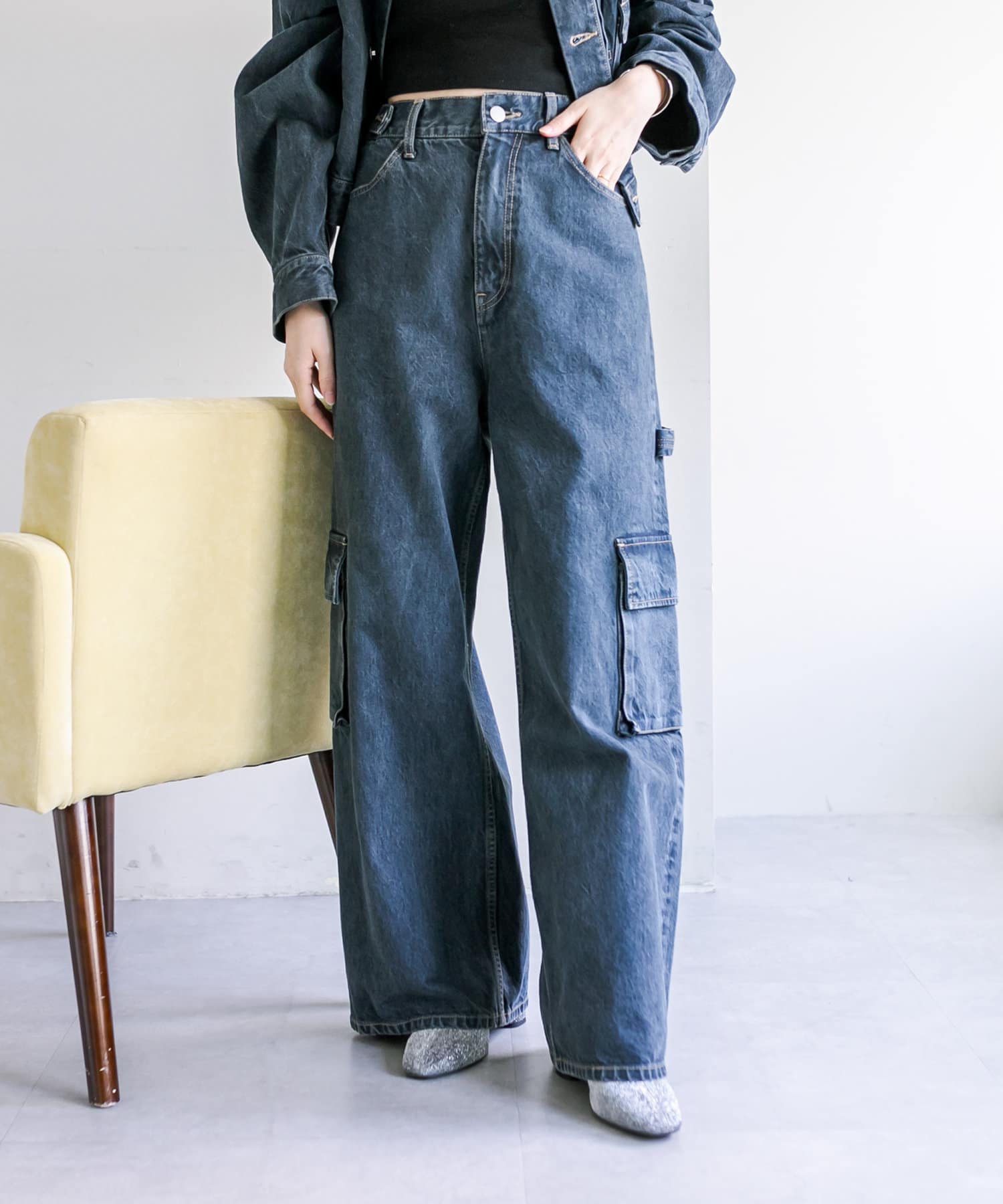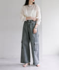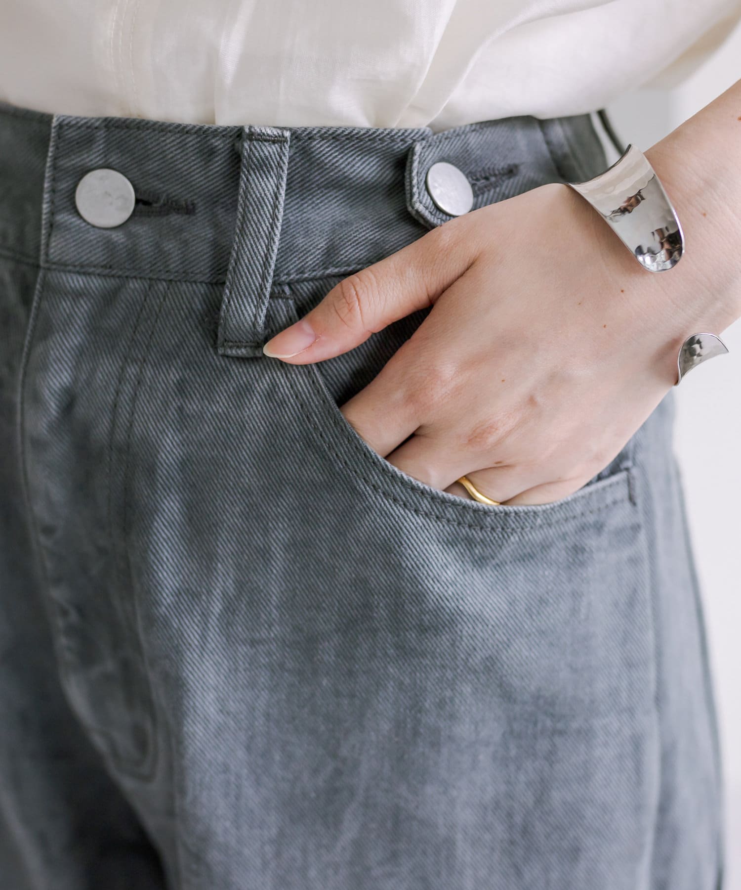 ペインターパンツ特有のカジュアル感が出すぎないように、ハイウエスト、ワイドシルエットで綺麗見えするシルエットに仕上げています。