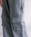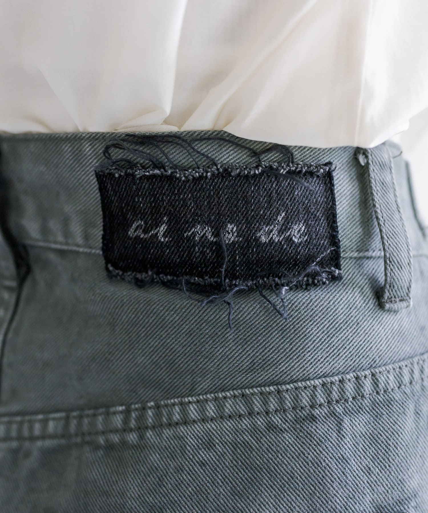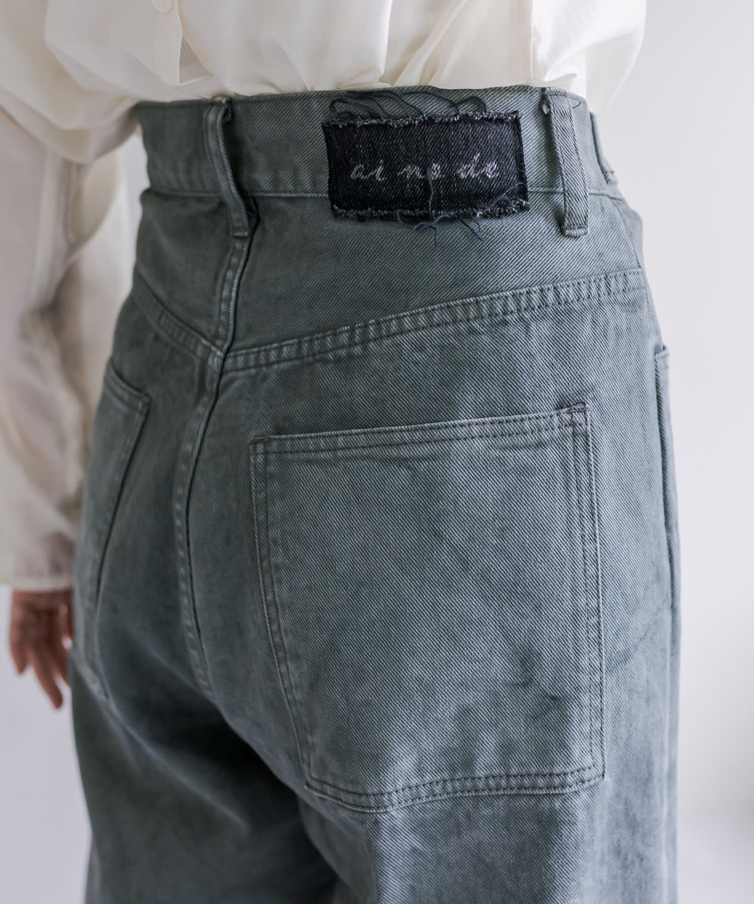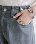 ホワイトデニムから色を染めて加工に拘ったグレーと、グレーとブルーが混ざったようなネイビーはこの色を出すのに、先ずブルーデニムをブリーチ加工で薄めカラーにしてから、ネイビーに製品染め、ストーンウォッシュで激しめに洗い、生地に凹凸感と深みを出しています。