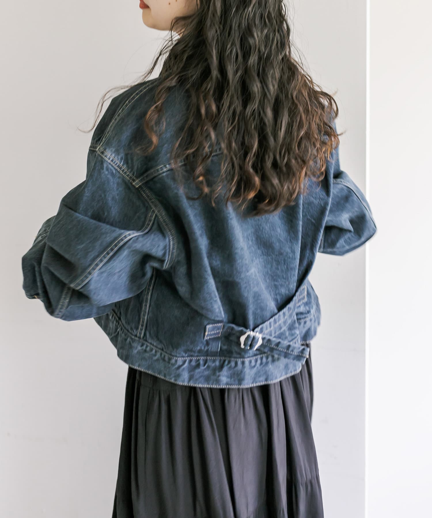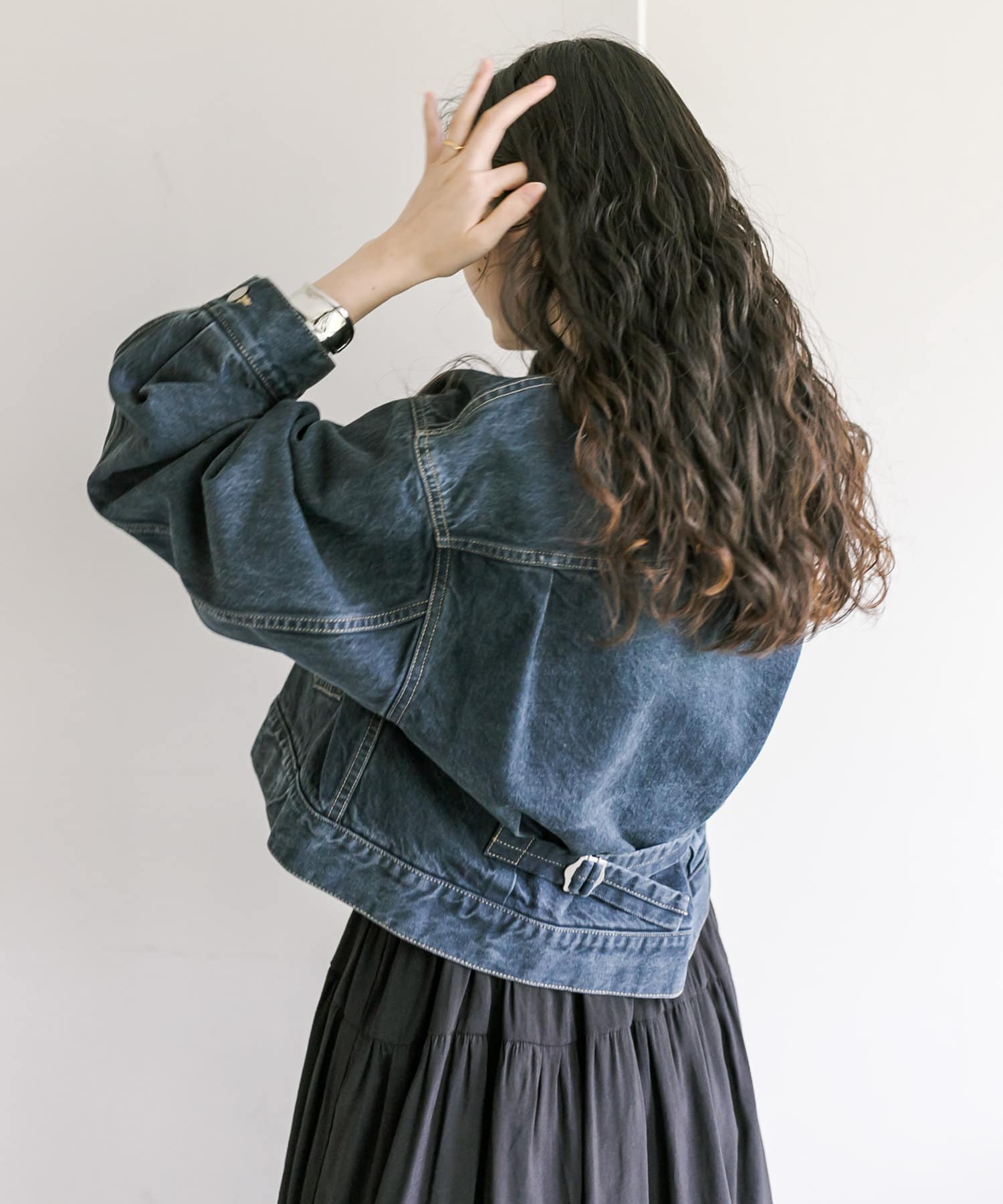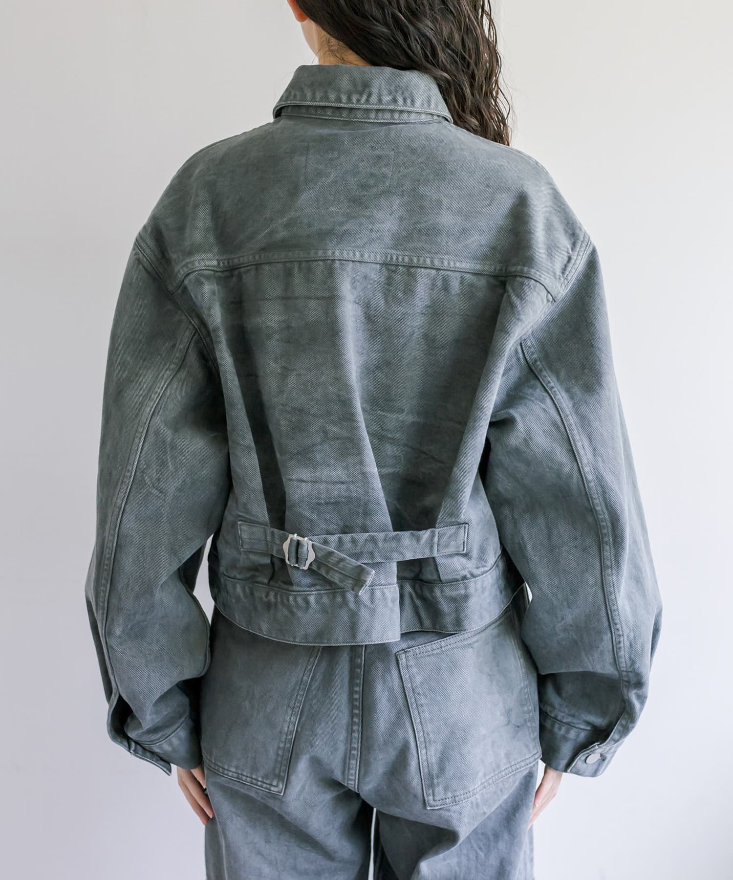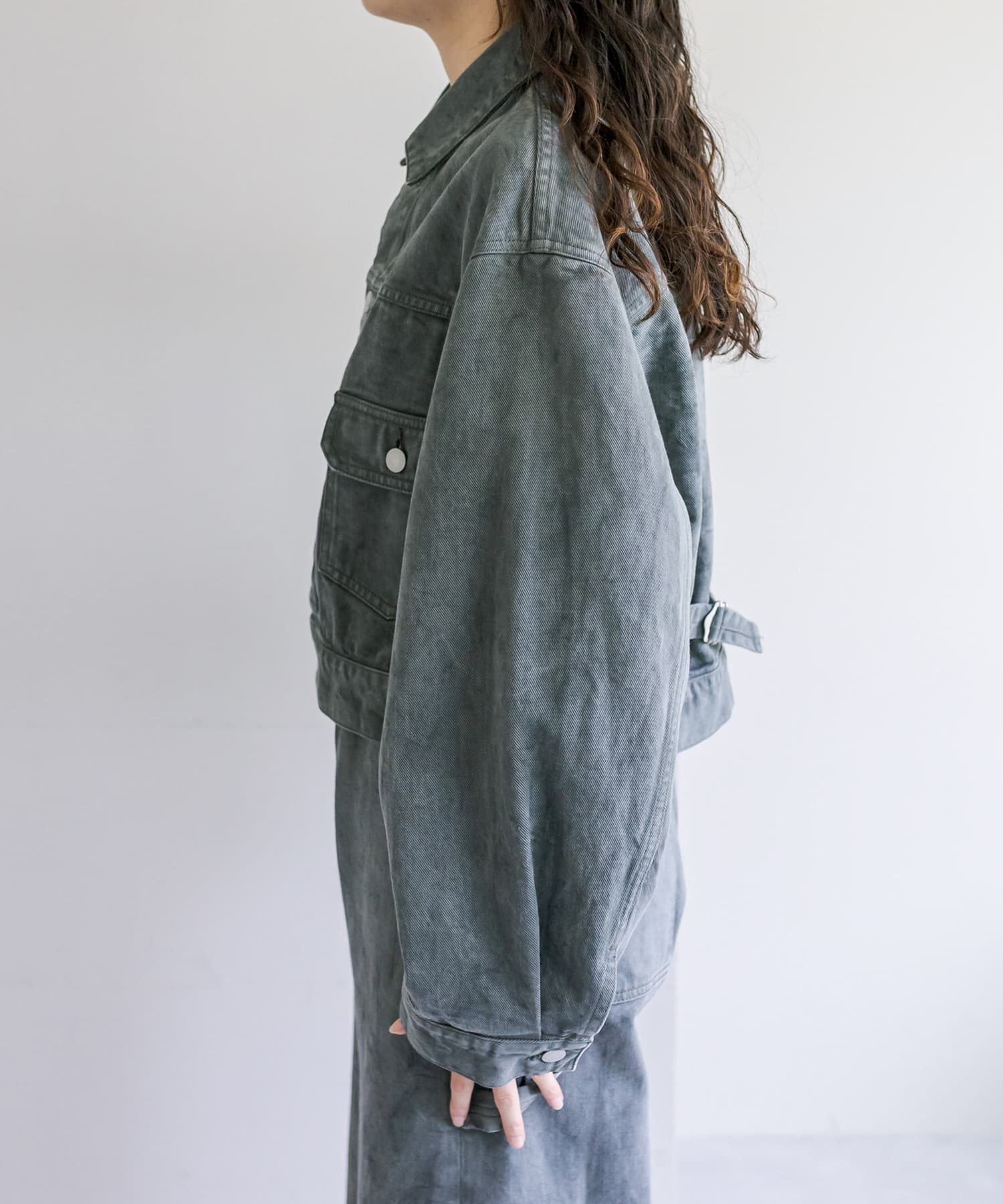 ショート丈、身幅はたっぷりワイドにすることで、着用するとややまるみのあるシルエットが特徴です。