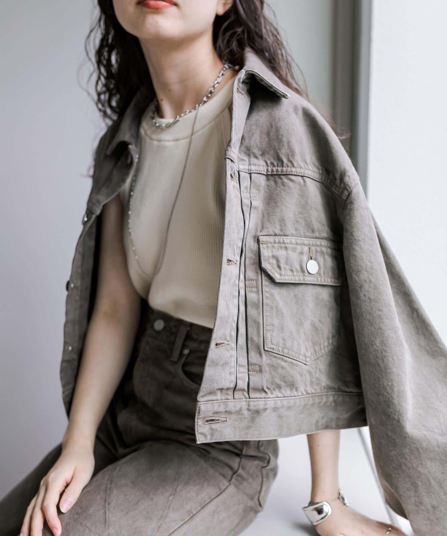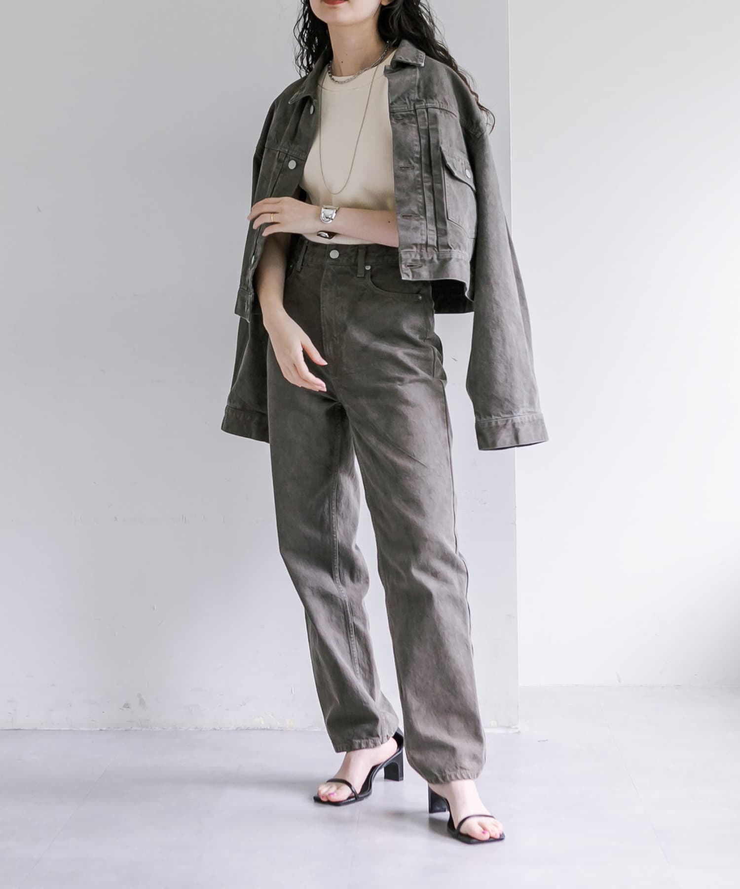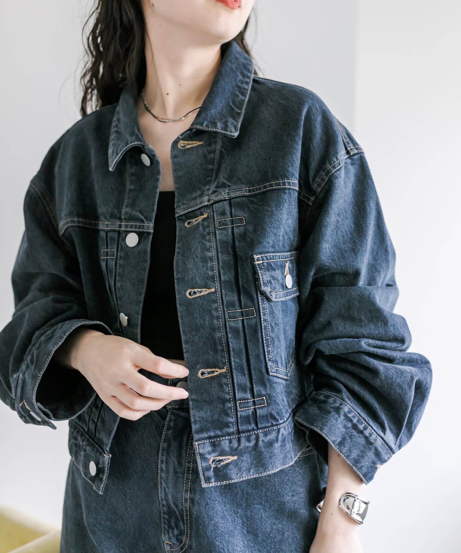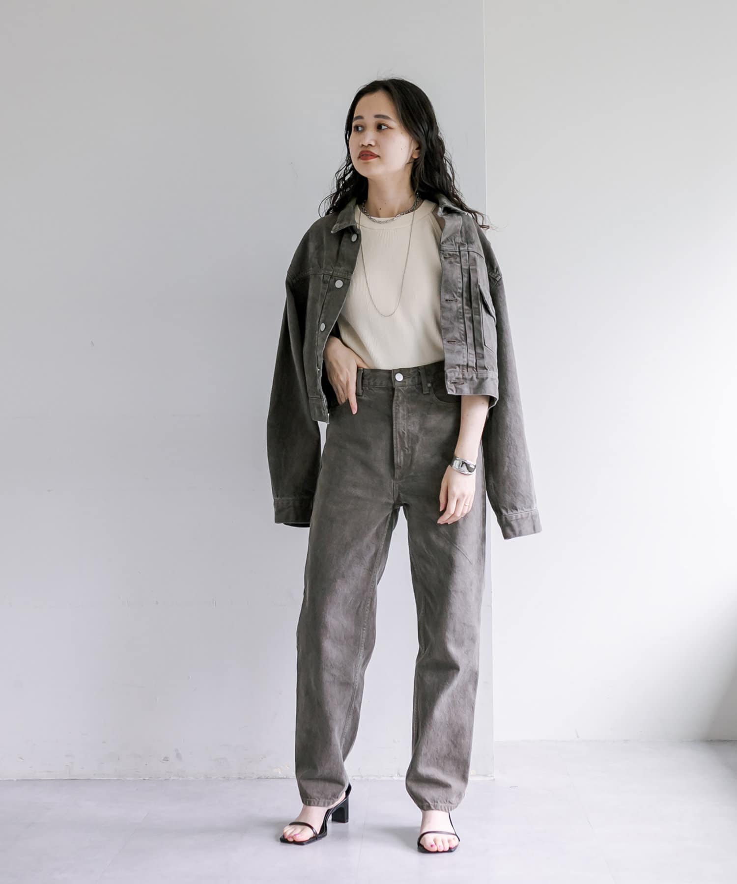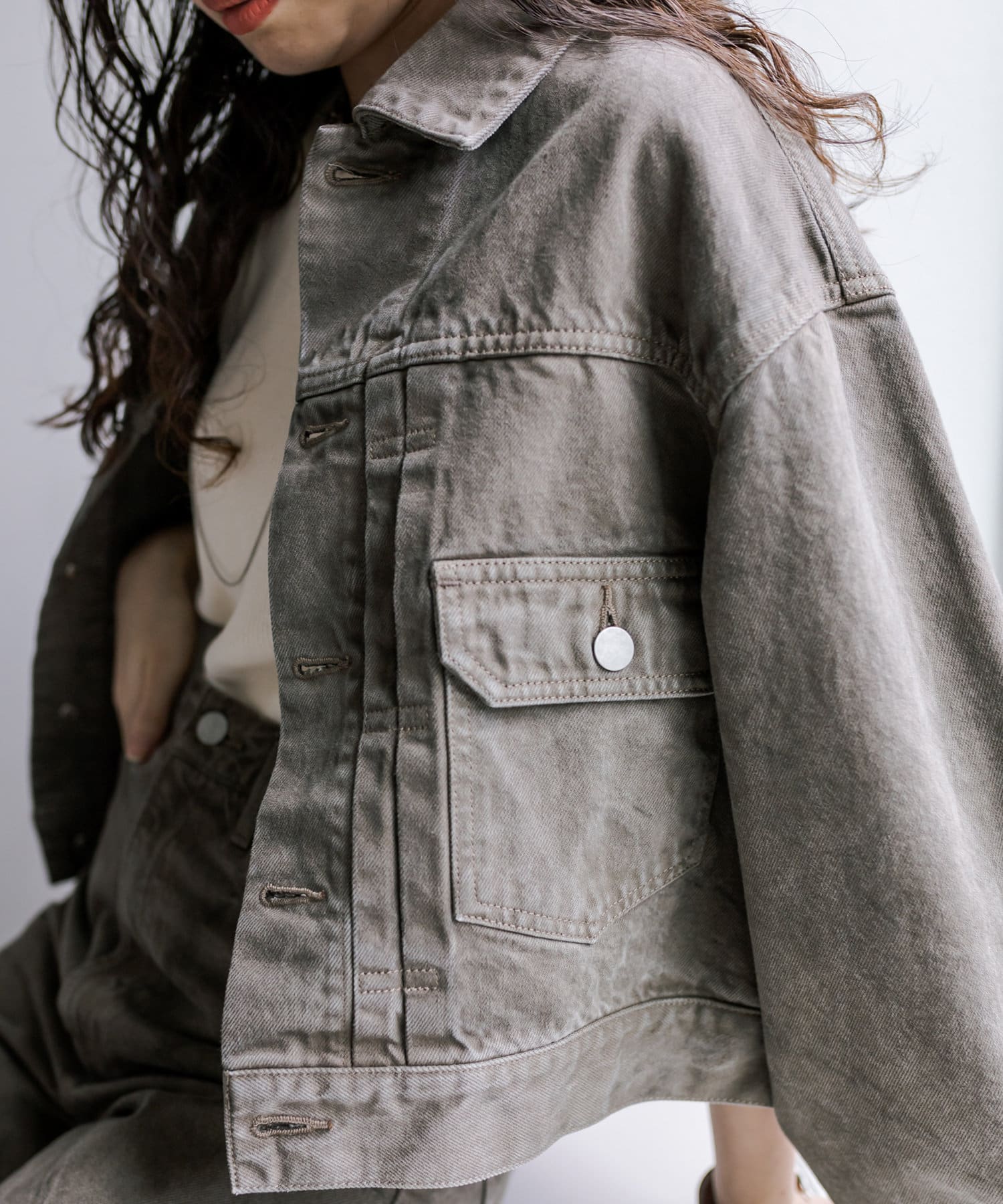 ショート丈、身幅はたっぷりワイドにすることで、着用するとややまるみのあるシルエットが特徴です。