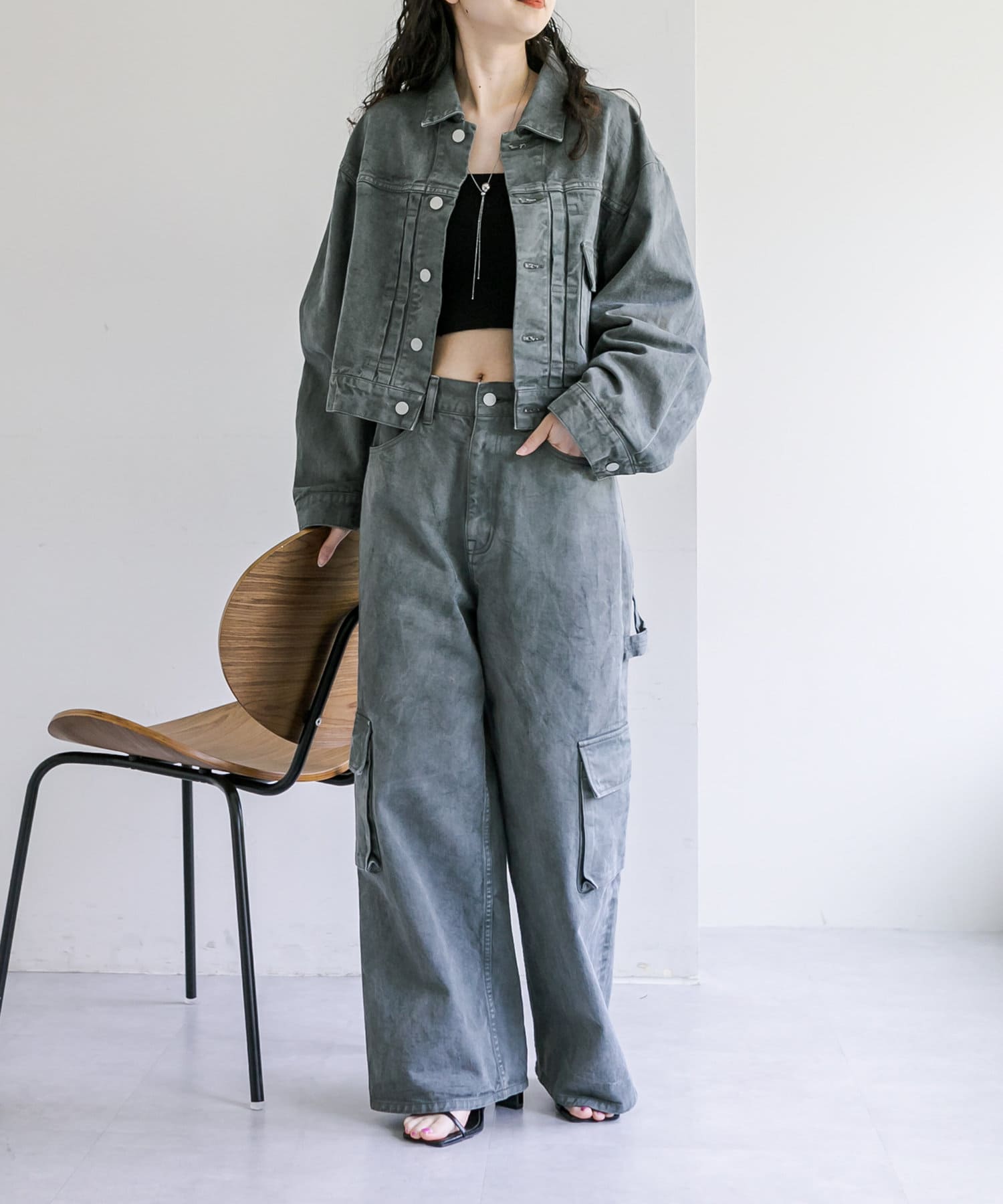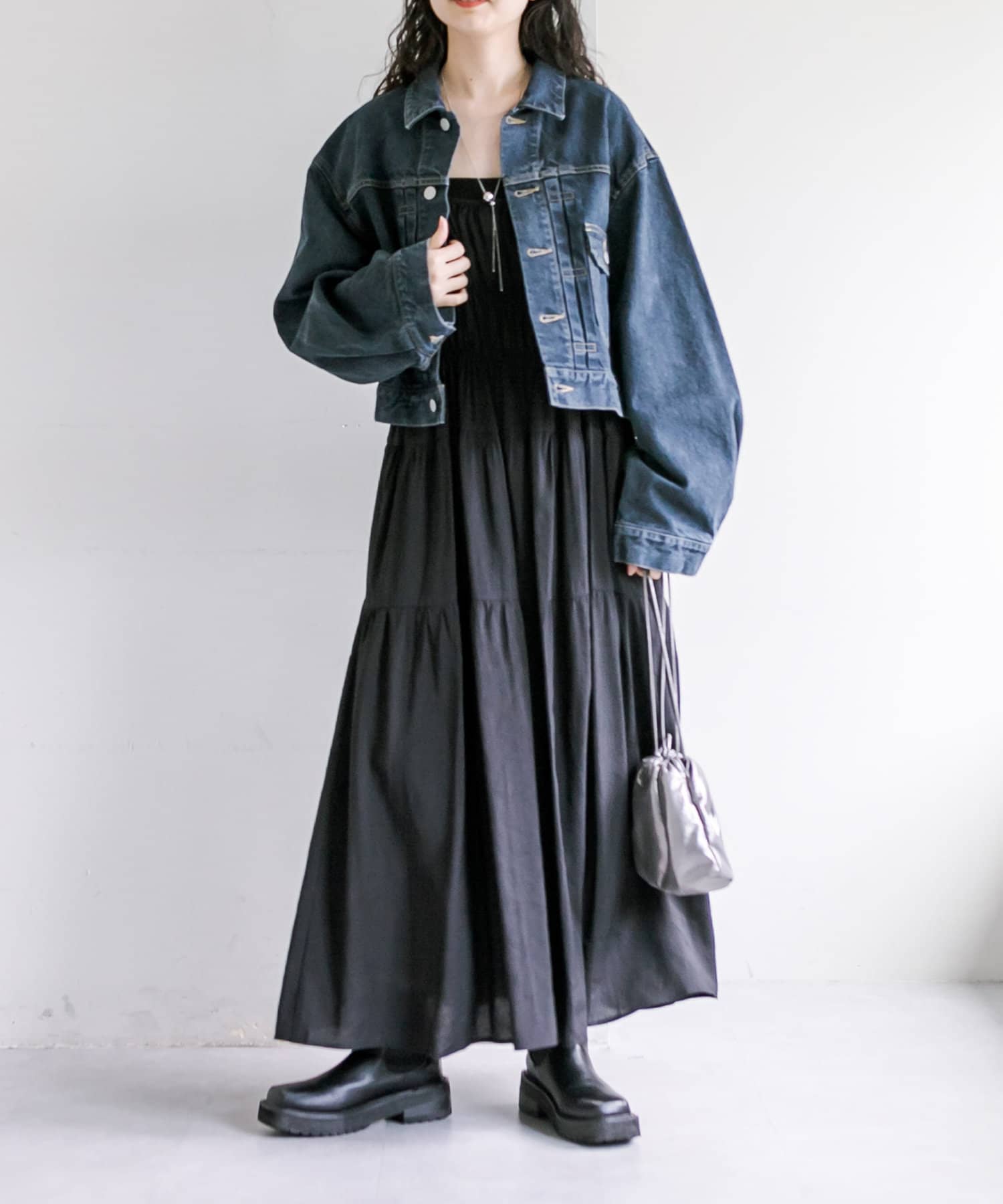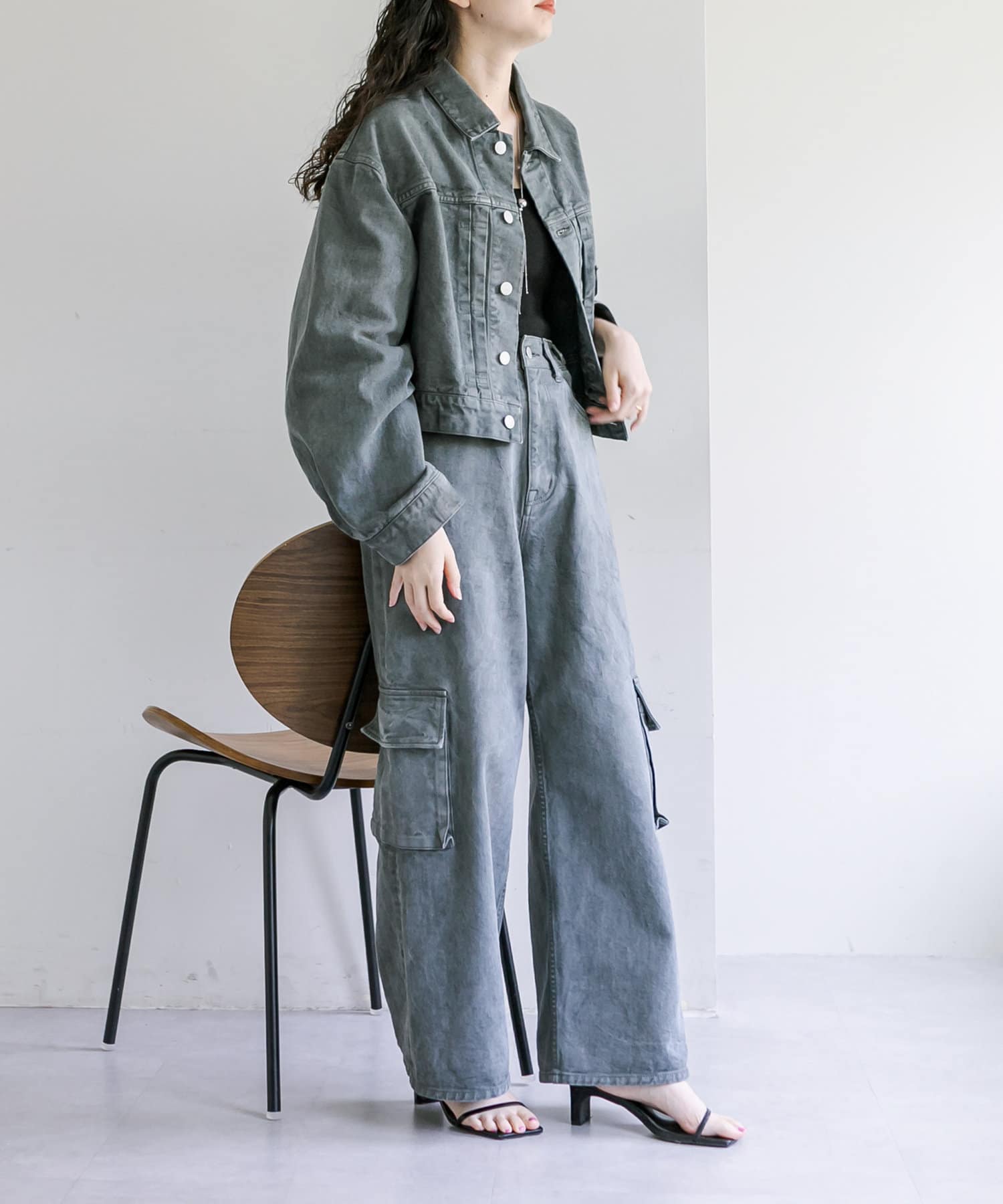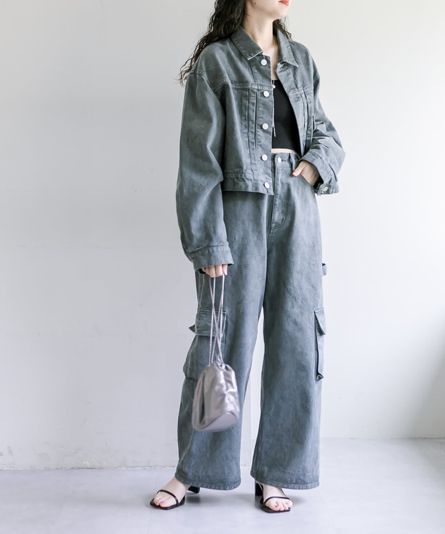 ショート丈、身幅はたっぷりワイドにすることで、着用するとややまるみのあるシルエットが特徴です。