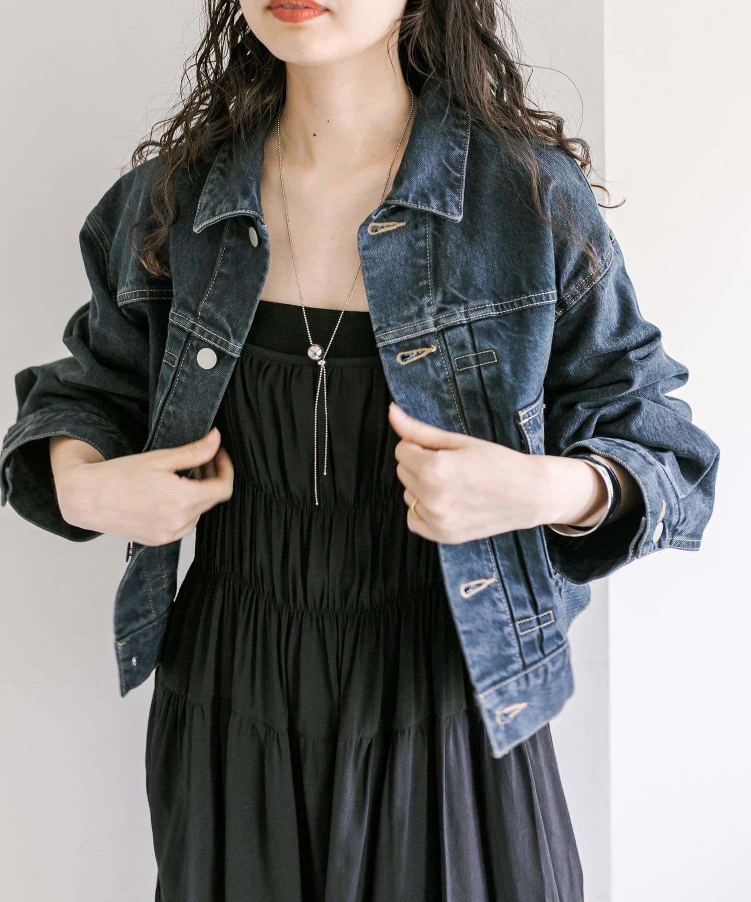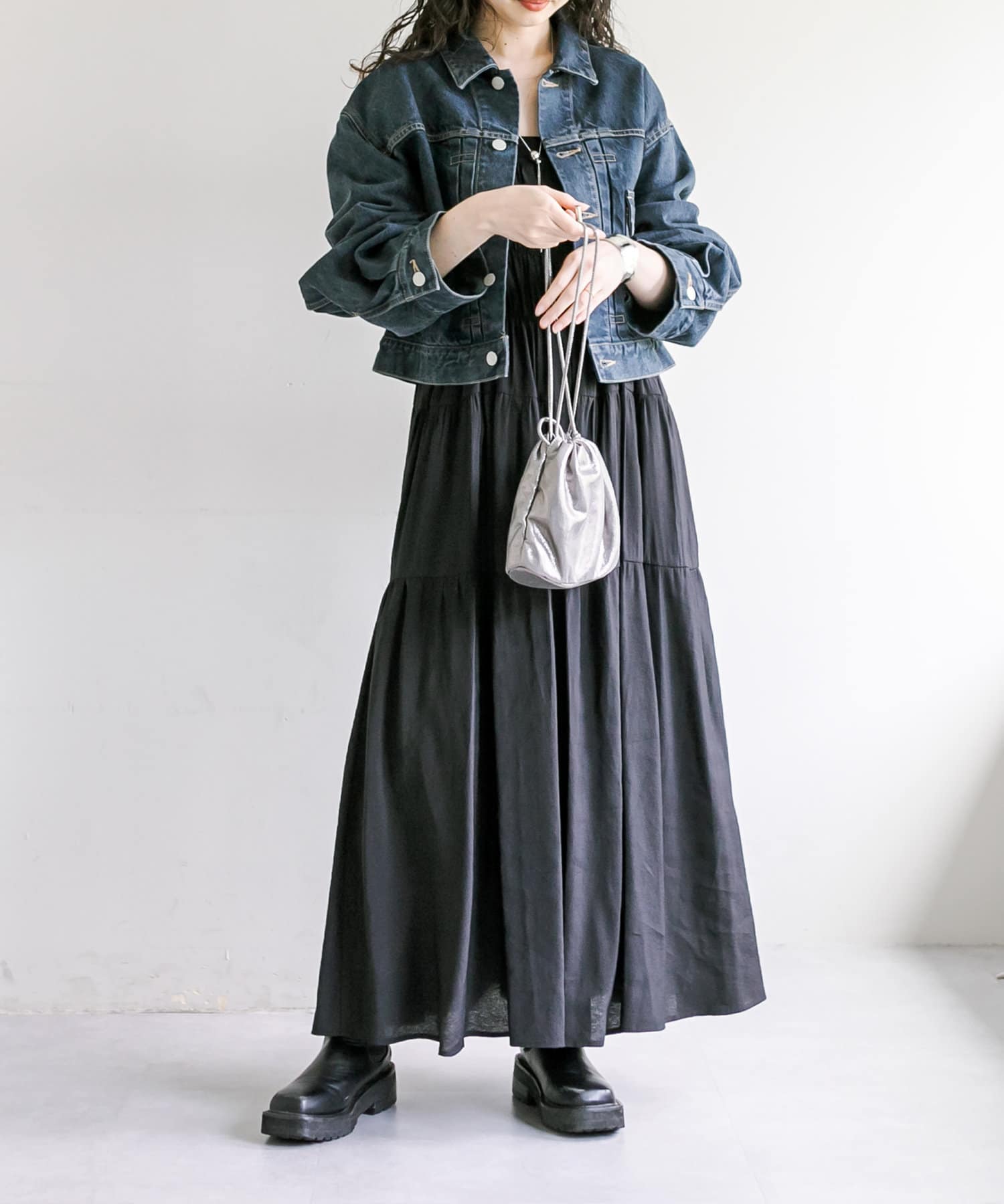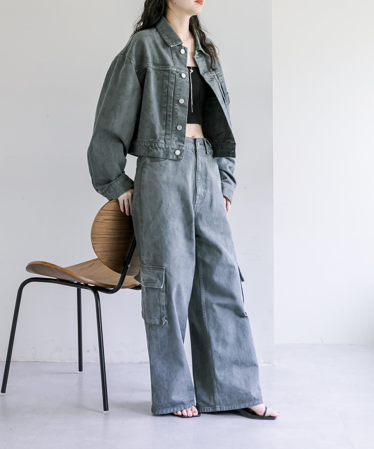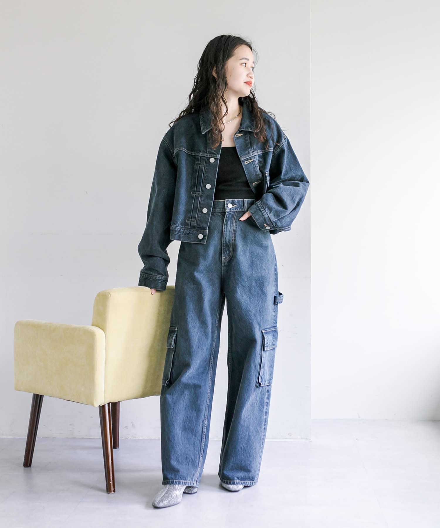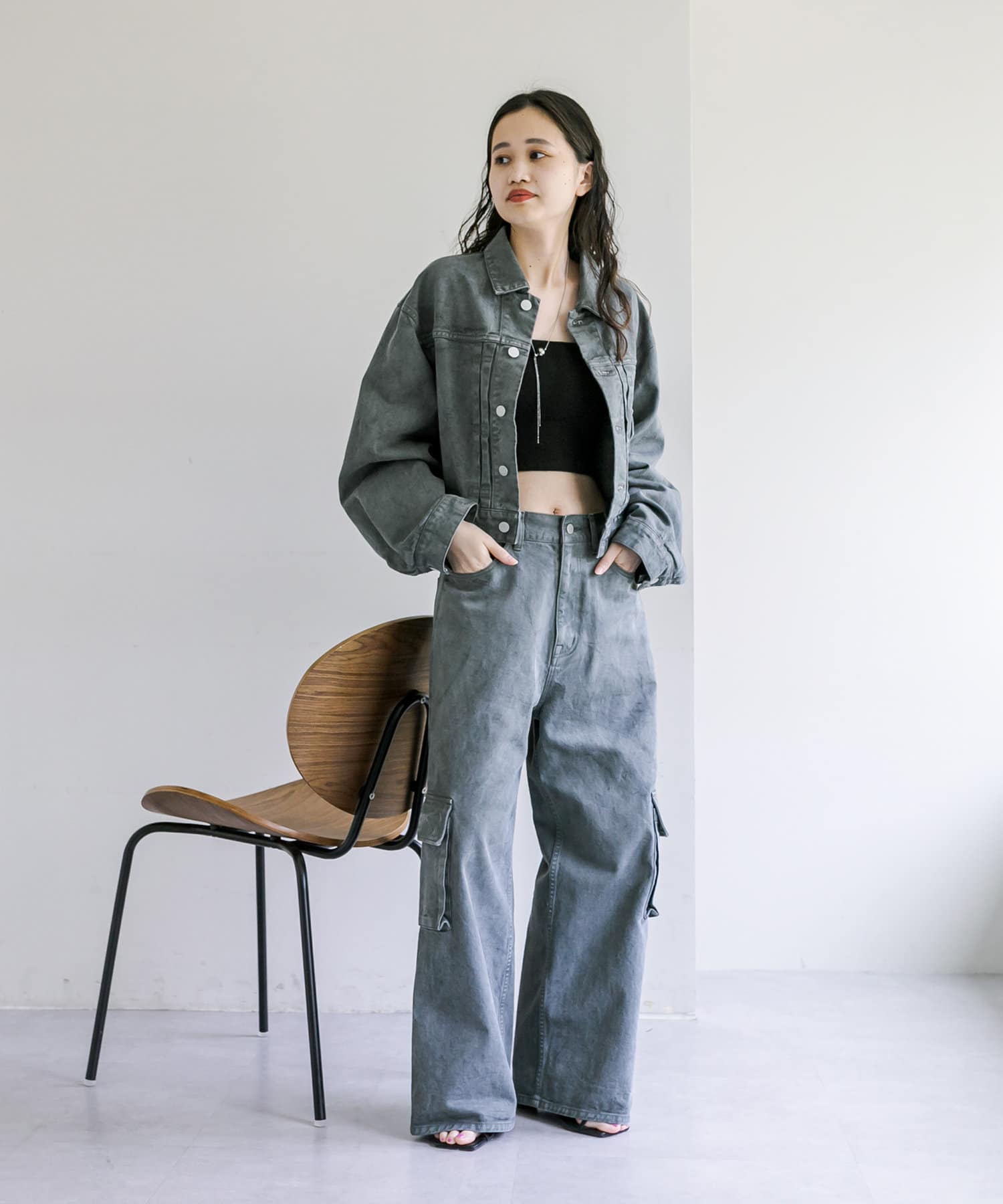 ショート丈、身幅はたっぷりワイドにすることで、着用するとややまるみのあるシルエットが特徴です。