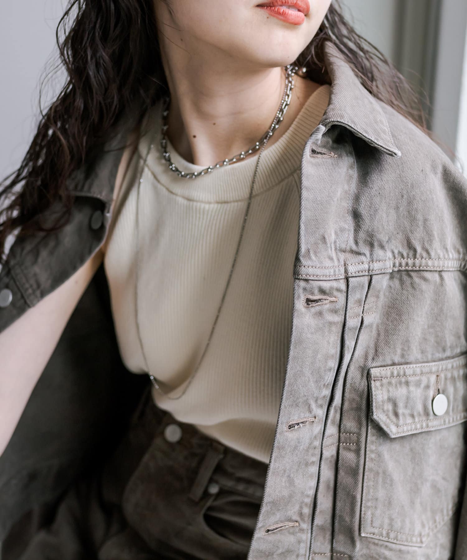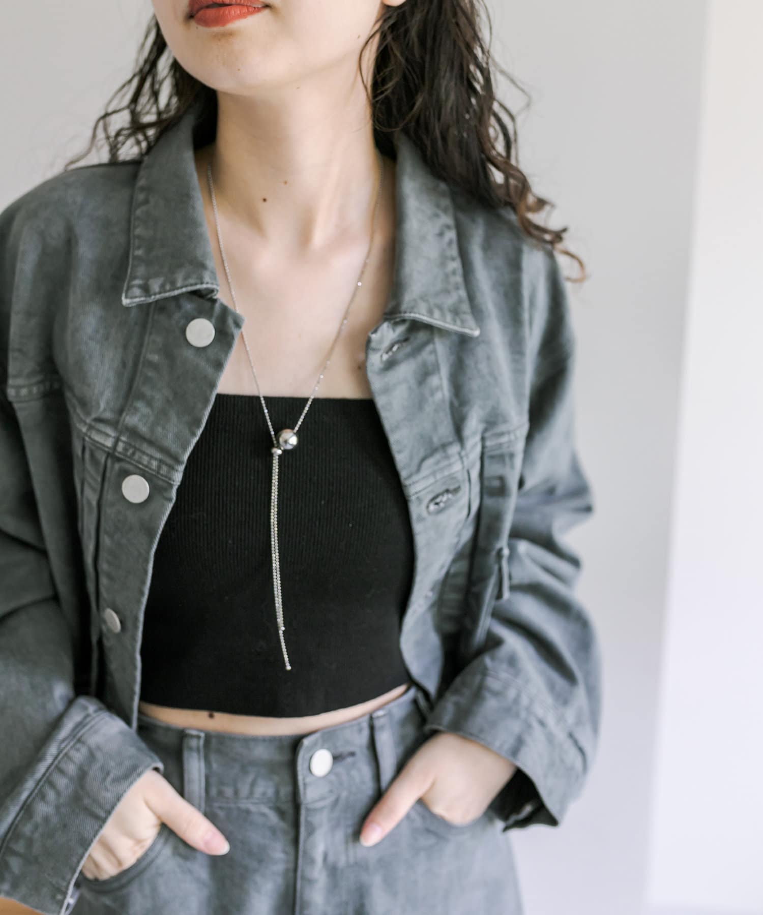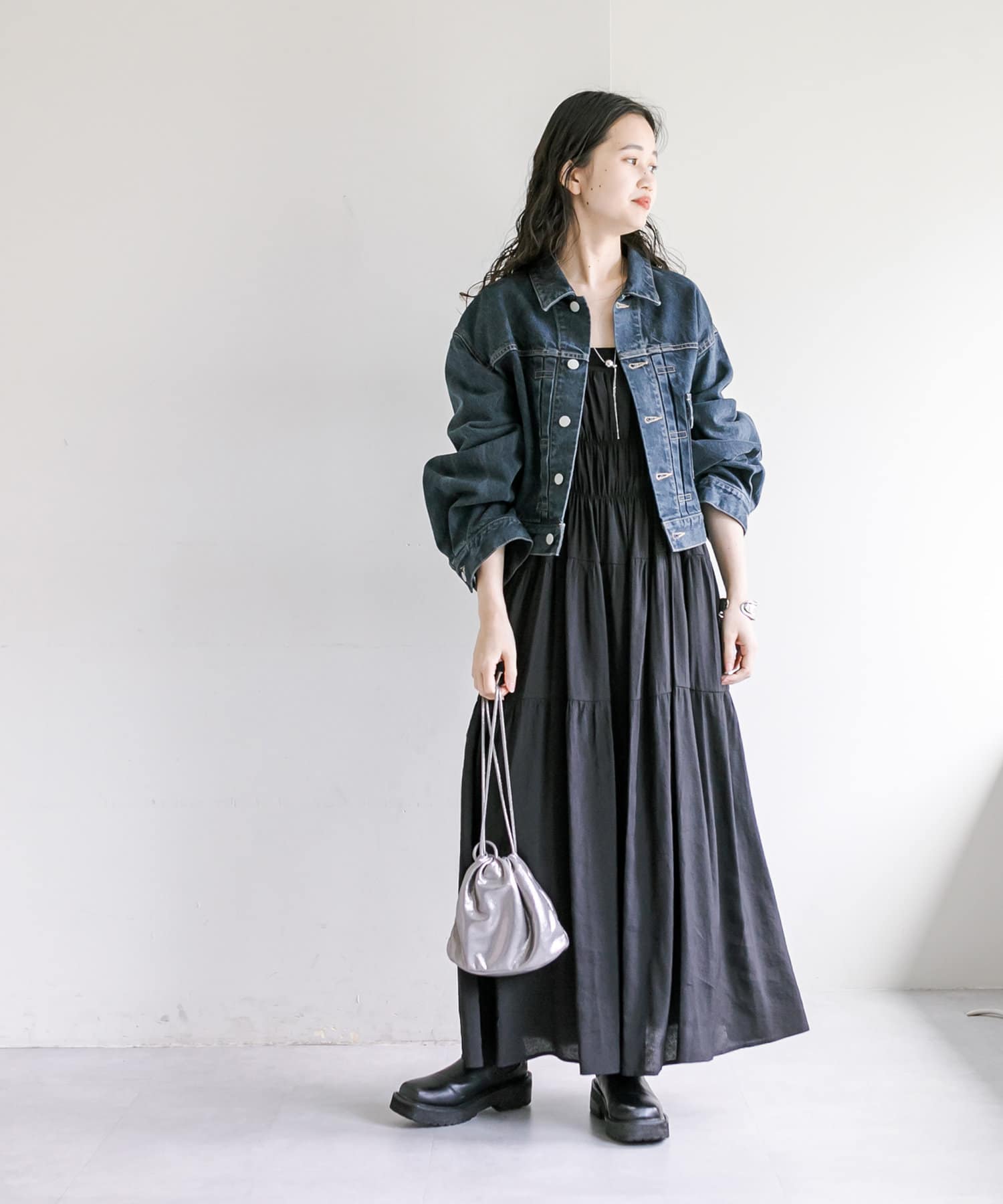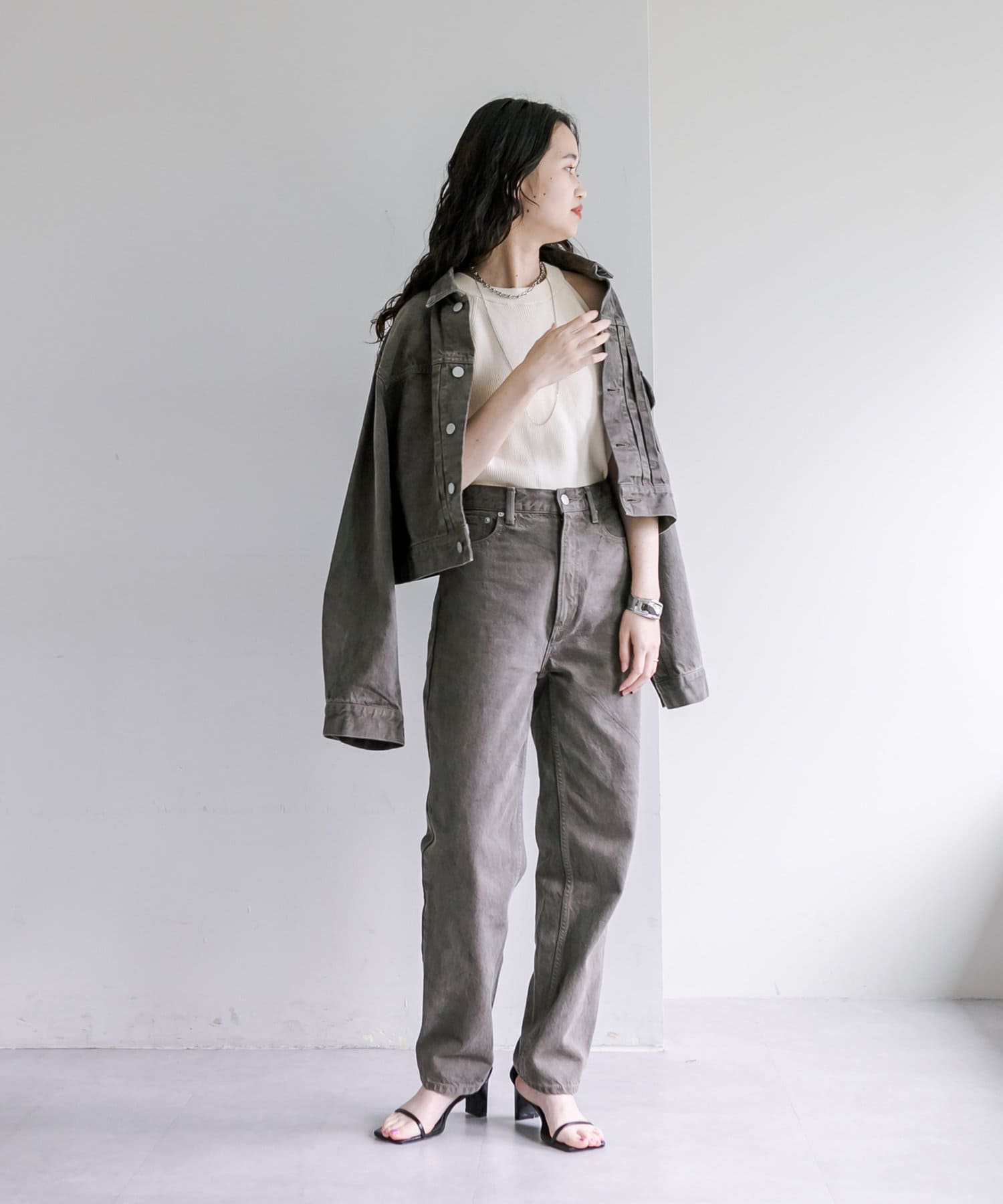 ショート丈、身幅はたっぷりワイドにすることで、着用するとややまるみのあるシルエットが特徴です。