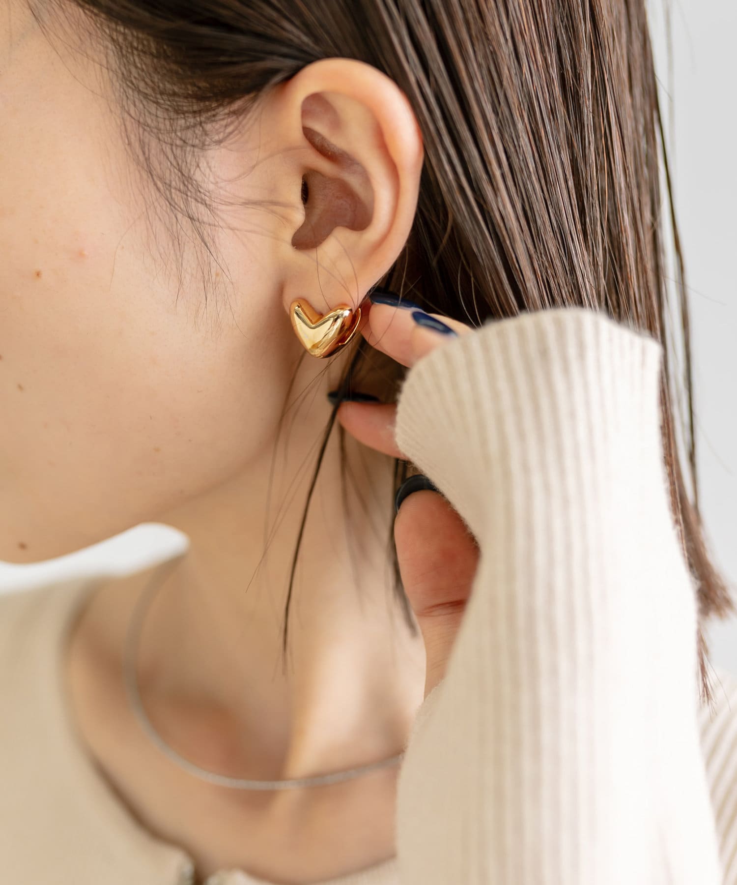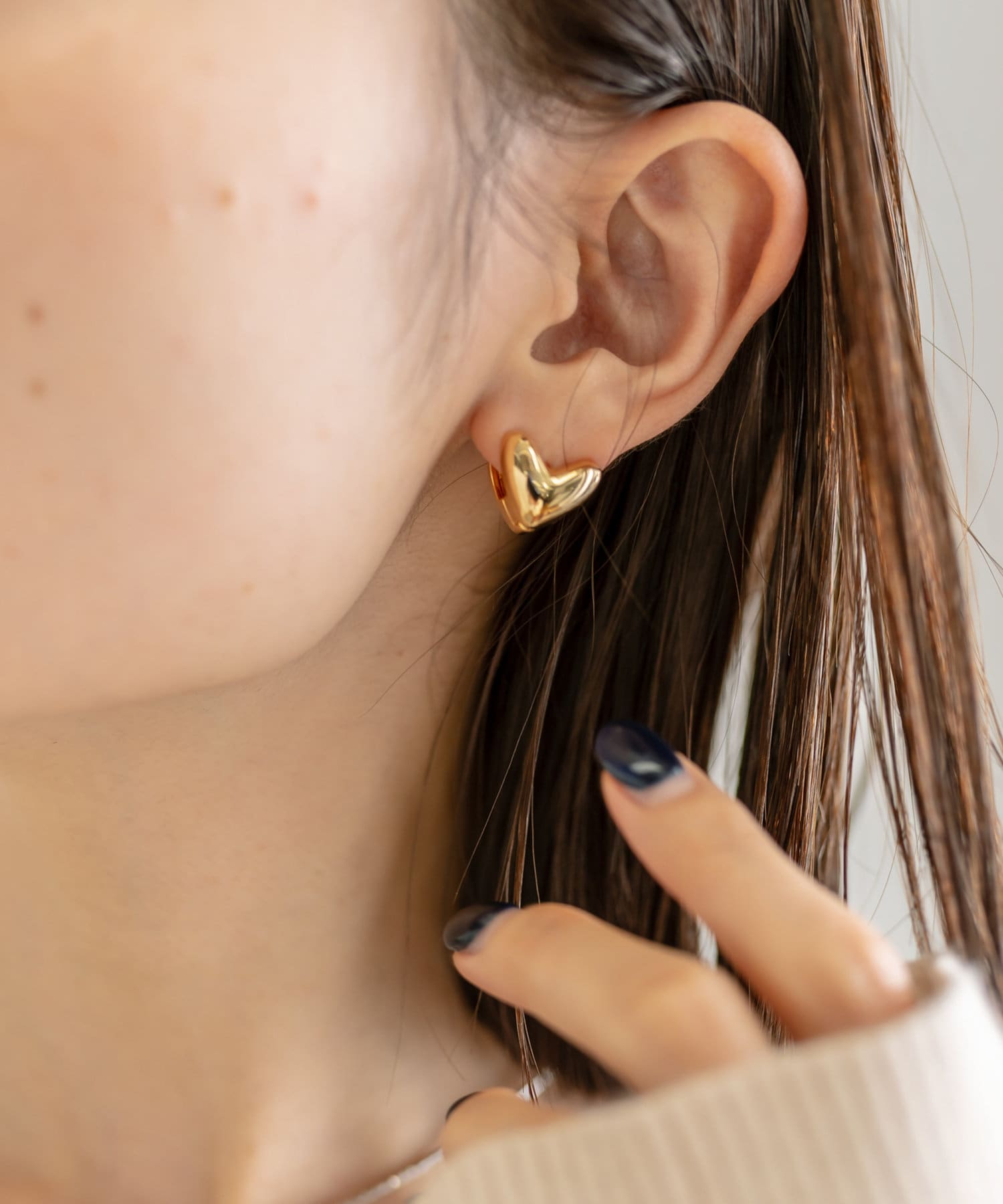 ・ぷっくりとしたボリューム感のあるトレンドハートピアス。