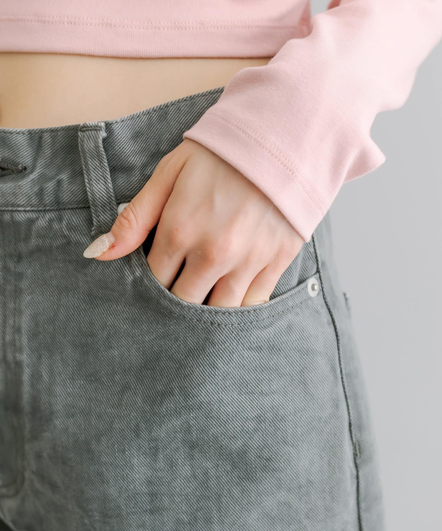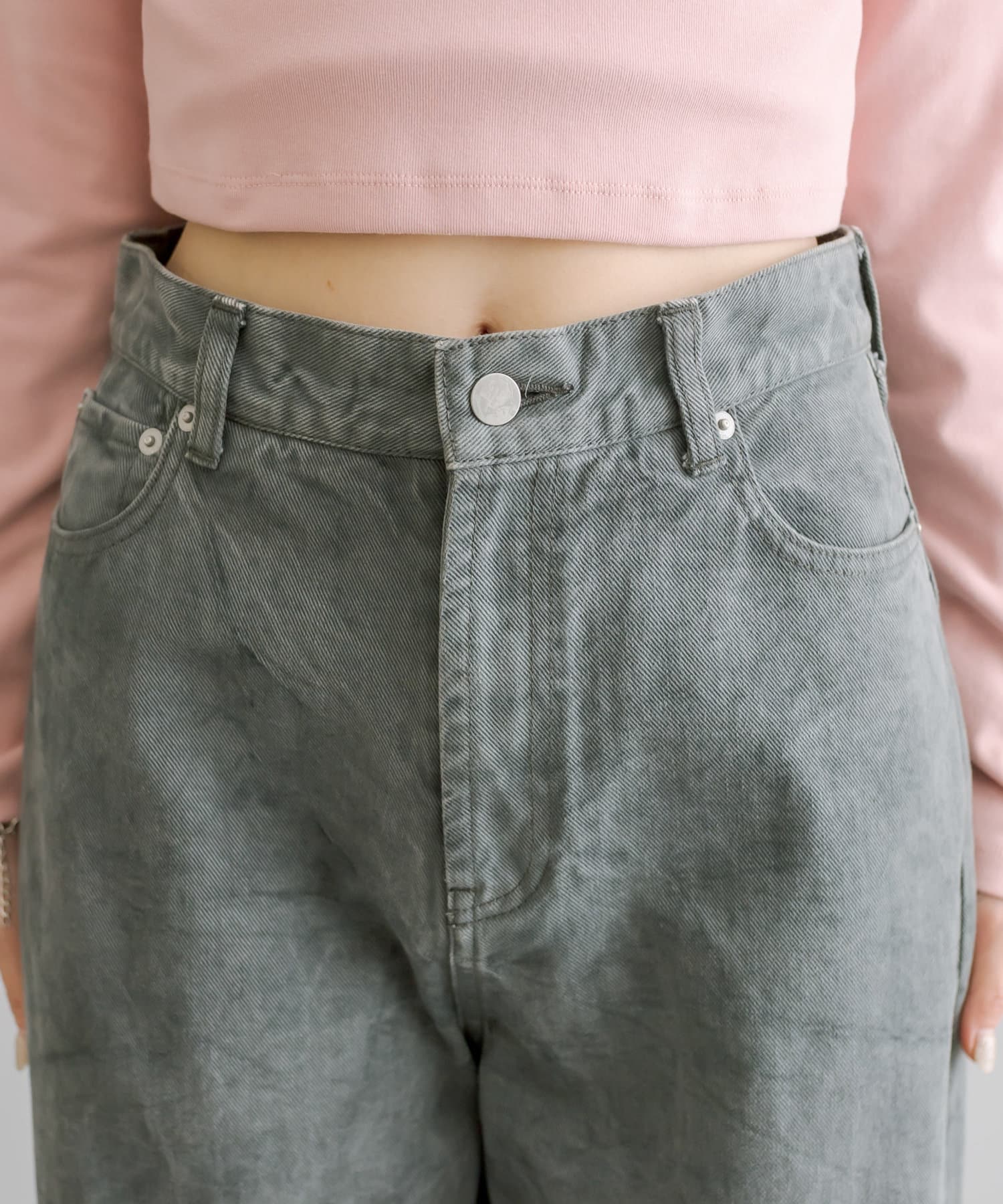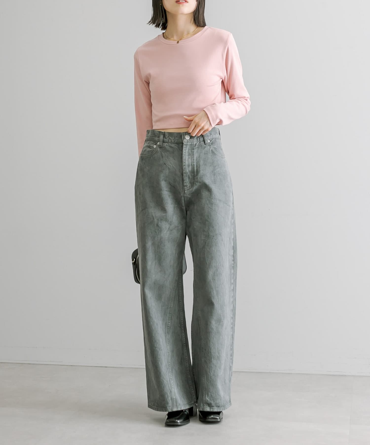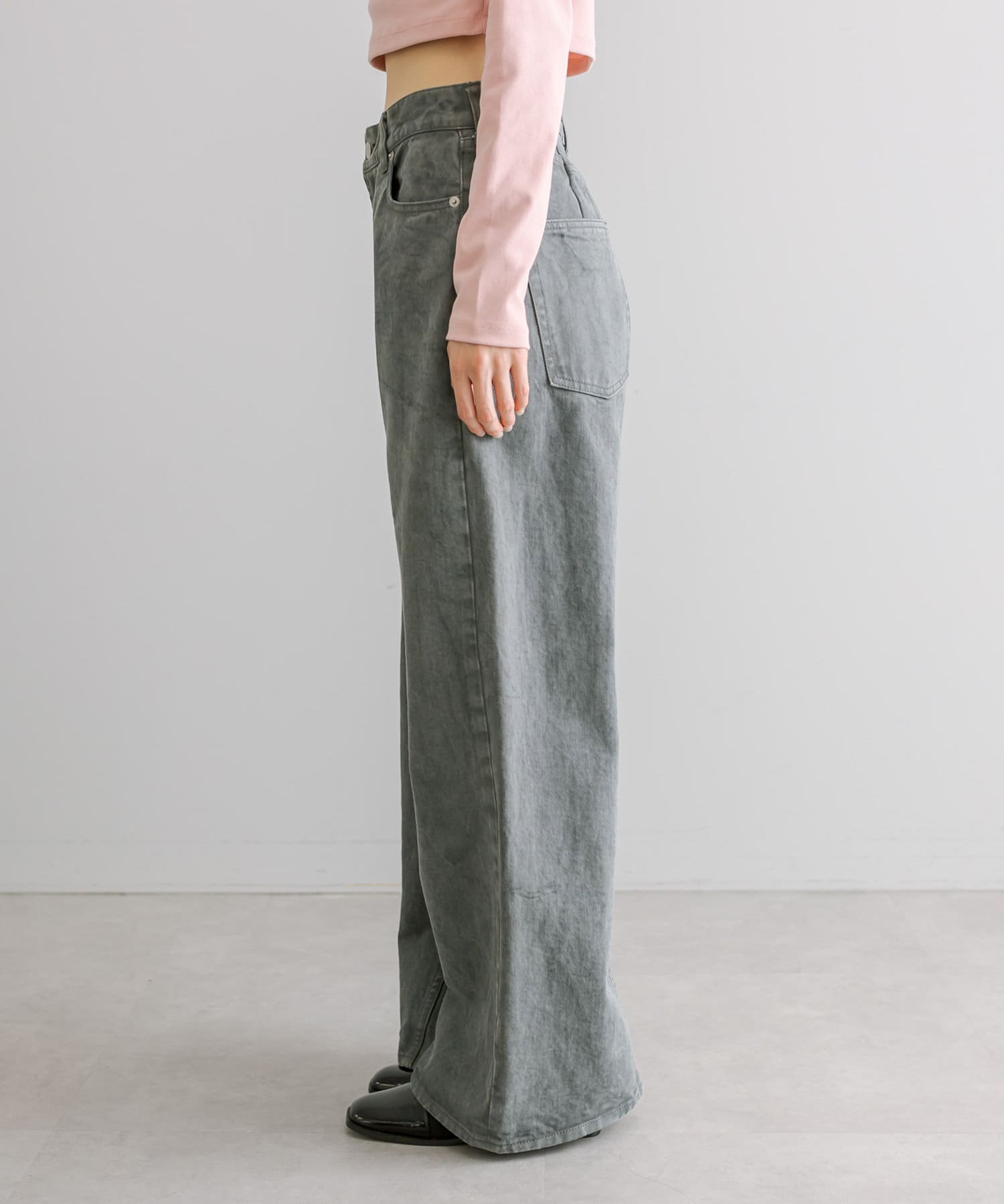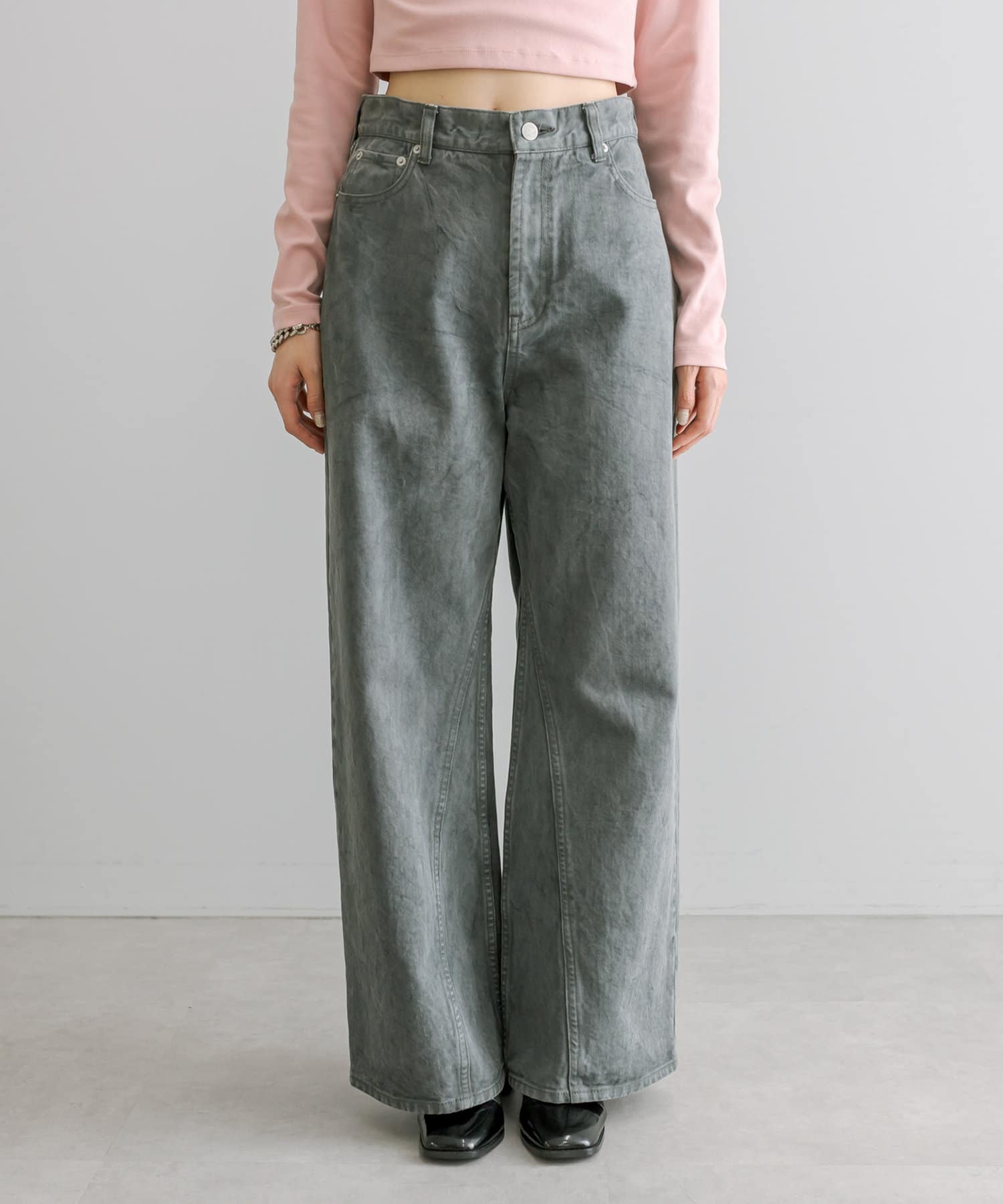 ・股下の内側から裾に向かって切替を施したワイドフレアシルエット。