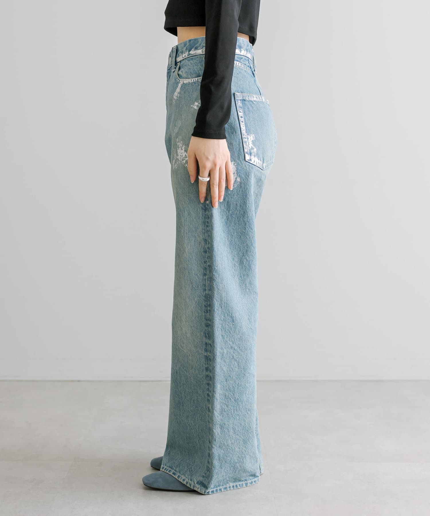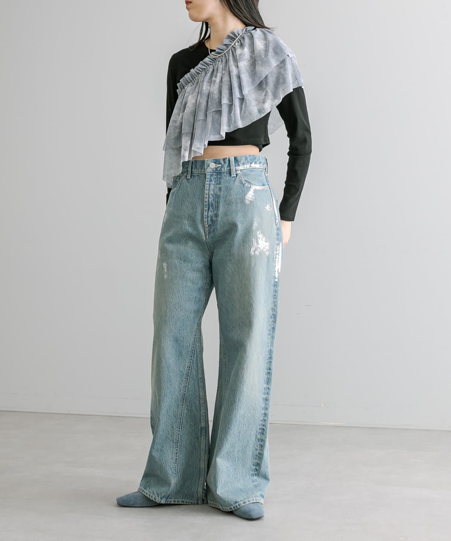 ・股下の内側から裾に向かって切替を施したワイドフレアシルエット。