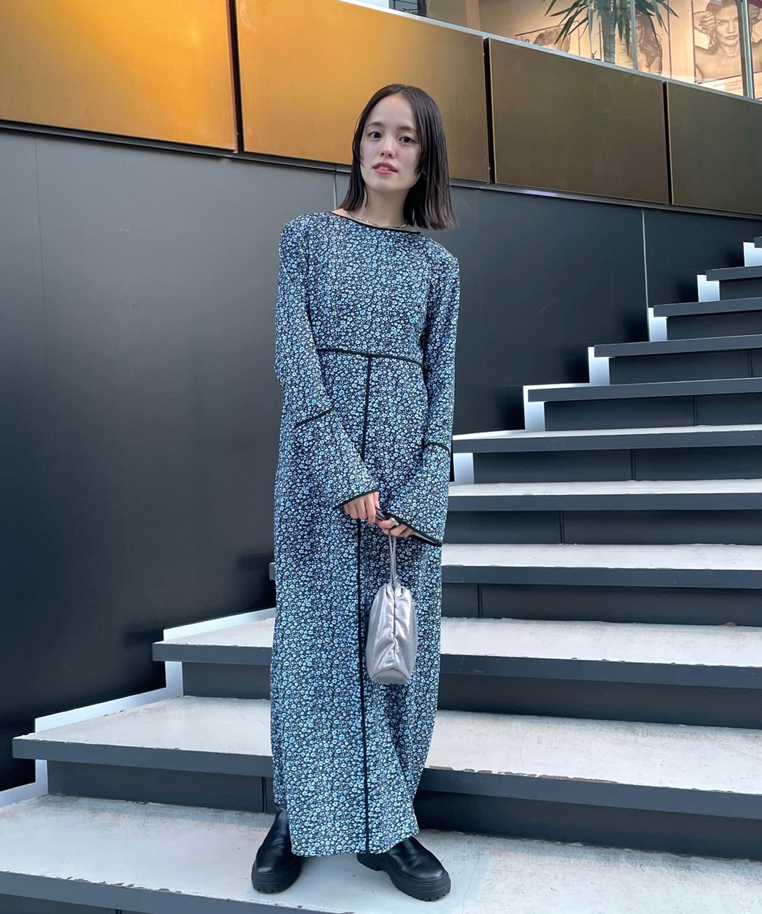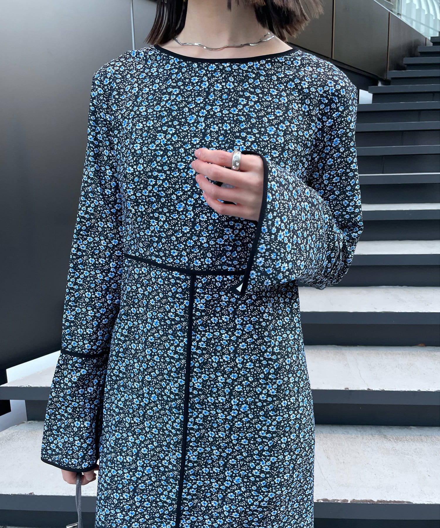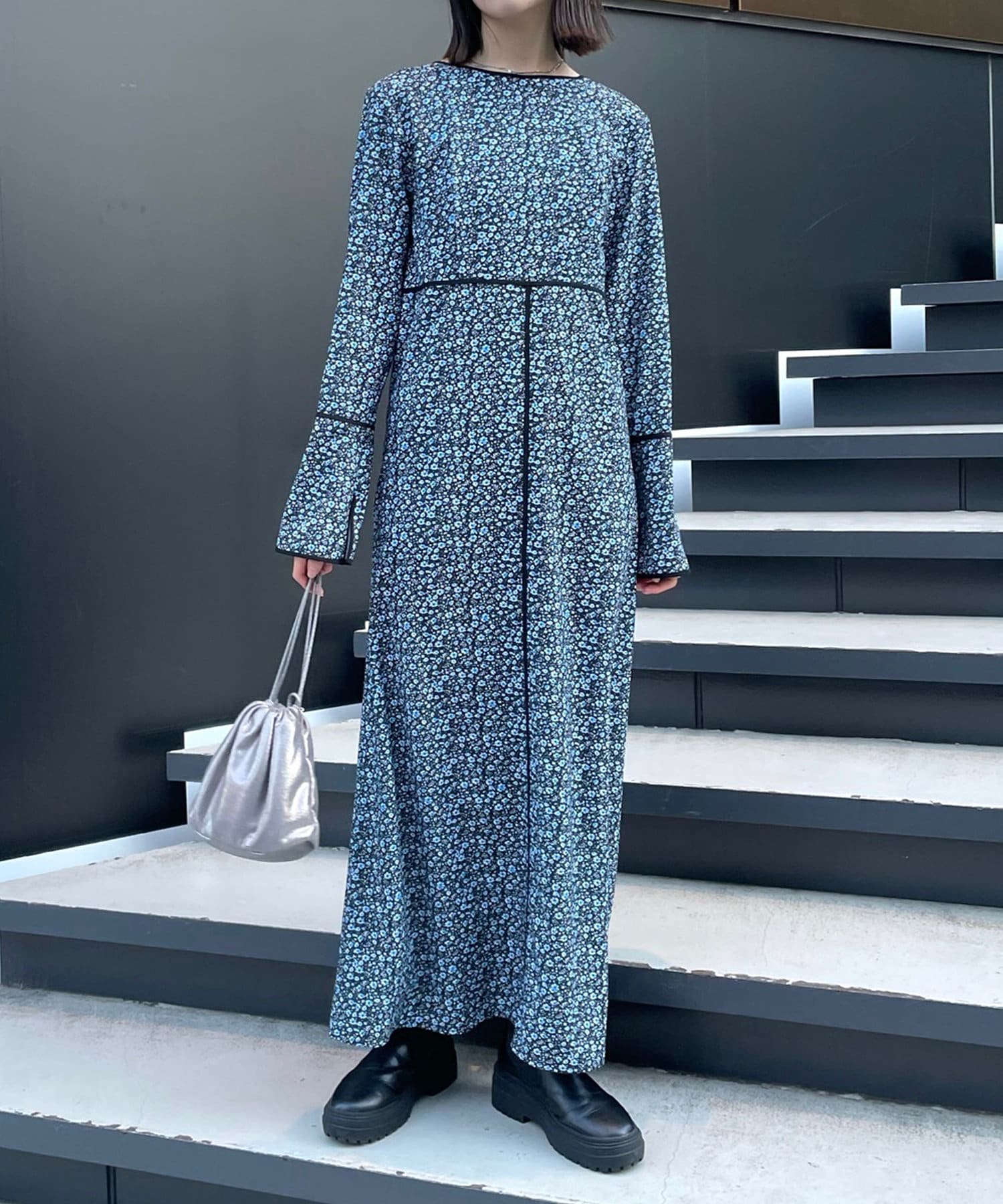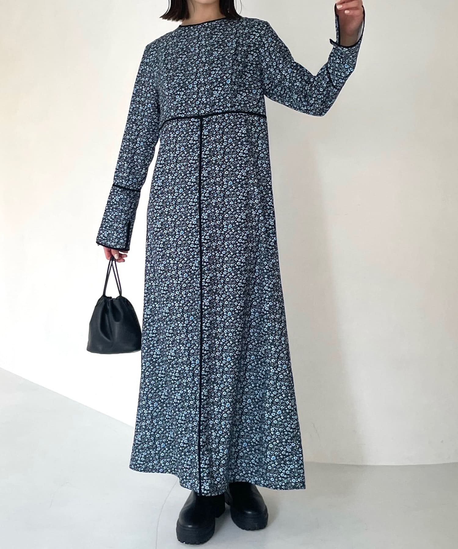 ・小花柄が女性らしい印象ながらパイピングデザインでメリハリのある印象に見せてくれます!
