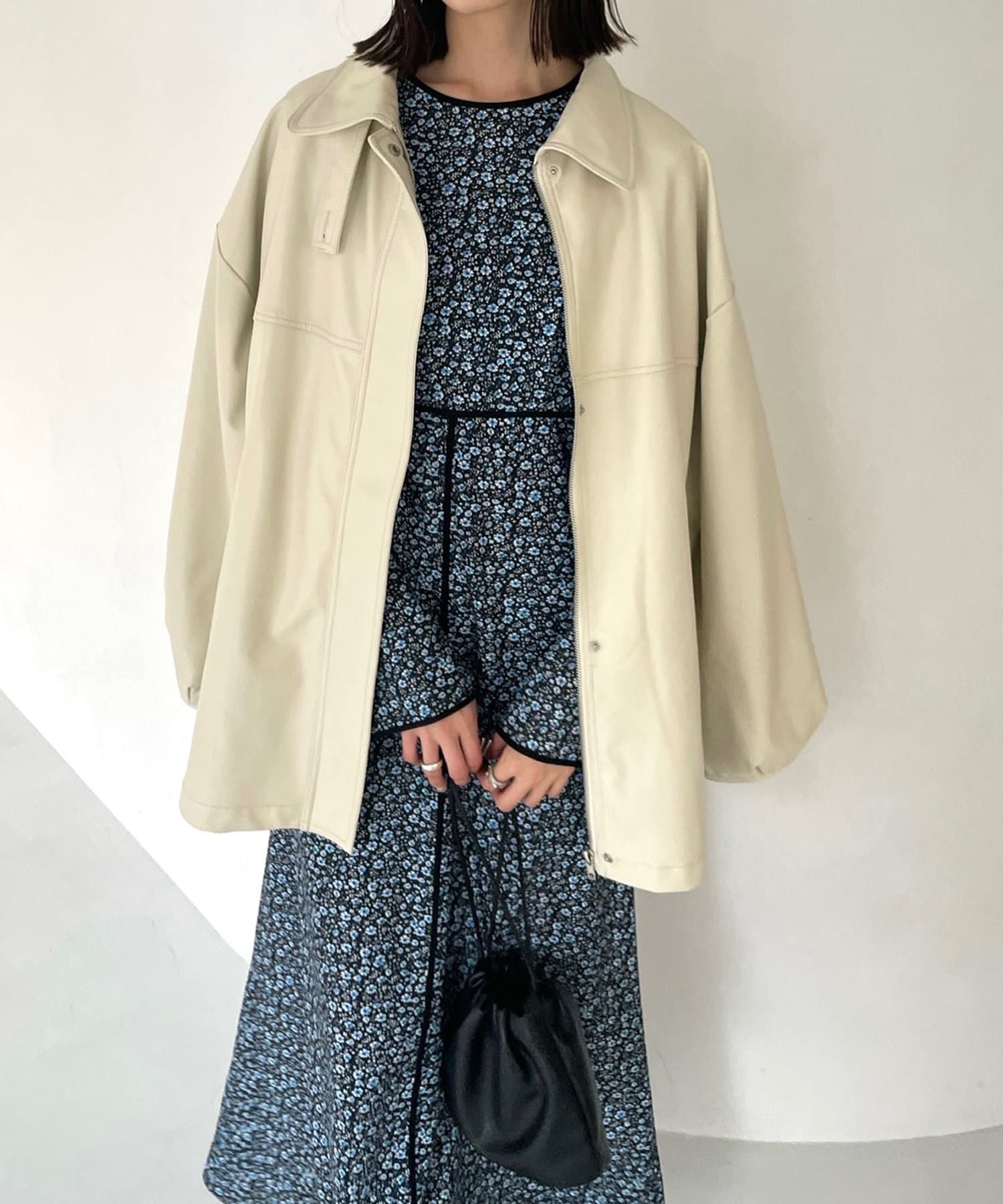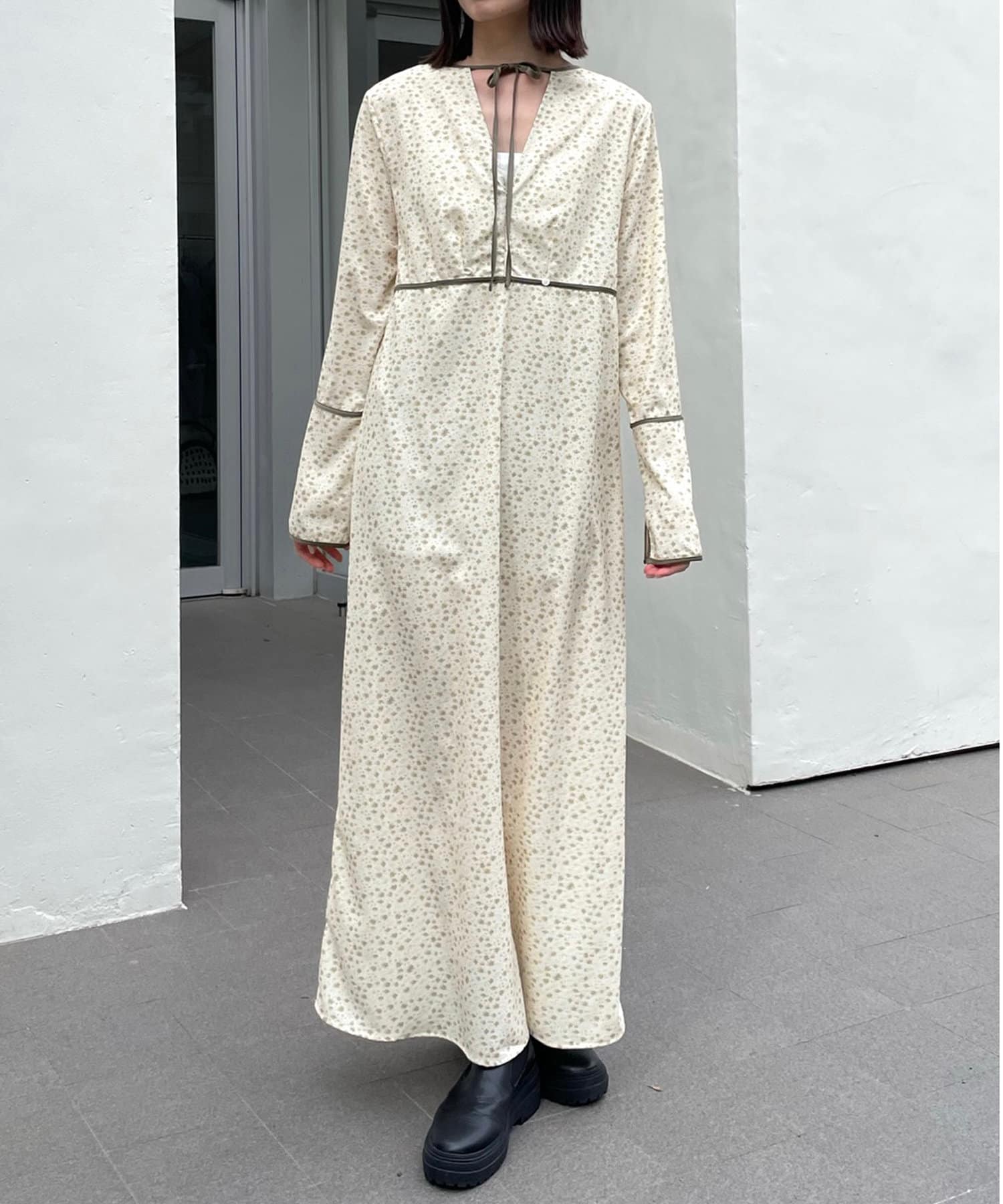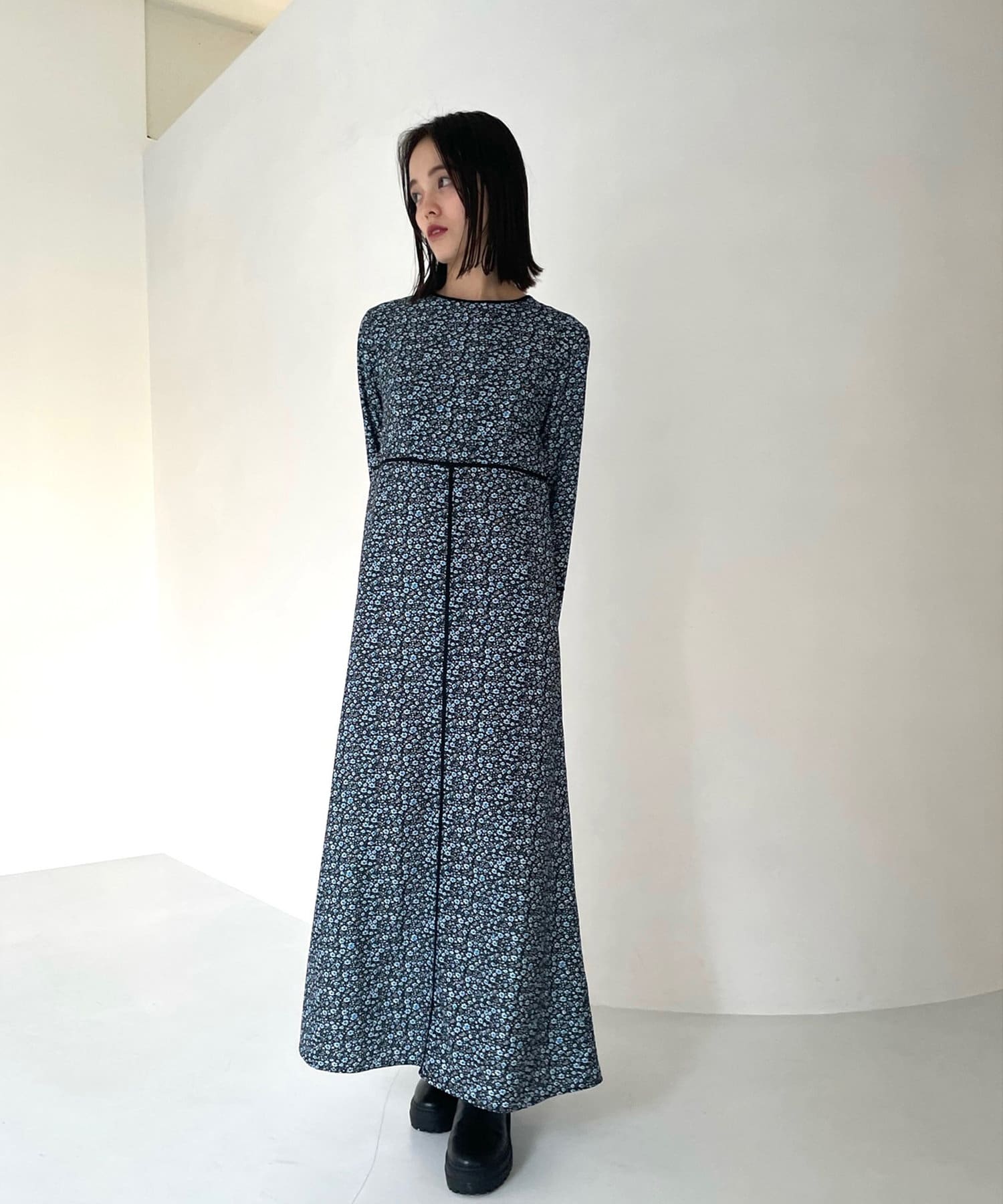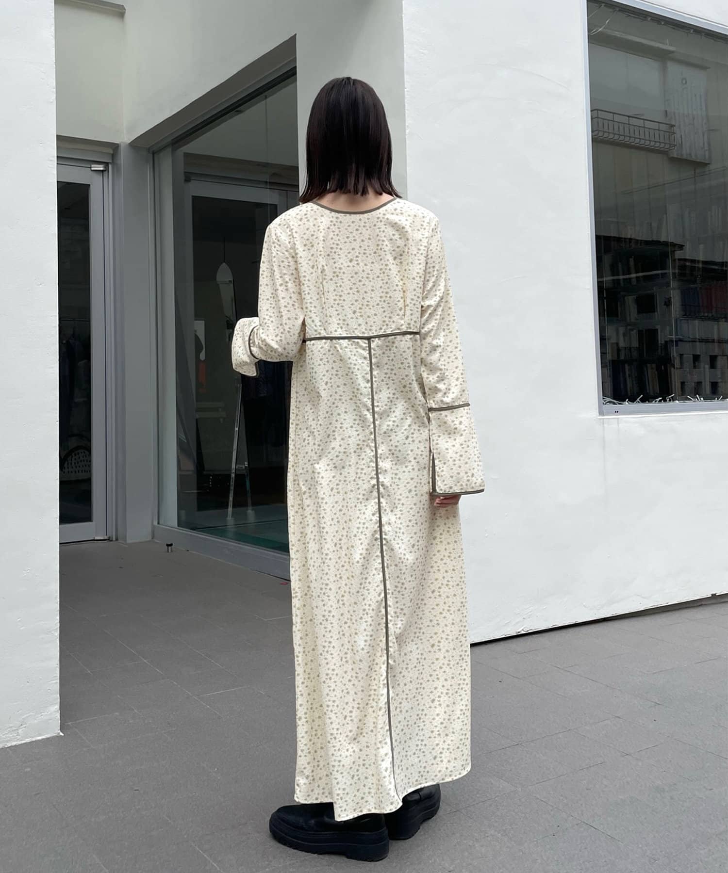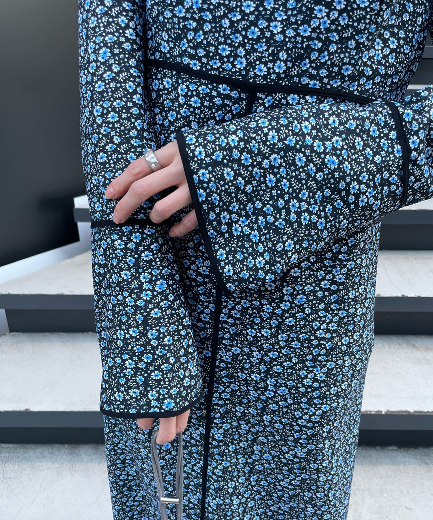 ・小花柄が女性らしい印象ながらパイピングデザインでメリハリのある印象に見せてくれます!