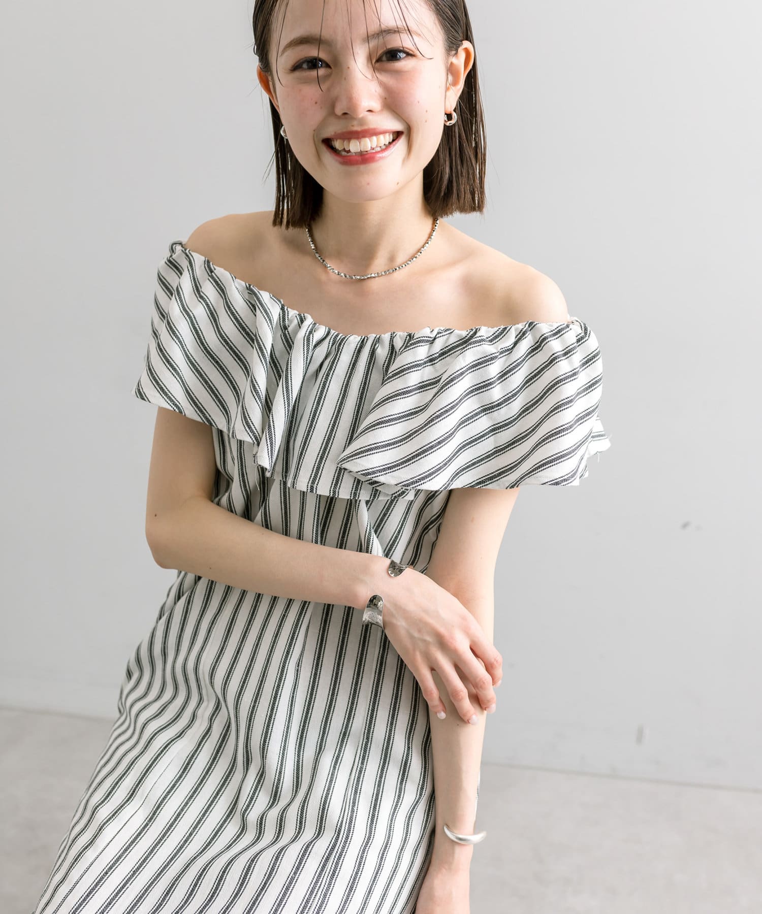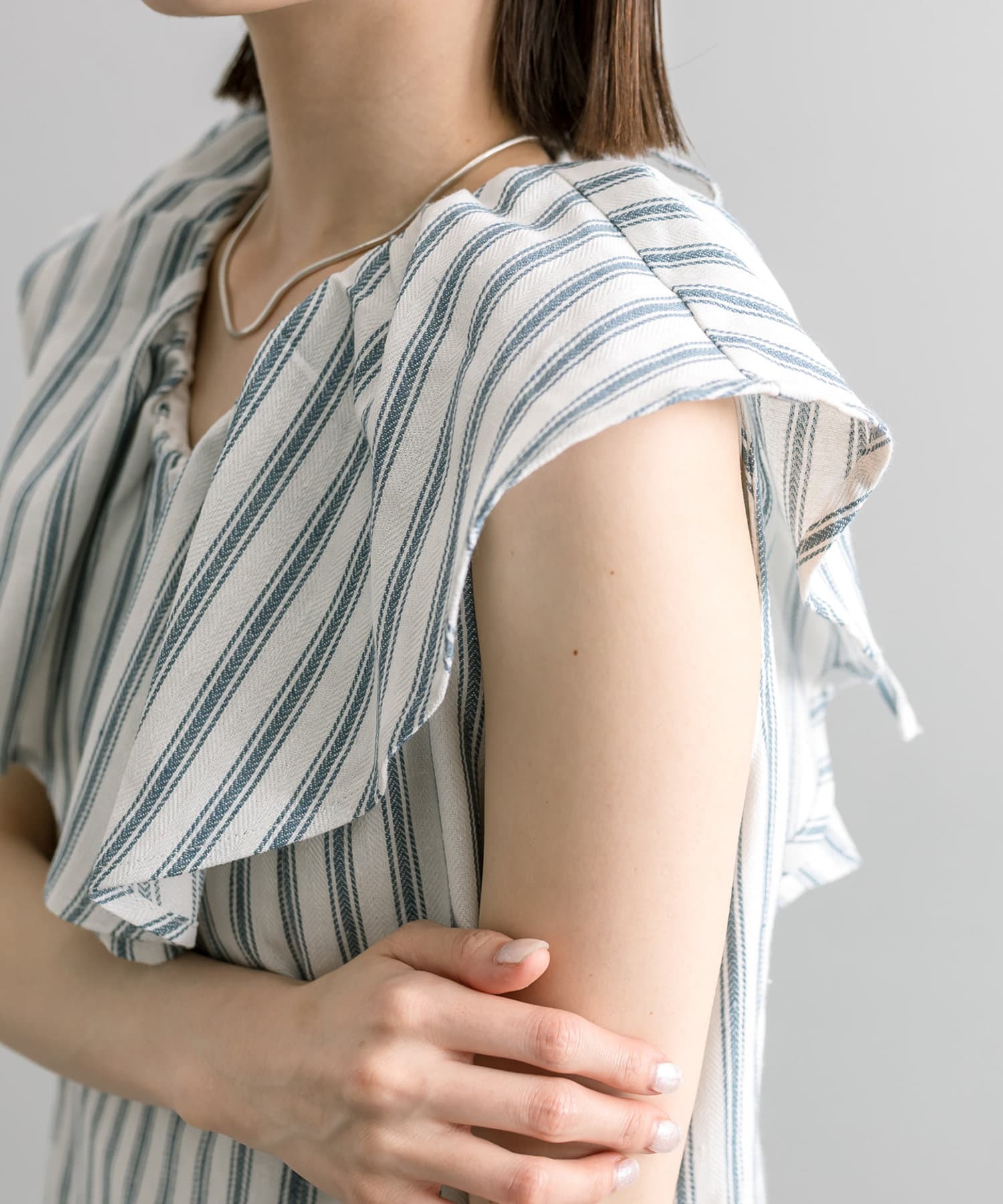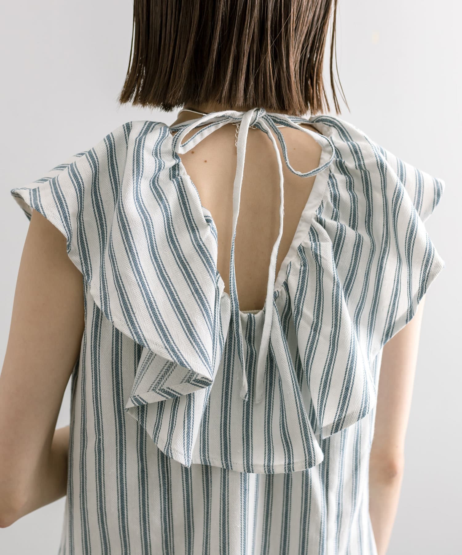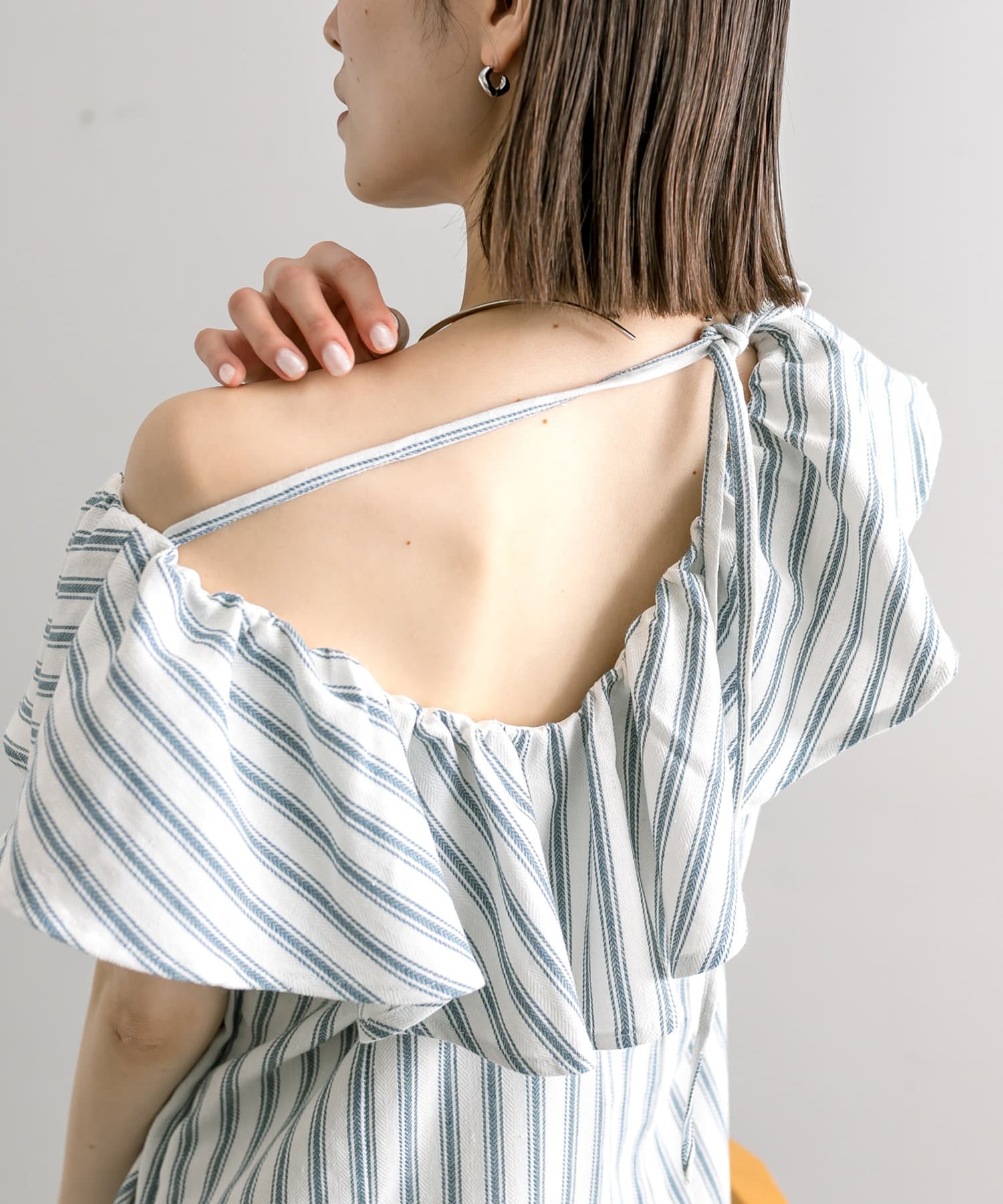 爽やかなストライプデザイン×フリルが華やかに決まる一枚。