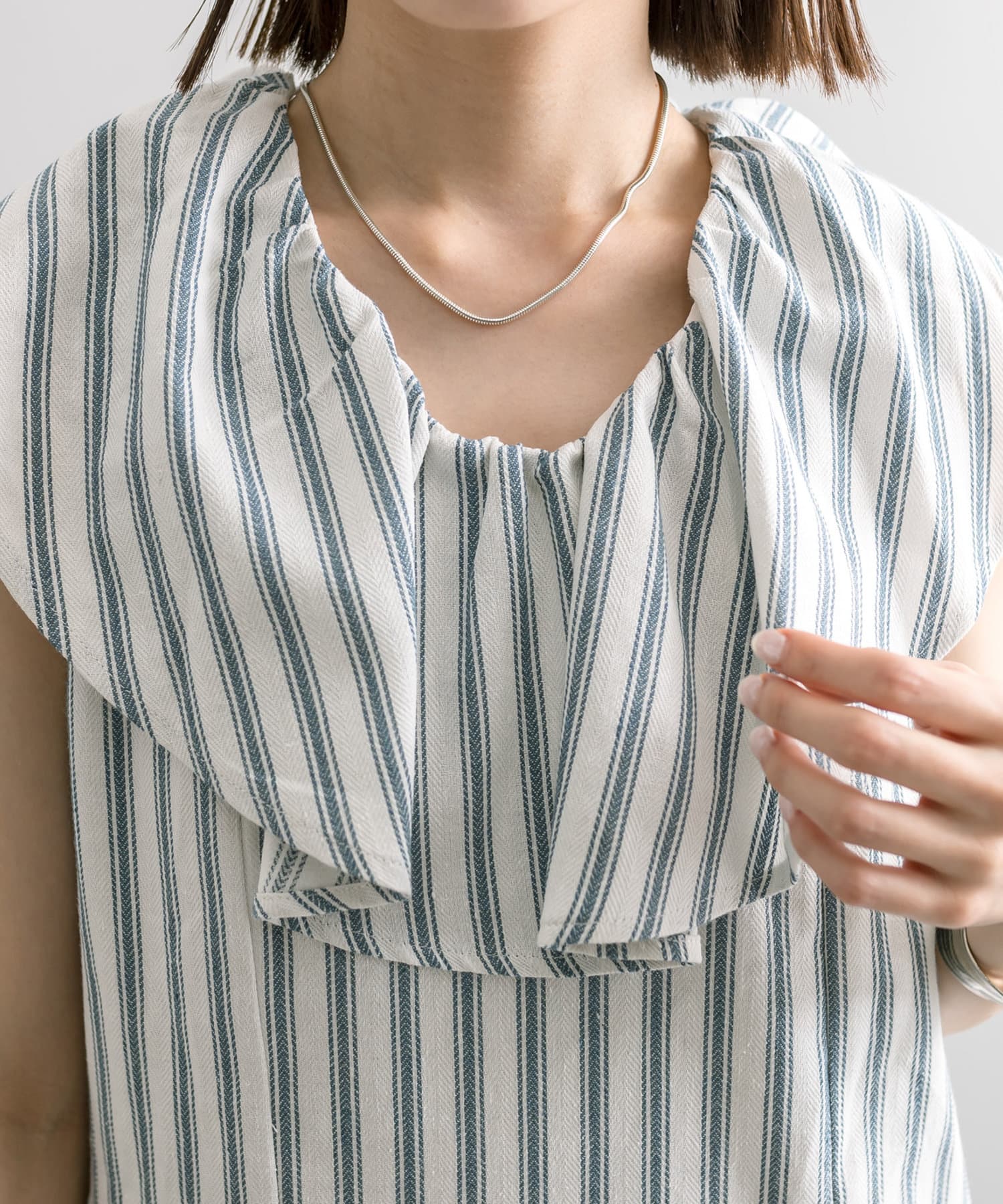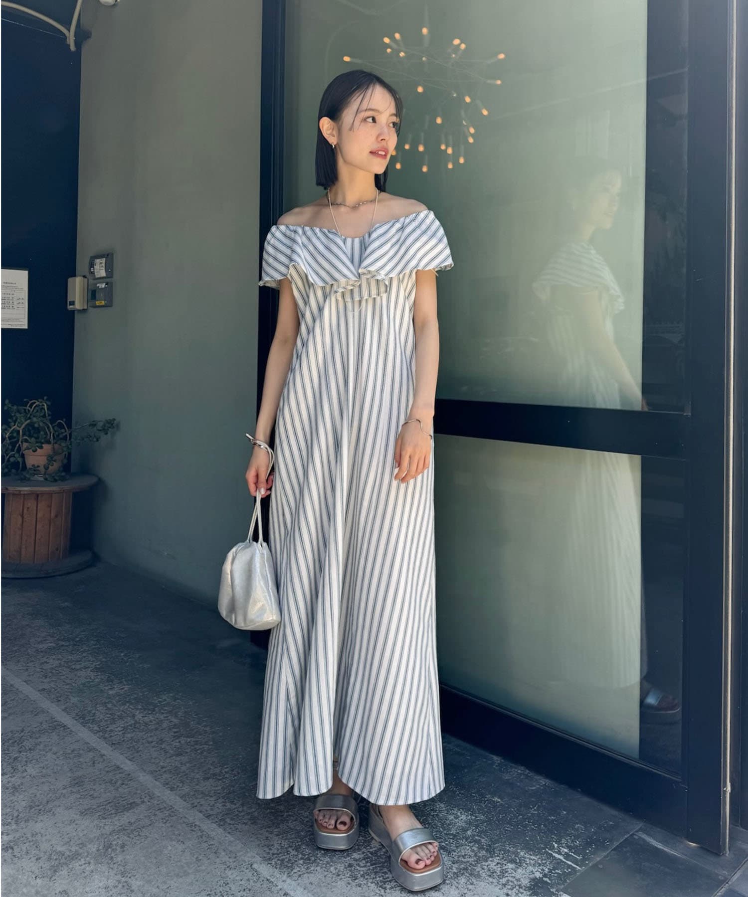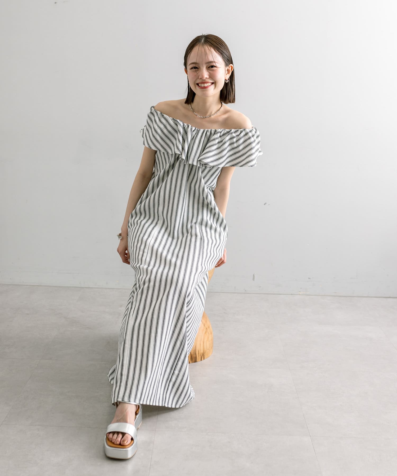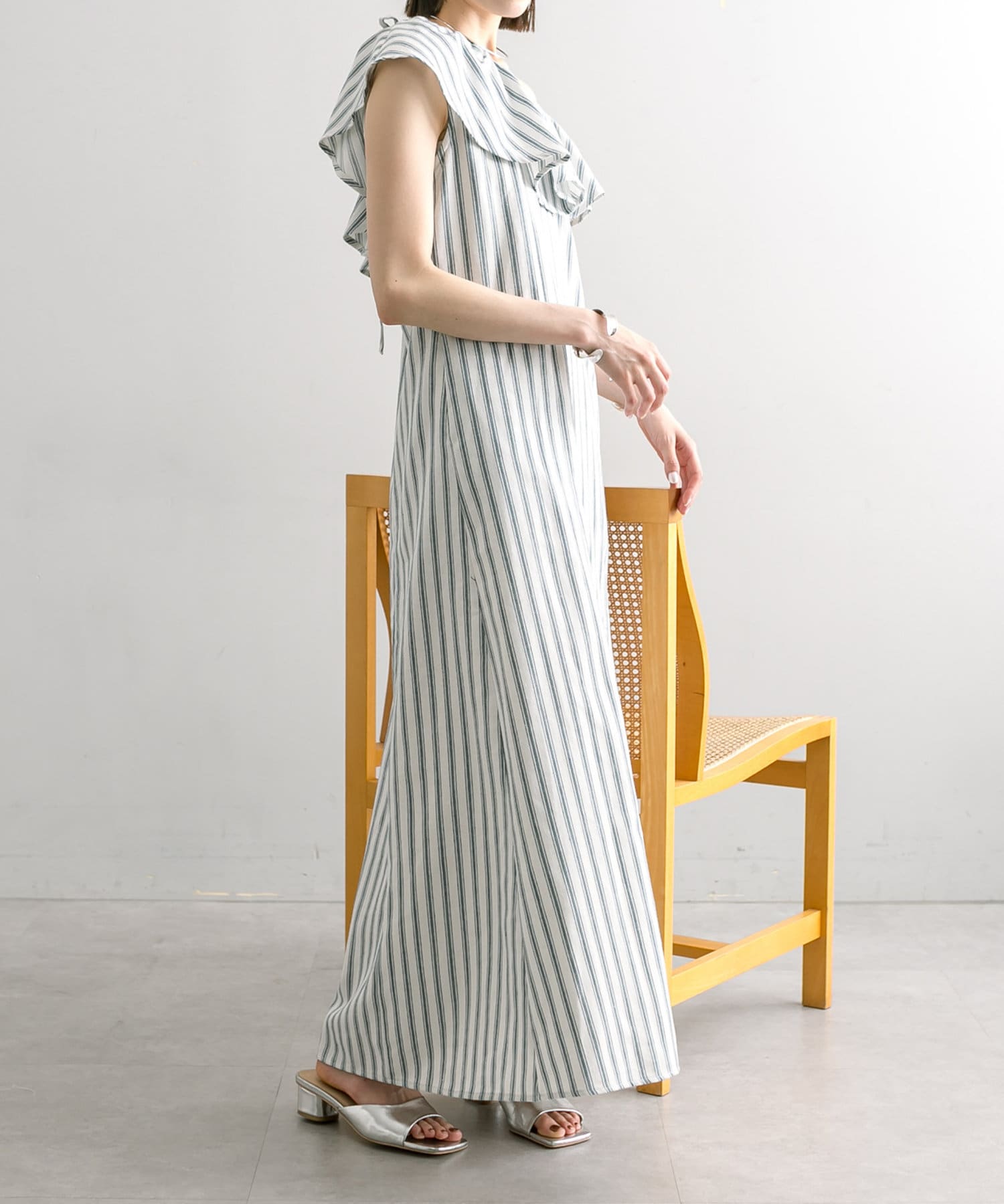 爽やかなストライプデザイン×フリルが華やかに決まる一枚。