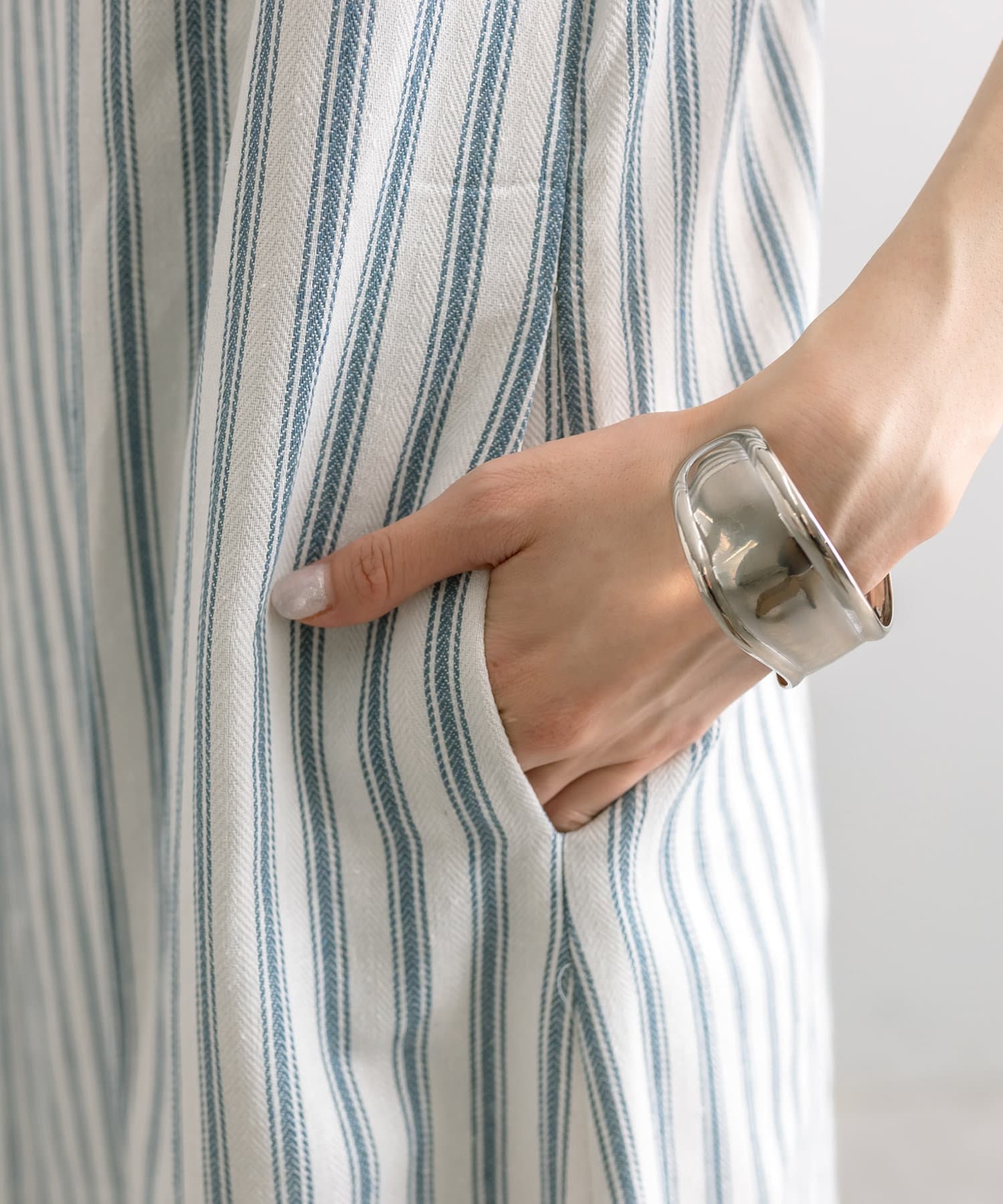 ・足元はカジュアルにも、パンプスやヒールでも雰囲気が変わるので気分によって着ていただけます。