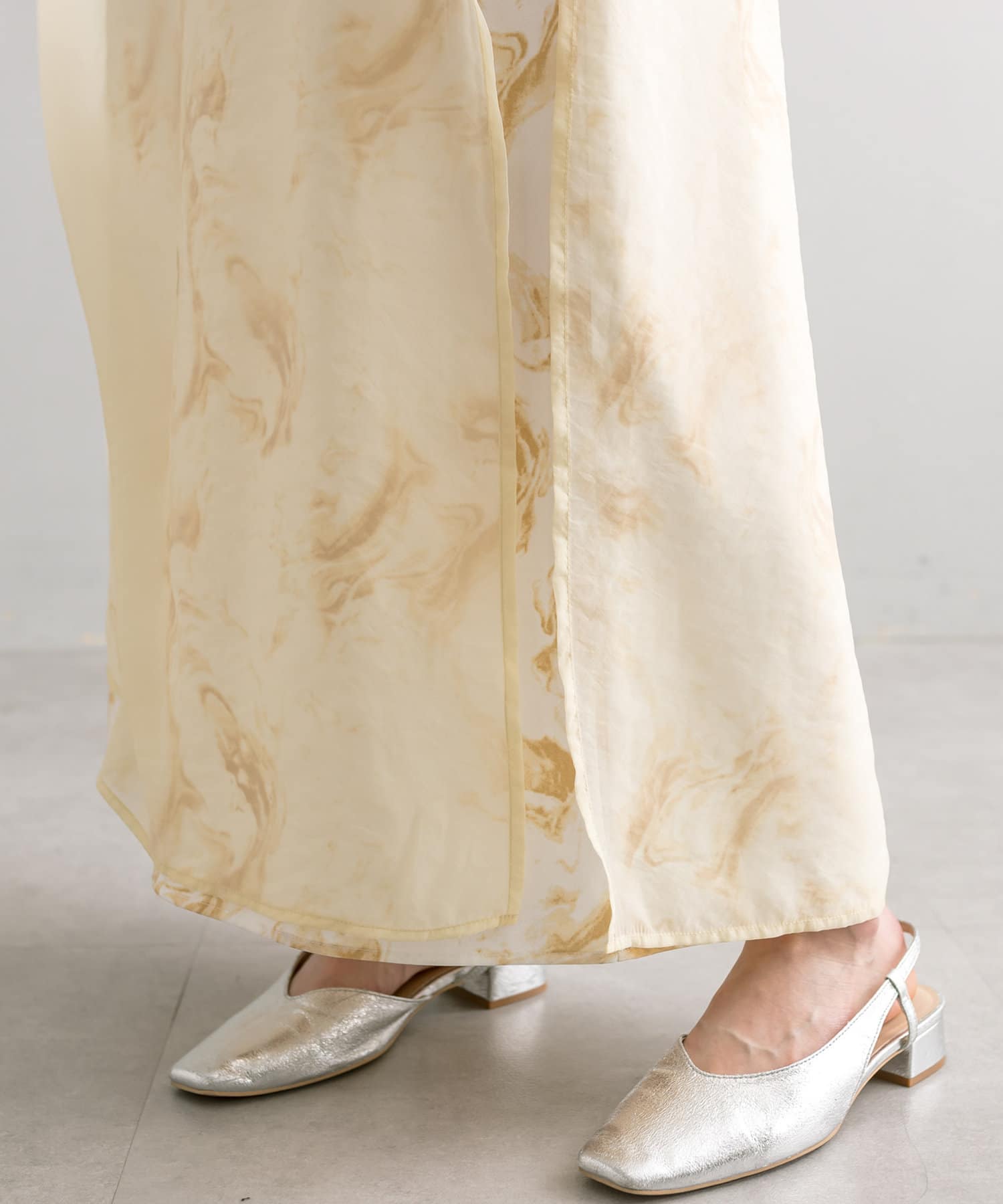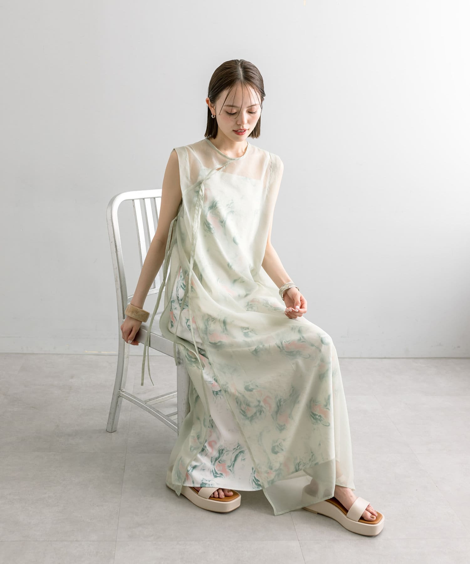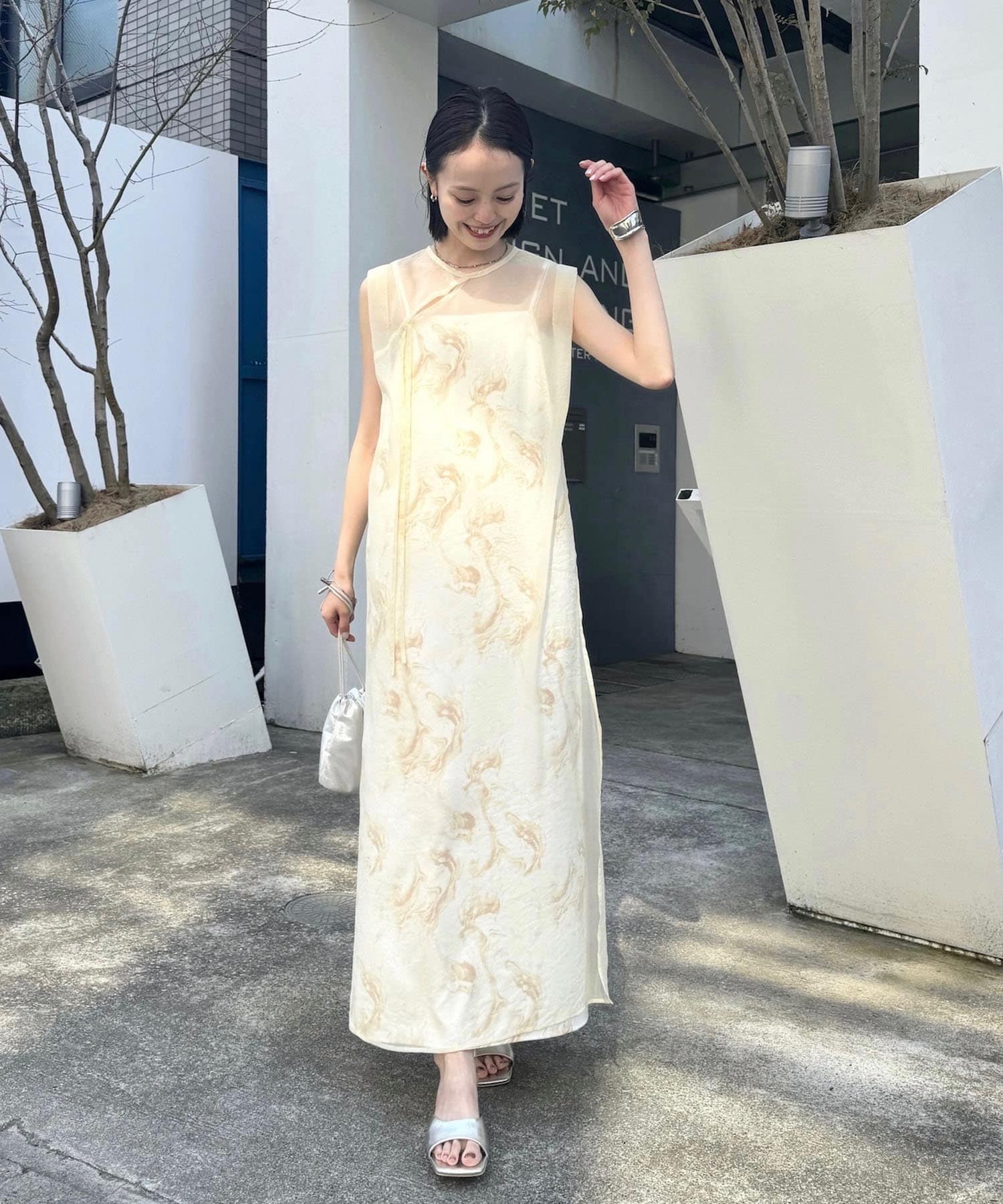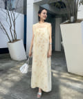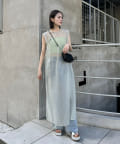 ・シアーワンピはチャイナドレスらしい深めのサイドスリットで程よく抜け感を出してくれます。