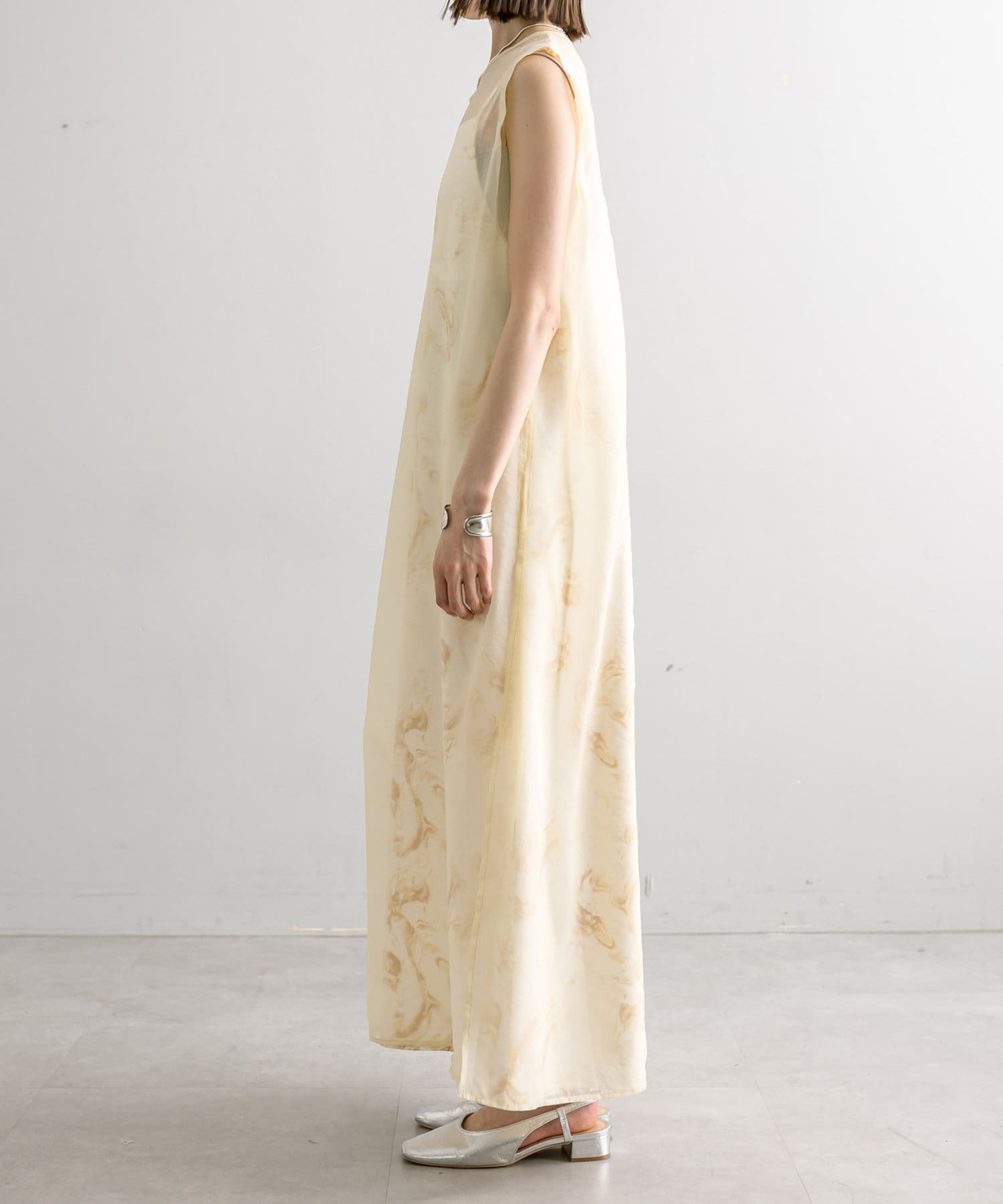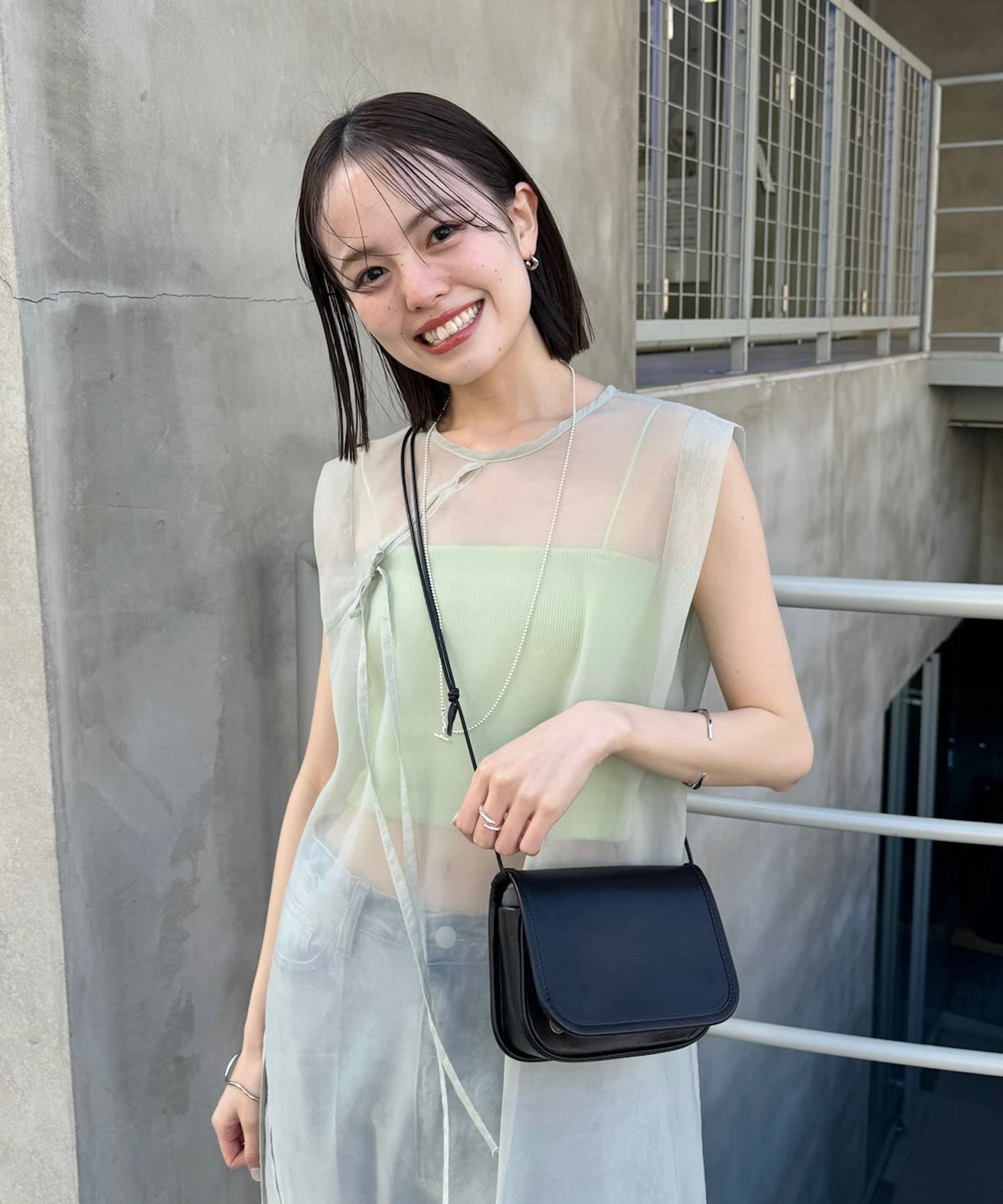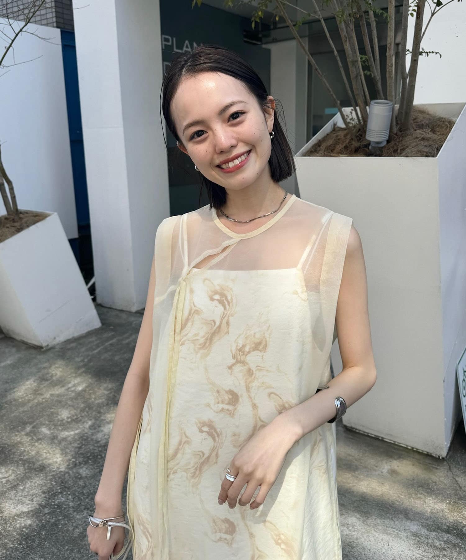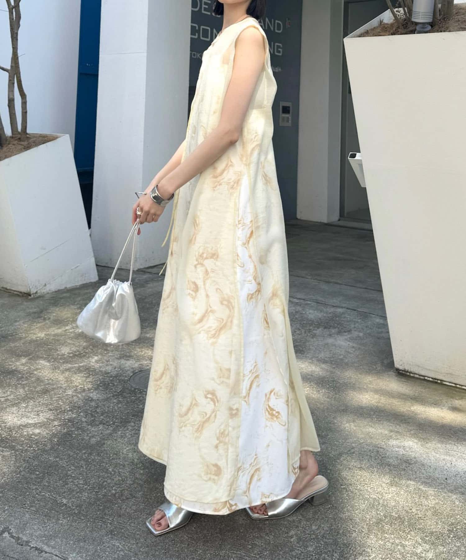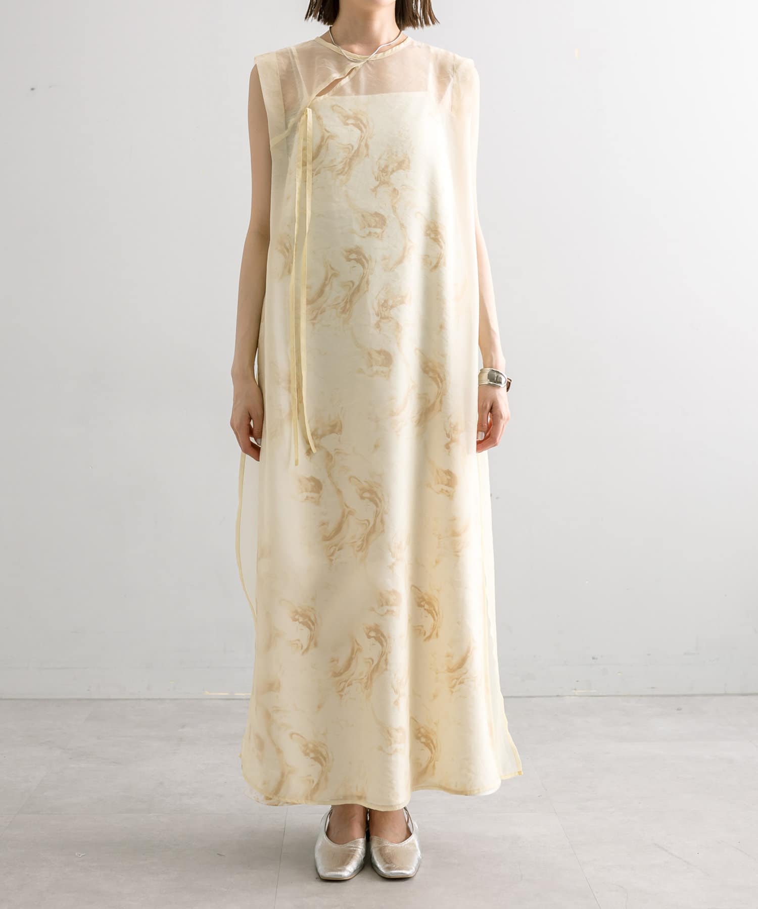 ・シアーワンピースはデニムやパンツスタイルに重ねて着ていただくのもおすすめ。