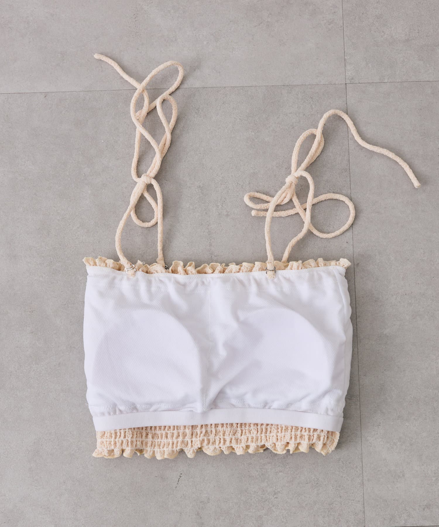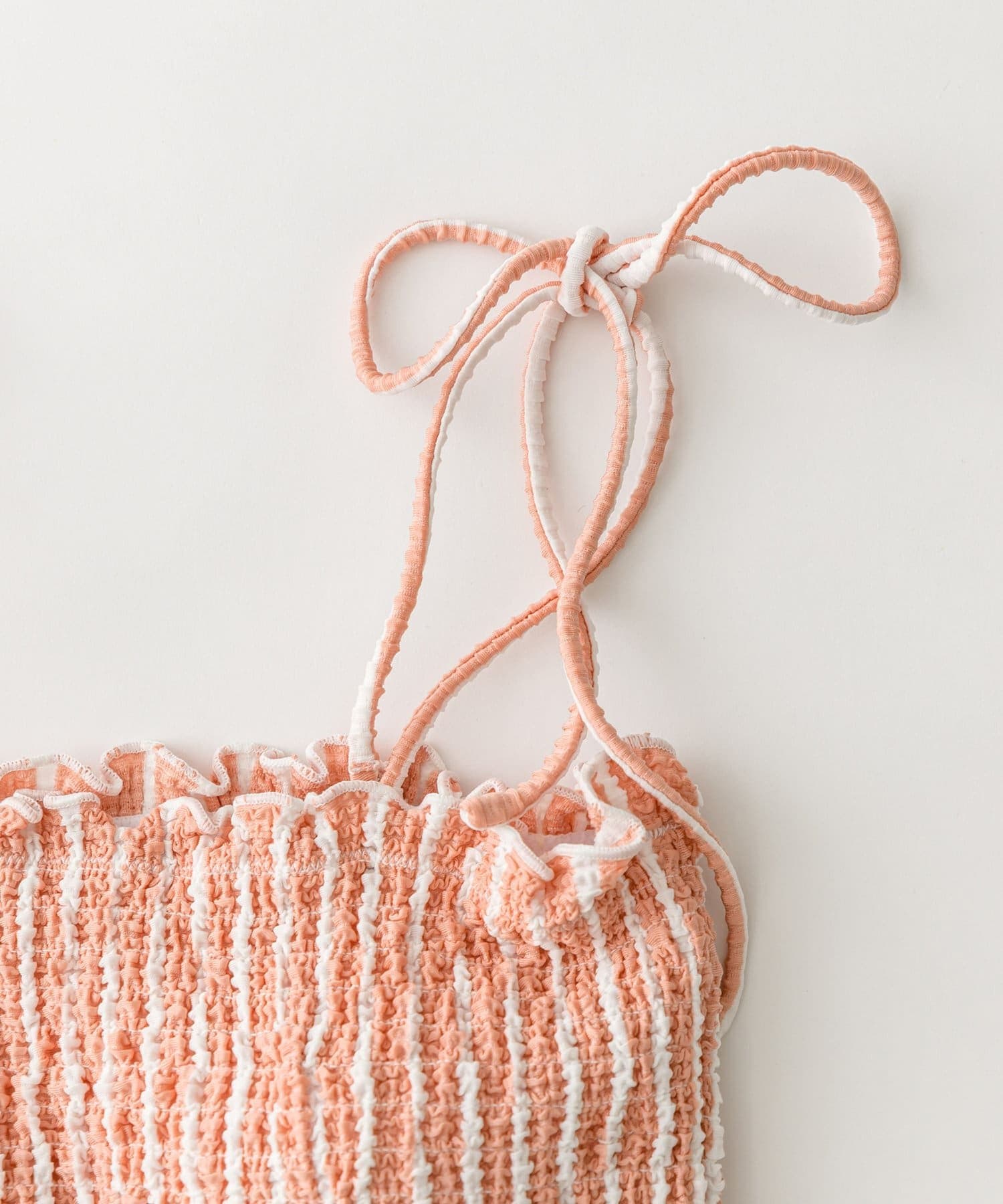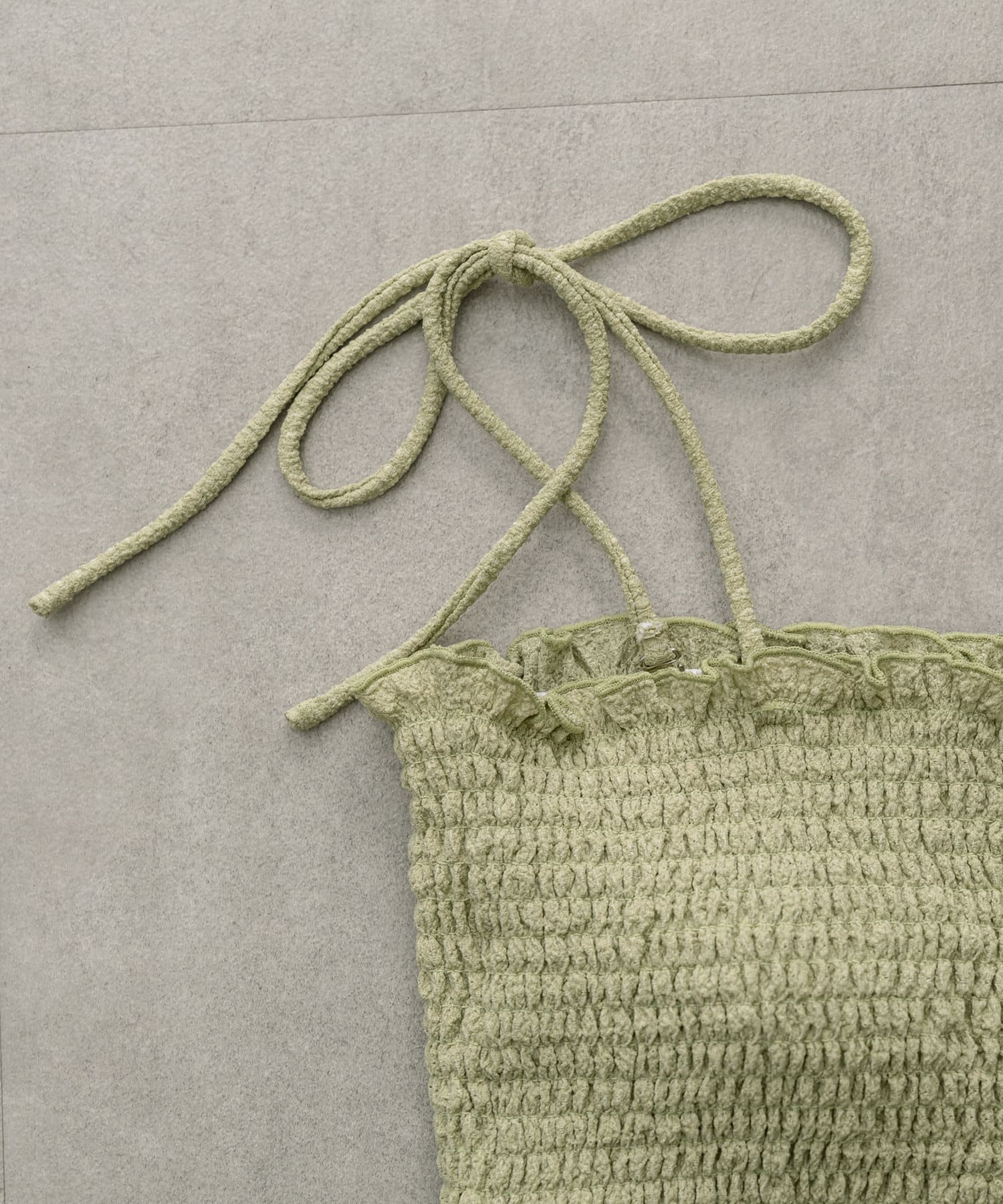 ・肩ひもの結び目が女性らしいワンポイントに◎