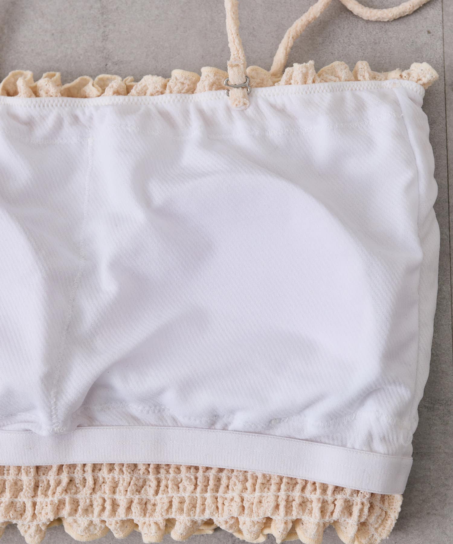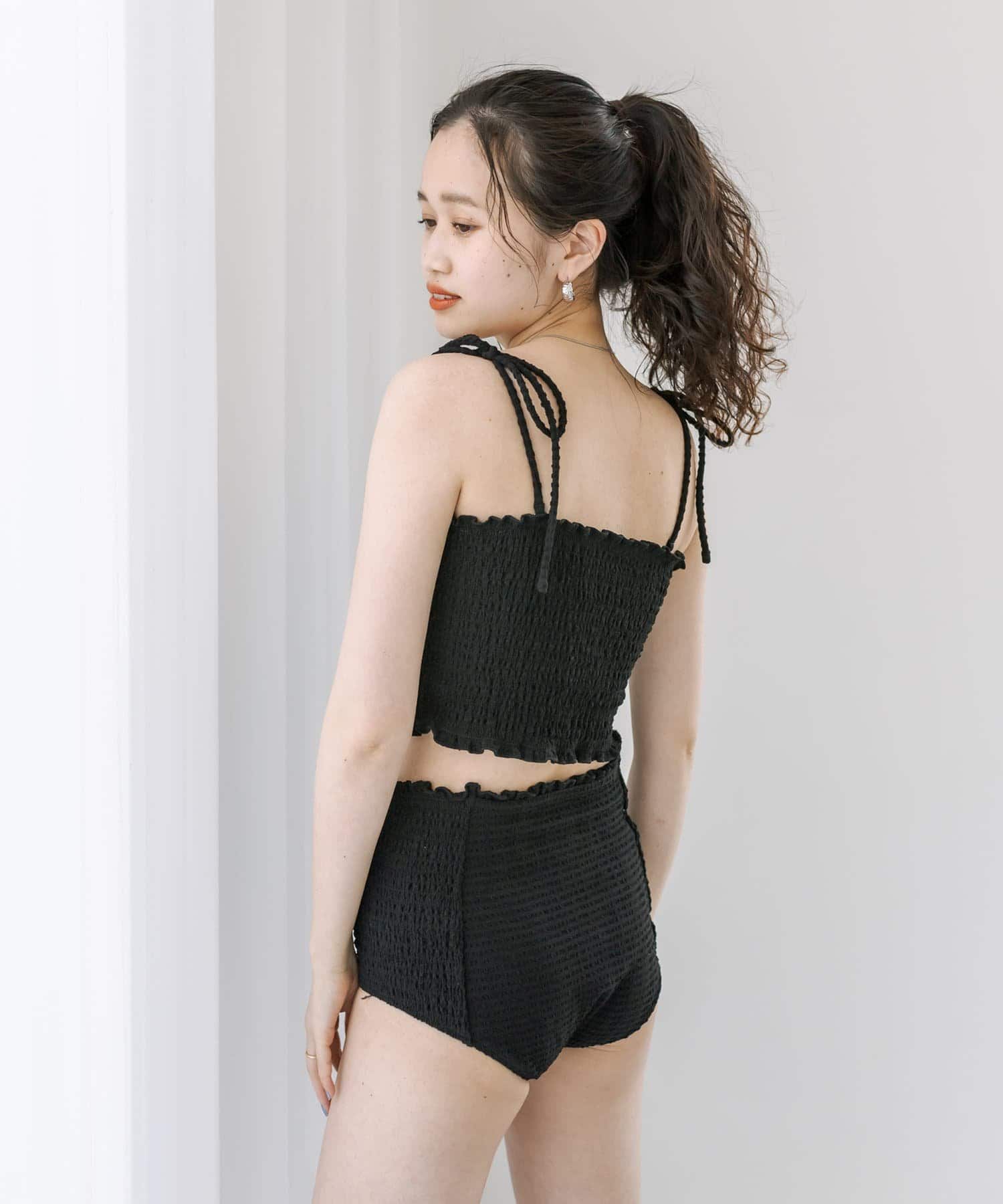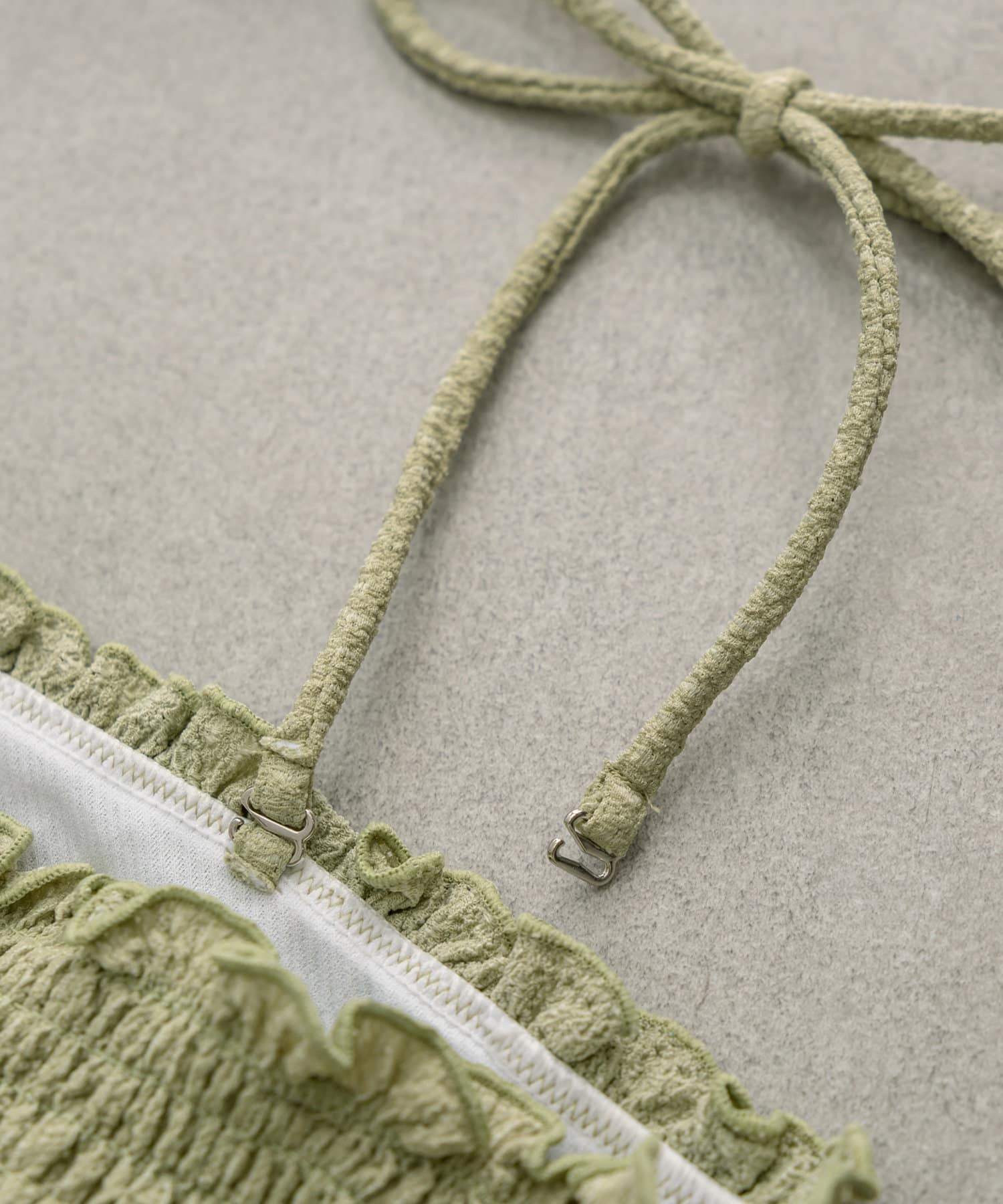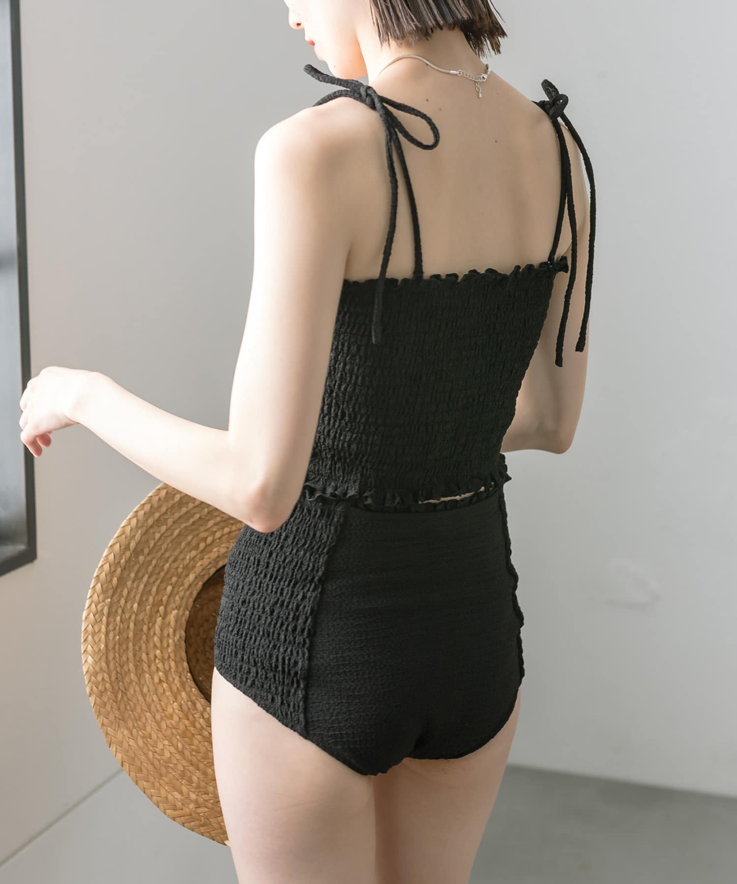 ・肩ひもの結び目が女性らしいワンポイントに◎